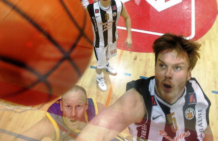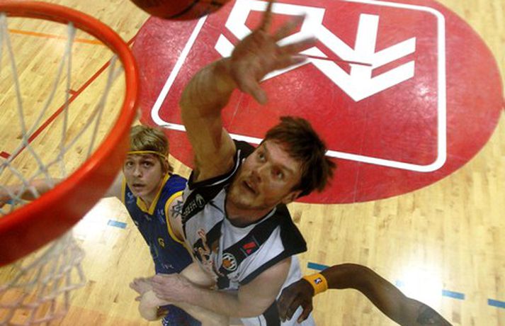 Daníel Rúnarsson, ljósmyndari hjá Fréttablaðinu fór nýjar leiðir við að mynda fyrsta leik KR og Grindavíkur í lokaúrslitum Iceland Express deildar karla í körfubolta sem fram fór í DHL-Höllinni á laugardaginn. Daníel fékk leyfi hjá KR-ingum til þess að hengja upp myndavél aftan á annað spjaldið og hann stjórnaði vélinni síðan með sérstakri fjarstýringu auk þess að taka sjálfur myndir á venjulegan hátt. Þessi tímamótamyndataka í íslenskum körfubolta heppnaðist mjög vel en fram að þessu hafa körfuboltaáhugamenn aðeins séð slíka myndatökur í tengslum við NBA-deildina. Hér fyrir neðan má sjá nokkrar af myndunum sem vélin hans Daníel skilaði frá þessum óvenjulega stað. Mynd/DaníelMynd/DaníelMynd/DaníelMynd/DaníelMynd/DaníelMynd/DaníelMynd/DaníelMynd/Daníel