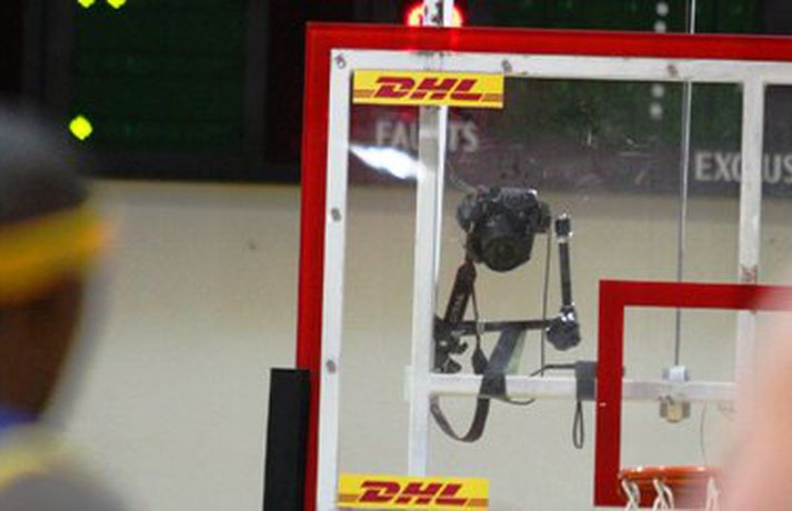 Leikur KR og Grindavíkur myndaður frá óvenjulegum stað Óskar Ófeigur Jónsson skrifar 5. apríl 2009 21:04 Hér má sjá hvar myndavélin var staðsett Mynd/Daníel Daníel Rúnarsson, ljósmyndari hjá Fréttablaðinu fór nýjar leiðir við að mynda fyrsta leik KR og Grindavíkur í lokaúrslitum Iceland Express deildar karla í körfubolta sem fram fór í DHL-Höllinni á laugardaginn. Daníel fékk leyfi hjá KR-ingum til þess að hengja upp myndavél aftan á annað spjaldið og hann stjórnaði vélinni síðan með sérstakri fjarstýringu auk þess að taka sjálfur myndir á venjulegan hátt. Þessi tímamótamyndataka í íslenskum körfubolta heppnaðist mjög vel en fram að þessu hafa körfuboltaáhugamenn aðeins séð slíka myndatökur í tengslum við NBA-deildina. Hér fyrir neðan má sjá nokkrar af myndunum sem vélin hans Daníel skilaði frá þessum óvenjulega stað. Mynd/DaníelMynd/DaníelMynd/DaníelMynd/DaníelMynd/DaníelMynd/DaníelMynd/DaníelMynd/Daníel Dominos-deild karla Mest lesið Vonast til að komast í Kórinn: „Menn hafa aldrei séð annað eins“ Fótbolti Fær þrjár milljónir á dag næstu sex árin fyrir að gera ekkert Sport Landsleiknum aflýst og framhaldið óljóst Fótbolti Stöðufundur í Laugardal klukkan 10:30 Fótbolti Enska úrvalsdeildin í jólaköttinn Enski boltinn Elsta konan til klára Járnkarlinn Sport Markvörður Inter banaði háöldruðum manni í hjólastól Sport Nýi íþróttastjóri Kjartans stal mörgæs og endaði í fangelsi í Singapúr Fótbolti Segir að Slot verði að taka tvo leikmenn út úr Liverpool-liðinu Enski boltinn Brendan Rodgers sagði starfinu sínu lausu eftir ásakanir Fótbolti Fleiri fréttir Öllum leikjum Bónus-deildar kvenna í kvöld frestað Stólarnir ekki í vandræðum á Egilsstöðum Enginn Lakers-maður hafði náð þessu í meira en 52 ár Veðmál rædd í Körfuboltakvöldi: „Bara ævintýralega heimskulegt“ Kvöddu húsið og Nablinn klifraði í kveðjuskyni Martin naut sín í fræknum sigri á meisturum Bayern Tryggvi lykilmaður í sigri Bilbao Elvar skoraði tólf í naumu tapi Tilþrifin: Varin skot og ótrúlegar körfur Valsmanna Þriðja tapið í röð hjá Jóni og félögum Fáránlegt eða klókt hjá Kristófer? „Ef það má þá gerir fólk það“ Brassi tekur við af Billups „Það er æðislegt að kveðja húsið svona“ Uppgjörið: ÍA - Álftanes 76-74 | ÍA kvaddi Vesturgötuna með stæl Uppgjörið: Stjarnan - ÍR 91-93 | ÍR skellti meisturunum „Ekki æskilegt og ekki það sem körfuboltinn vill standa fyrir“ Nær fimmtán árum og ætlar með Ísland á HM Stjórnarmaður KKÍ auglýsir ólöglega veðmálastarfsemi Handtökur í NBA: Lak upplýsingum um meiðsli James og bað um bita af kökunni Mál Kristófers enn til skoðunar og fleiri komin á borð KKÍ Uppgjörið: Ármann-Keflavík 94-107 | Öruggt hjá Keflvíkingum Daníel: Ég fór í smá ævintýra starfsemi Uppgjörið: Þór Þ. - Valur 117-119 | Vals sigur eftir tvær framlengingar Uppgjörið: Njarðvík-Tindastóll 98-90 | Njarðvíkingar skelltu Stólunum Átti sumar engu öðru líkt „Ég held að bæði lið séu ekkert himinlifandi með sína frammistöðu“ Uppgjörið: Grindavík-KR 78-77 | Arnór Tristan með sigurkörfuna Þjálfari og leikmaður í NBA handteknir Sá eftirsóttasti treystir bara á pabba gamla Þrenna Maddie Sutton dugði ekki á Hlíðarenda Sjá meira