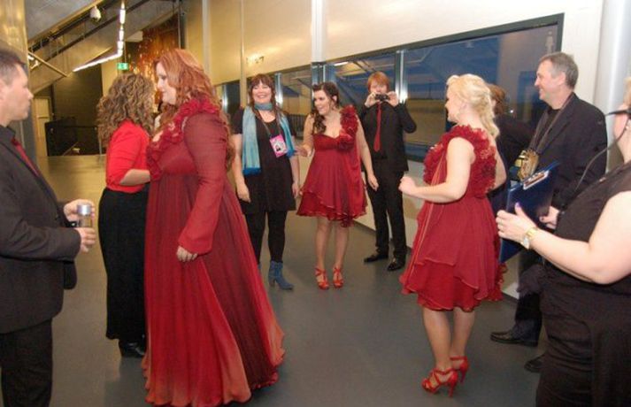 Eurovison: Kjóllinn geymdur á öruggum stað Við kíktum í morgun á hótelið þar sem íslenski hópurinn dvelur. Þar hittum við Emilíönu Tómasdóttur hárgreiðslukonu, Kristjönu Stefánsdóttur söngkonu, Elínu Reynisdóttur förðunarfræðing og Birnu Gyðu Björnsdóttur danshöfund. 25. maí 2010 12:30