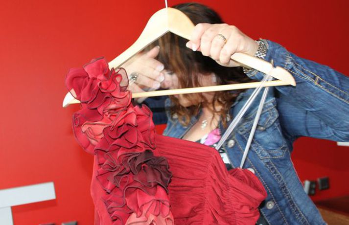 Við fengum Þórdísi Lóu Þórhallsdóttur systur Heru Bjarkar til að sýna okkur einn af kjólunum sem söngkonurnar klæðast á sviðinu í Telenor höllinni í Osló annaðkvöld. „Allir kjólarnir á sviðinu eru eftir Birtu. Þær hreyfast svo svakalega fallega í þessu kröftuga dansatriði," segir Þórdís Lóa en hún er framkvæmdastjóri íslenska Eurovisionhópsins. Sjá viðtal í myndskeiði og myndir af Þórdísi handfjatla kjólana.