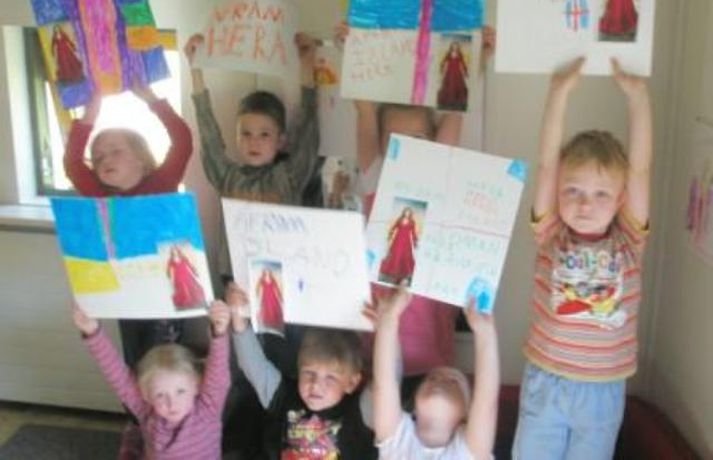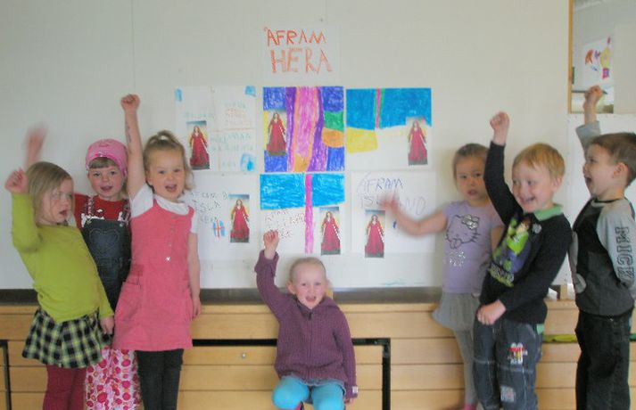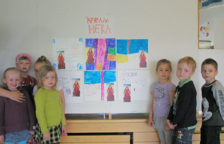 Á meðan Hera Björk stendur í ströngu við að kynna fyrir fjölmiðlafólkinu í Osló land og þjóð barst henni hlý kveðja frá leikskólanum Foldakoti í Grafarvogi á tölvutæku formi í dag. „Við vildum sko óska þess að við værum hjá ykkur út í Ósló. Við myndum öskra „ÁFRAM HERA BJÖRK" svo allir í Evrópu myndu heyra það," segir meðal annars í kveðjunni. Allur íslenski Eurovision-hópurinn varð hræður við að sjá myndirnar sem börnin sendu en þær má skoða í myndasafni.
