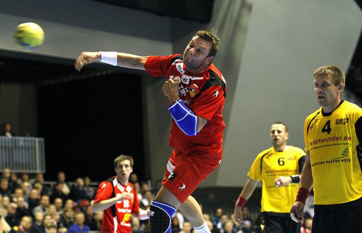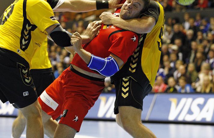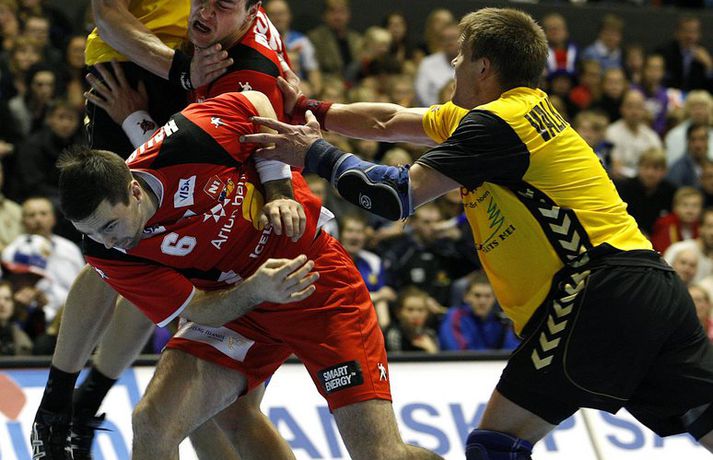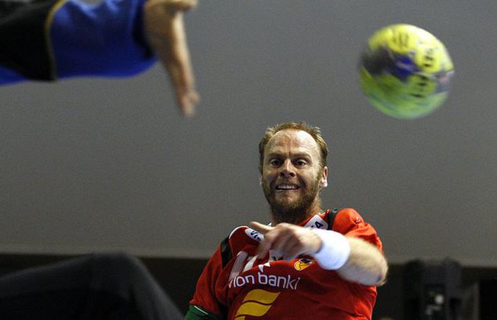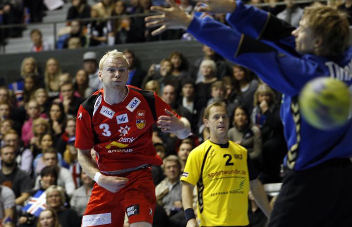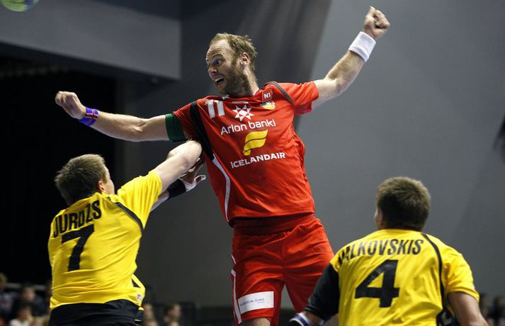 Ólafur Stefánsson, lék sinn 300. landsleik í Laugardalshöllinni í gær þegar Ísland vann 28-26 sigur á Lettum í fyrsta leik sínum í undankeppni EM. Ólafur tók af skarið undir lok leiksins og átti þátt í öllum mörkum íslenska liðsins á síðustu sex mínútum leiksins.