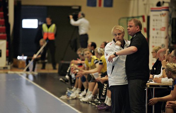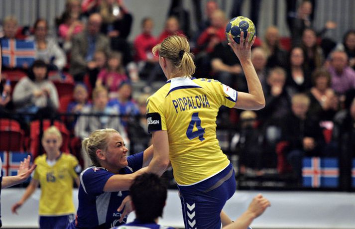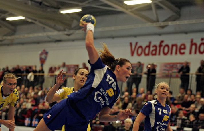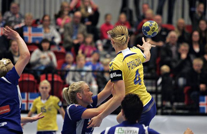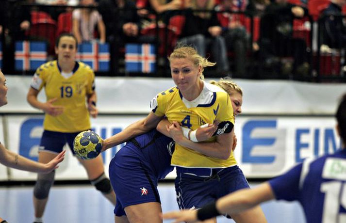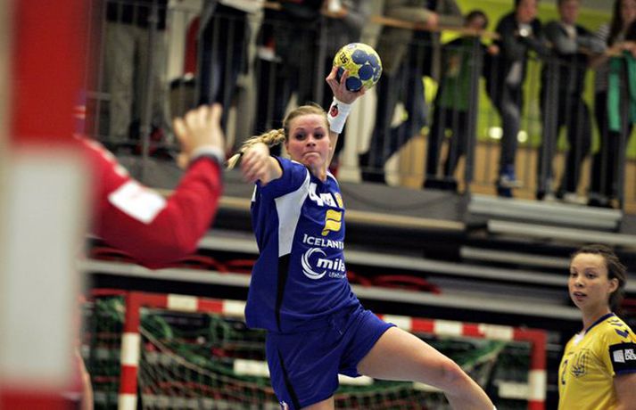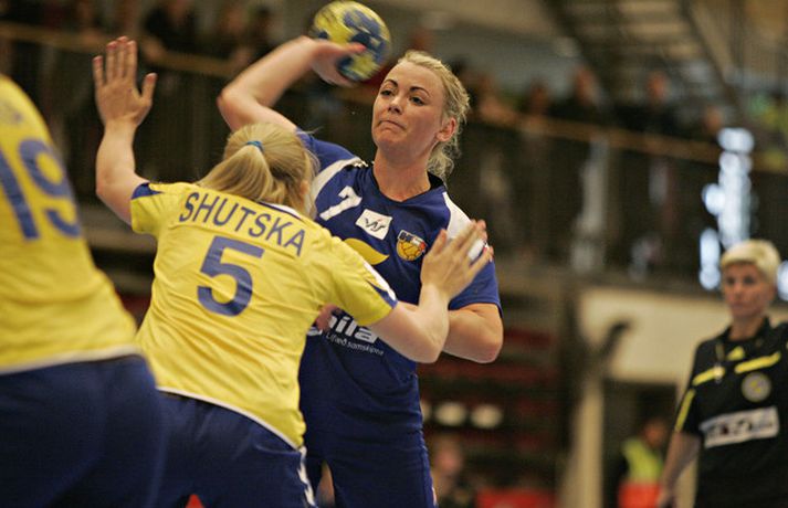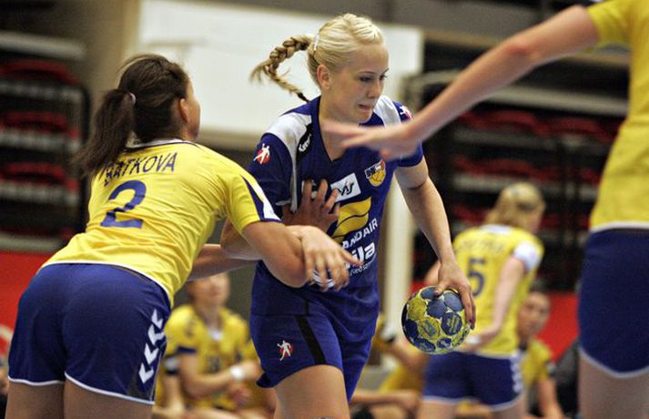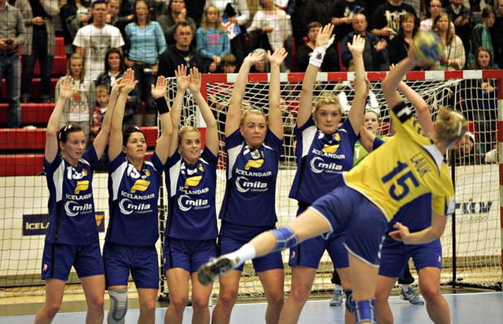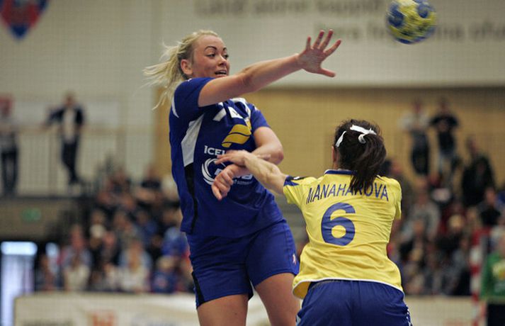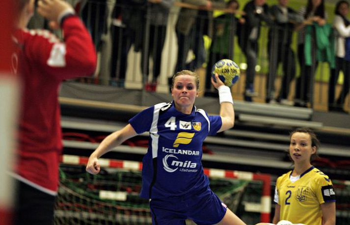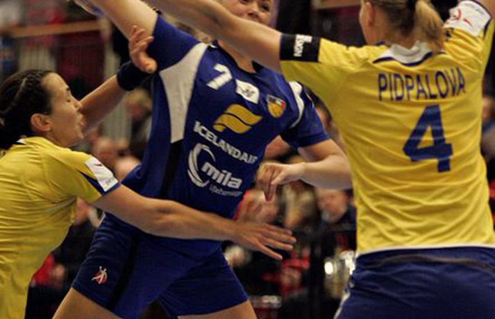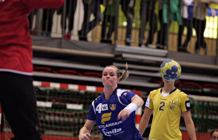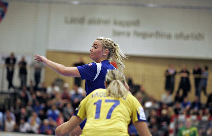 Ísland vann í gær frábæran nítján marka sigur á Úkraínu í forkeppni HM 2011 í Brasilíu. Liðin mætast aftur um næstu helgi en aðeins stórslys getur komið í veg fyrir að Ísland sé nú á leið á sitt annað stórmót í handbolta í röð. Leikmenn íslenska liðsins fóru á kostum í gær og sagði Hrafnhildur Ósk Skúladóttir þetta líklega besta leik þess frá upphafi. Daníel Rúnarsson, ljósmyndari Vísis og Fréttablaðsins, var á staðnum og tók þessar myndir.Mynd/Daníel