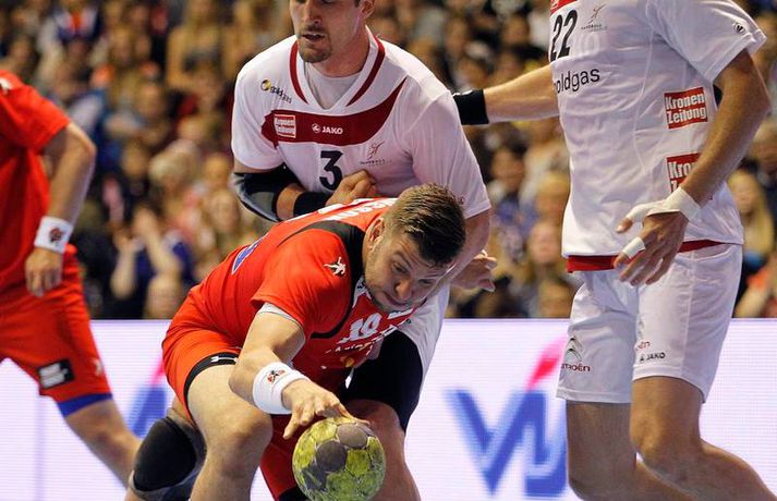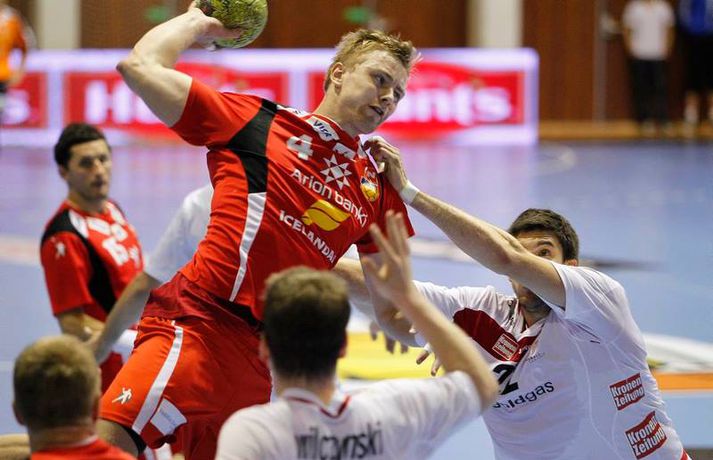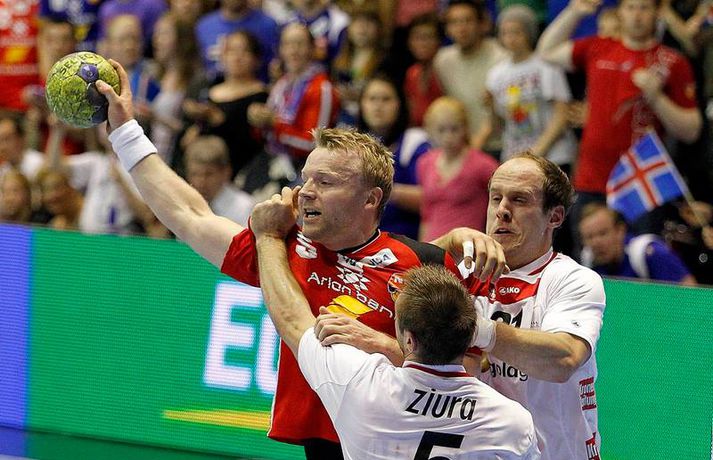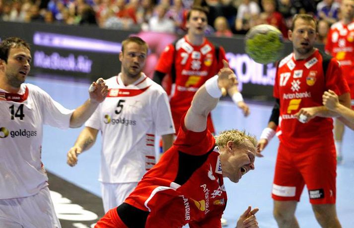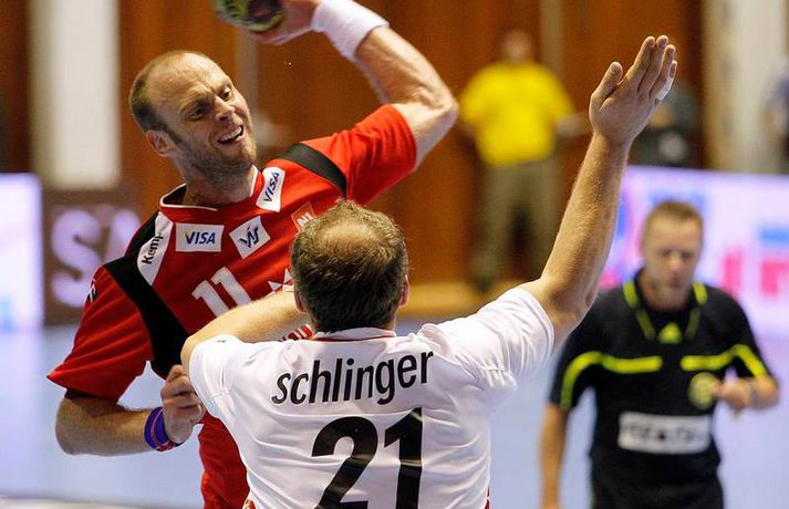 Íslenska handboltalandsliðið tryggði sér sæti á Evrópumótinu í handbolta í Serbíu á næsta ári með því rassskella Austurríkismenn í Laugardalshöllinni í gær. Strákarnir okkar unnu fimmtán marka sigur og tryggðu sér annað sætið í riðlinum en auk okkar stráka þá fóru Þjóðverjar einnig í úrslitakeppnina upp úr riðli Íslands. Ísland þurfti að vinna leikinn til þess að komast til Serbíu en Austurríkismönnum dugði jafntefli. Það var þó fljótlega ljóst að Strákarnir okkar voru í miklu stuði og átti gestirnir úr Ölpunum enga möguleika gegn frábæru íslensku liði sem spilaði flotta vörn, frábæra sókn og fékk háklassa markvörslu frá báðum markvörðum sínum. Pjetur Sigurðsson, ljósmyndari Fréttablaðsins og Vísis, var á leiknum í Laugardalshöllinni í gær og náði skemmtilegu myndum sem má sjá hér. Hægt er að sjá myndirnar stærri með því að smella á þær.
