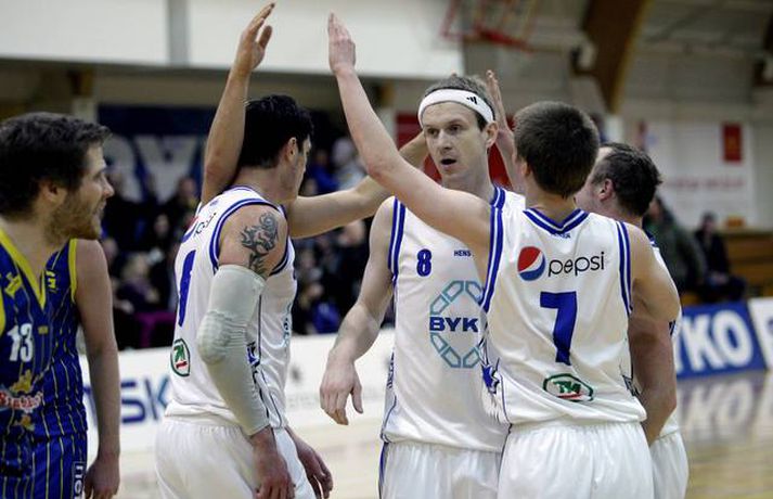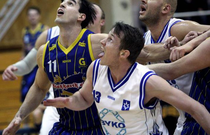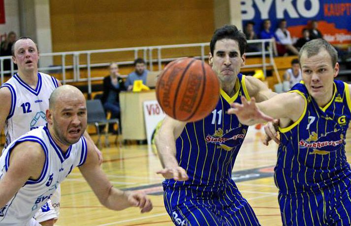 Stjarnan vann í gær sigur á Grindavík í Iceland Express-deild karla í gær en þetta var fjórða tap Grindvíkinga í röð í deildinni. Grindavík er enn í fjórða sæti deildarinnar en Stjarnan er nú aðeins fjórum stigum á eftir þeim í því fimmta. Haldist sú staða óbreytt til loka deildarkeppninnar munu þessi lið mætast í fyrstu umferð úrslitakeppninnar en fjórar umferðir eru eftir af deildinni. Grindavík mætir KR í úrslitum Powerade-bikarkeppni karla um helgina og þurfa að finna aftur sitt gamla form fyrir þann leik ætli liðið sér að klófesta bikarinn. Vilhelm Gunnarsson var í Garðabænum í gær og tók þessar myndir. Mynd/Vilhelm