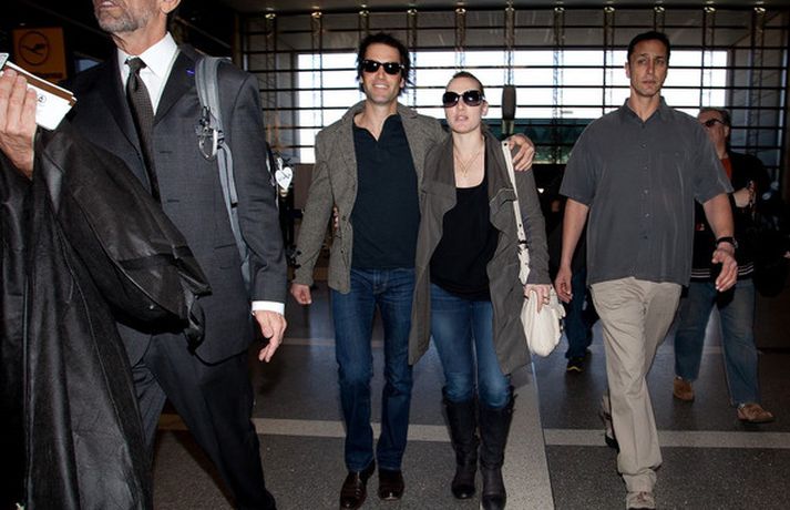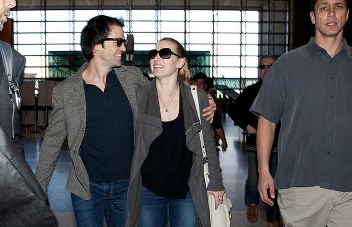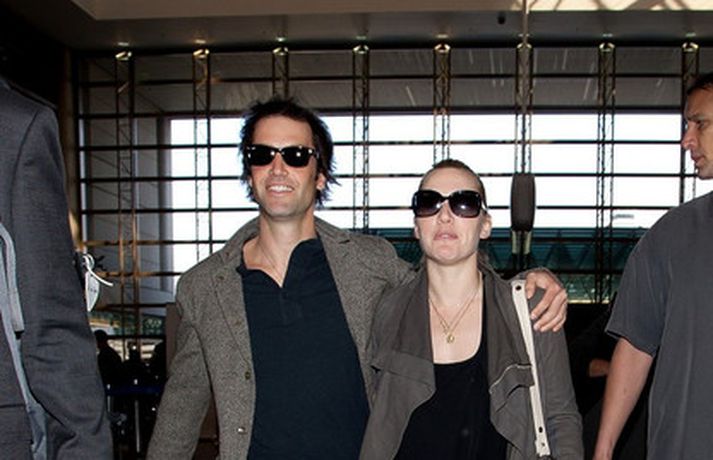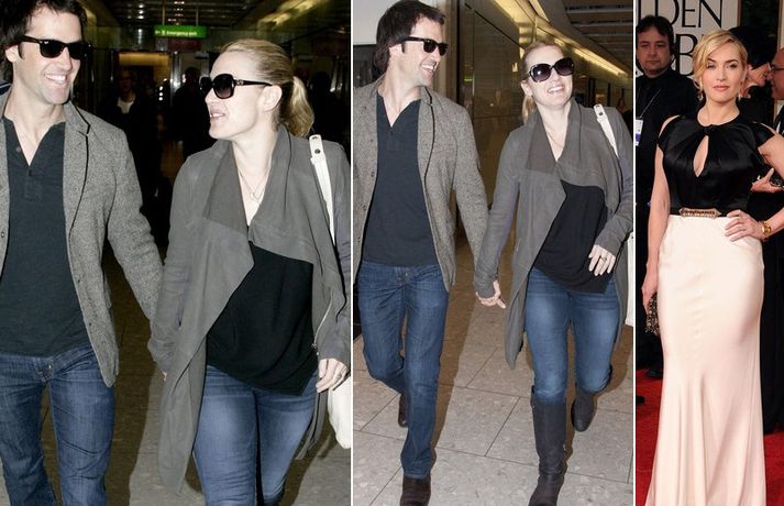 Ekki nóg með að breska leikkonan Kate Winslet, 36 ára, hafi fengið Golden Globe styttu fyrir leik sinn í sjónvarpsseríunni Mildred Pierce um helgina heldur er ástfangin upp fyrir haus. Í meðfylgjandi myndasafni má sjá skælbrosandi Kate og unnusta hennar, Ned Rocknroll, leiðast á LAX flugvellinum. Þá má líka sjá Kate á Golden Globe verðlaunahátíðinni í Jenny Packham kjól.myndir/cover media