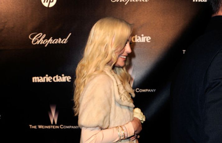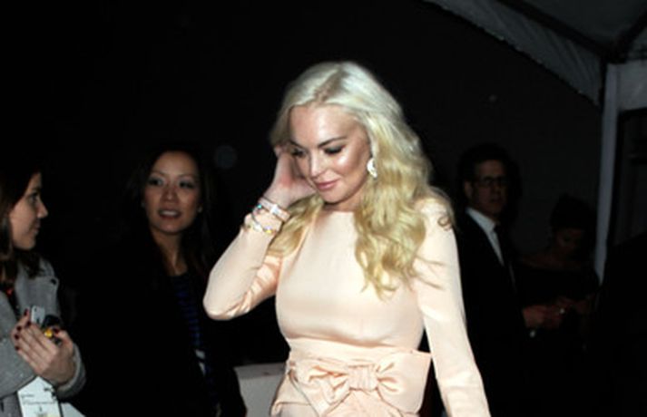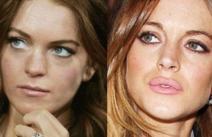 Leikkonan Lindsay Lohan, 25 ára, stillti sér upp á rauða dreglinum eftir Golden Globe verðlaunaafhendinguna sem fram fór um helgina klædd í Prada síðkjól. Aflitað hárið, silikonbrjóstin, þrútið andlitið og risastór efri vör leikkonunnar skyggðu á kjólinn sem var glæsilegur í alla staði. Ef eldri myndir af henni eru bornar saman við nýjar má greinilega sjá breytinguna sem orðið hefur á andliti leikkonunnar. Upprunalega krúttlega Lindsay með rauða hárið og fallegu freknurnar er hægt og sígandi að hverfa.