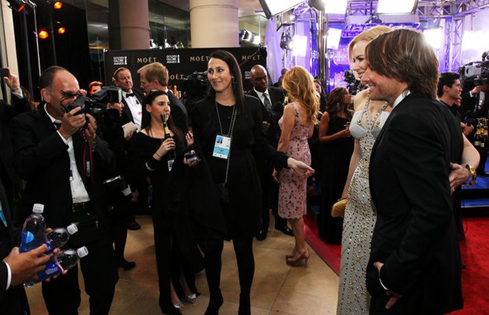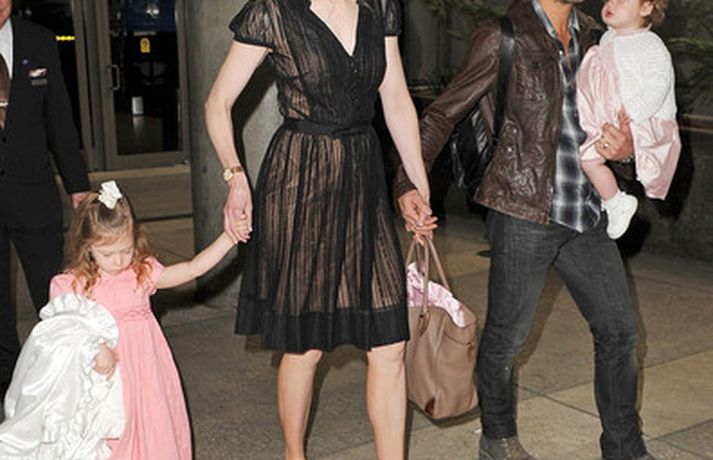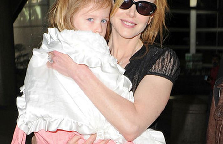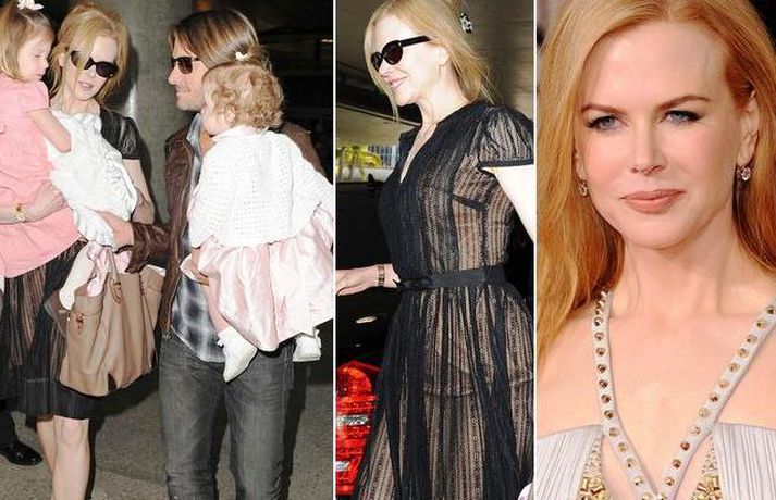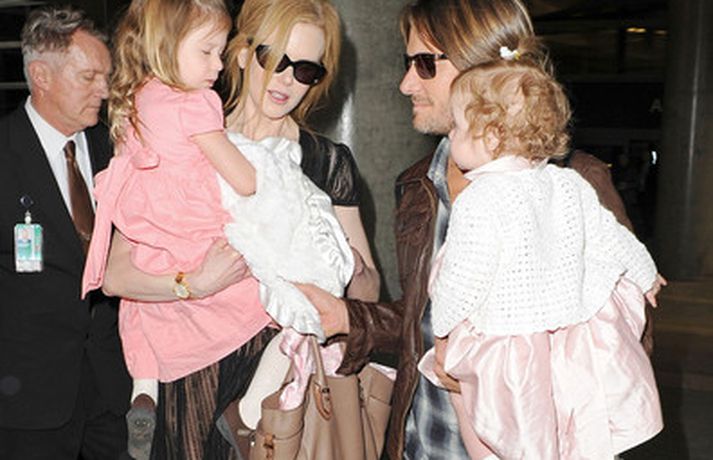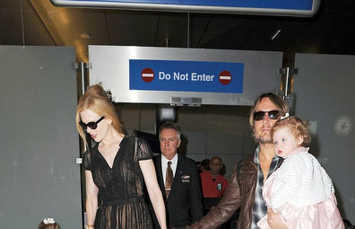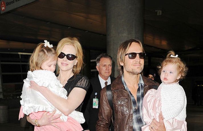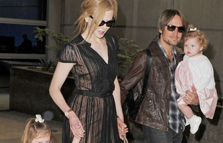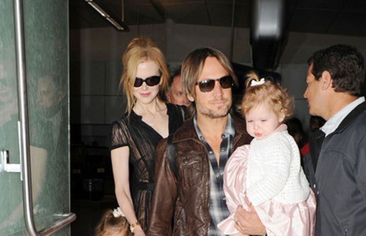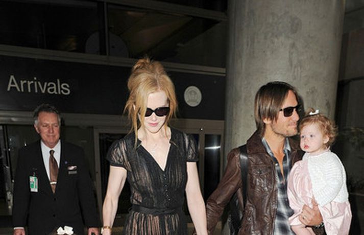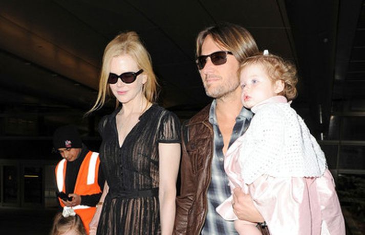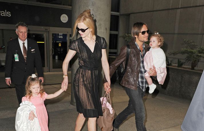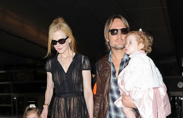 Leikkonan Nicole Kidman, 44 ára, og eiginmaður hennar, tónlistarmaðurinn Keith Urban, leiddu þriggja ára dóttur þeirra Sunday á flugvellinum í Sydney í Ástralíu. Þá héldu þau á yngri dóttur þeirra, Faith, sem er fjórtán mánaða. Einnig má sjá hjónin á rauða dreglinum á Golden Globe hátíðinni á dögunum.