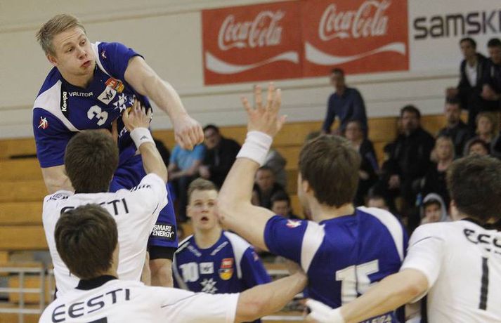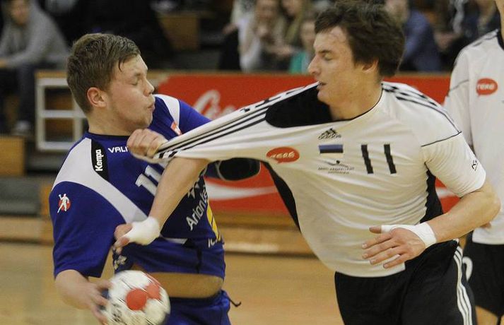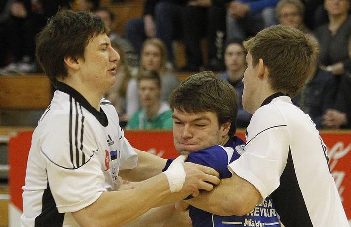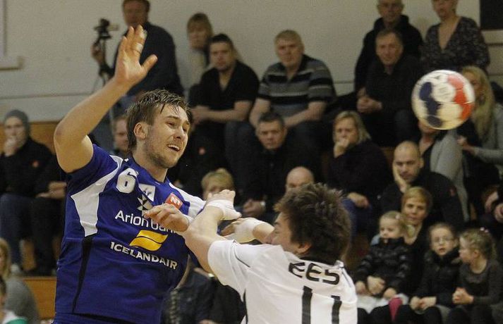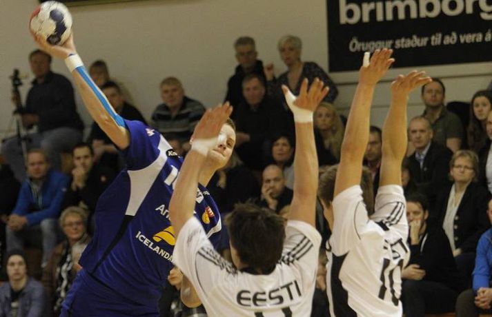 Íslenska 20 ára landsliðið í handbolta tryggði sér sæti í úrslitakeppni EM í Tyrklandi í sumar með því að vinna fjögurra marka sigur á Eistlandi í Víkinni í dag. Íslenska liðið vann því báða leiki sína í riðlinum og er komið á EM. Sigur íslensku strákaanna var öruggur en þeir voru sex mörkum yfir í hálfleik, 17-11. Íslenska liðið hafði frumkvæðið allan leikinn en Eistland náði að minnka muninn í 1 mark þegar um 13 mínútur voru eftir en nær komust Eistarnir ekki. Akureyringurinn Guðmundur Hólmar Helgason var markahæstur með 7 mörk og Valsmaðurinn Sveinn Aron Sveinsson skoraði 5 mörk. Pjetur Sigurðsson, ljósmyndari Fréttablaðsins og Vísis, var á leiknum í Víkinni í dag og náði þessum skemmtilegu myndum. Myndirnar má sjá í albúminu hér að neðan. Hægt er að sjá myndirnar stærri með því að smella á þær.Ísland- Eistland 28-24 (17-11)Mörk Íslands: Guðmundur Hólmar Helgason 7, Sveinn Aron Sveinsson 5, Geir Guðmundsson 4, Janus Smárason 4, Garðar Sigurjónsson 4, Ísak Rafnsson 2, Víglundur Þórsson 1, Árni Benedikt Árnason 1.Mynd/Pjetur