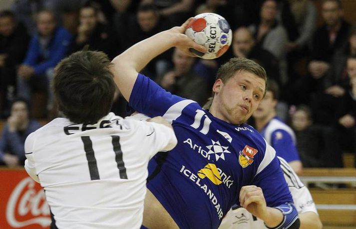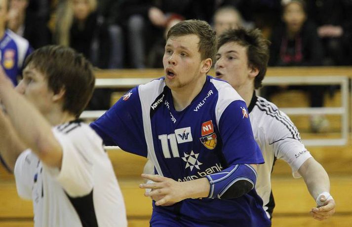 Strákarnir tryggðu sig inn á EM í Tyrklandi - myndir Óskar Ófeigur Jónsson skrifar 8. apríl 2012 18:23 Íslenska 20 ára landsliðið í handbolta tryggði sér sæti í úrslitakeppni EM í Tyrklandi í sumar með því að vinna fjögurra marka sigur á Eistlandi í Víkinni í dag. Íslenska liðið vann því báða leiki sína í riðlinum og er komið á EM. Sigur íslensku strákaanna var öruggur en þeir voru sex mörkum yfir í hálfleik, 17-11. Íslenska liðið hafði frumkvæðið allan leikinn en Eistland náði að minnka muninn í 1 mark þegar um 13 mínútur voru eftir en nær komust Eistarnir ekki. Akureyringurinn Guðmundur Hólmar Helgason var markahæstur með 7 mörk og Valsmaðurinn Sveinn Aron Sveinsson skoraði 5 mörk. Pjetur Sigurðsson, ljósmyndari Fréttablaðsins og Vísis, var á leiknum í Víkinni í dag og náði þessum skemmtilegu myndum. Myndirnar má sjá í albúminu hér að neðan. Hægt er að sjá myndirnar stærri með því að smella á þær.Ísland- Eistland 28-24 (17-11)Mörk Íslands: Guðmundur Hólmar Helgason 7, Sveinn Aron Sveinsson 5, Geir Guðmundsson 4, Janus Smárason 4, Garðar Sigurjónsson 4, Ísak Rafnsson 2, Víglundur Þórsson 1, Árni Benedikt Árnason 1.Mynd/Pjetur Íslenski handboltinn Handbolti Mest lesið Óskar Hrafn fer ekki fet Íslenski boltinn Hákon Rafn hélt hreinu þegar Brentford flaug áfram Enski boltinn Spánn og Þýskaland mætast í úrslitum Fótbolti Anguissa hetja meistaranna Fótbolti Martin öflugur í góðum sigri Körfubolti Verstappen telur sig ekki geta barist um titilinn Formúla 1 Leikið á Þróttaravelli á miðvikudag Fótbolti Jón Dagur gulltryggði sigurinn með sínu fyrsta marki Fótbolti Vonast til að komast í Kórinn: „Menn hafa aldrei séð annað eins“ Fótbolti Birnir frá Akureyri í Garðabæ Íslenski boltinn Fleiri fréttir Teitur inn í landsliðið Gísli bjó til meira en þriðjung markanna Haukur magnaður í sigri Löwen Blær skoraði þrjú og lagði upp jöfnunarmarkið KA/Þór sótti sigur gegn Fram og stigalausar Stjörnukonur Fram kjöldró HK og spenna í Eyjum Meistararnir unnu gegn ÍBV og ÍR hafði betur gegn Selfyssingum Donni og félagar björguðu stigi undir lokin Afturelding komst upp að hlið Hauka Seldu bleika búninginn hennar Herrem fyrir meira en milljón „Leið vel þegar ég fór inn úr færinu“ Uppgjörið FH - Haukar 27-26 | Birgir Már tryggði FH sigur eftir spennutrylli Bernard fór mikinn en Valsmenn sluppu með sigurinn Fyrsti sigur Þórsara síðan í byrjun september Ómar Ingi með fullkomnan leik í Meistaradeildinni Guðjón Valur og lærisveinar hársbreidd frá því að vinna Kiel Hlakka til að sjá Viktor Gísla aftur og senda honum skilaboð Neyddar í sömu stöðu og Ísland og límdu melónur á skóna Hatar hvítu stuttbuxurnar Fjölga stórmótum landsliða í handboltanum Allt jafnt í bikarslag íslensku stelpnanna Orri fagnaði í Íslendingaslag í Meistaradeildinni Hjartavandamál halda Reyni frá keppni Stórar breytingar á Evrópukeppnum í handbolta Framarar töpuðu aftur á heimavelli í Evrópudeildinni Magdeburg komst örugglega áfram í sextán liða úrslitin Íslensku strákarnir áberandi í Evrópudeildinni „Stærri og sterkari en liðin sem við þekkjum hérna heima“ Viktor til liðs við frænda sinn og bróður Uppgjörið: Portúgal - Ísland 26-25 | Annar eltingaleikur íslenska liðsins endar með öðru tapi Sjá meira
