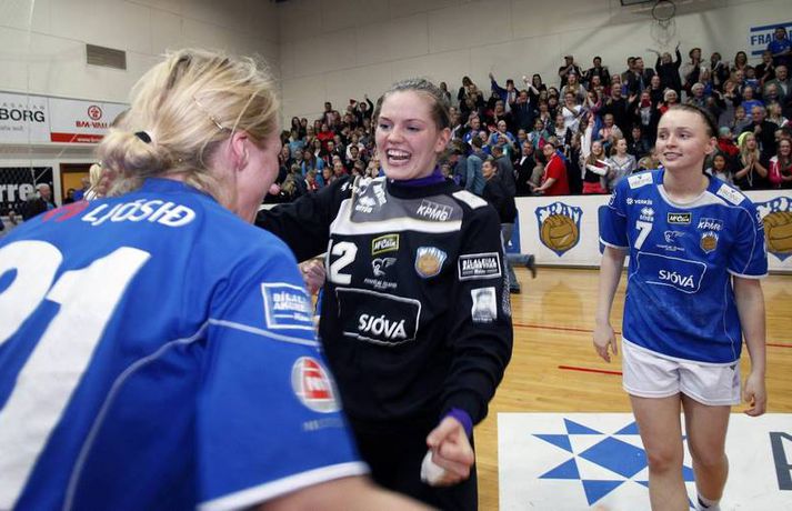 Oddaleikur framundan hjá Fram og Val - myndir Óskar Ófeigur Jónsson skrifar 9. maí 2012 22:15 Guðrún Ósk Maríasdóttir stóð sig vel í marki Fram í kvöld. Mynd/Stefán Valur og Fram munu spila hreinan úrslitaleik um Íslandsmeistaratitilinn í handbolta kvenna í Vodfone-höllinni á laugardaginn en það var ljóst eftir að Fram vann 18-17 sigur í fjórða leik liðanna í Safamýrinni í kvöld. Stelka Sigurðardóttir tryggði Fram sigurinn nokkrum sekúndum fyrir leikslok með sínu níunda marki í leiknum. Fram vann fyrsta leikinn en Valskonur höfðu unnið síðustu tvo leiki og gátu tryggt sér Íslandsmeistaratitilinn þriðja árið í röð með sigri í kvöld. Valsliðið var 16-14 yfir þegar tíu mínútur voru eftir en Framliðið gafst ekki upp og tryggði sér oddaleik með flottum endaspretti. Stefán Karlsson, ljósmyndari Fréttablaðsins og Vísis, var á leik Fram og Vals í Safamýri í kvöld og náði þessum skemmtilegu myndum. Myndirnar má sjá í albúminu hér að neðan. Hægt er að sjá myndirnar stærri með því að smella á þær. Olís-deild kvenna Mest lesið Harma rasíska og transfóbíska grein liðsfélaga Sveindísar Fótbolti Liverpool loks á sigurbraut á ný Enski boltinn Amad bjargaði stigi fyrir United Enski boltinn Alfreð hissa: Veit að Íslendingar geta mun betur Handbolti Gjöf frá mömmu vatt rækilega upp á sig Sport Haaland fór sem Jókerinn að versla bleyjur Enski boltinn Tindastóll - Stjarnan 96-95 | Ótrúlegur endir á Króknum Körfubolti Andri Lucas var kóngurinn á King Power í dag Enski boltinn Segir sönginn um Jota á tuttugustu mínútu hafa áhrif á leik Liverpool Enski boltinn „Fannst þetta verða svartara og svartara“ Handbolti Fleiri fréttir KA/Þór gerði jafntefli við botnliðið Valskonur unnu 24 marka sigur og ÍR upp í annað sætið „Fannst þetta verða svartara og svartara“ Alfreð hissa: Veit að Íslendingar geta mun betur Andri kallaður inn í hópinn fyrir meiddan Hauk Arnór Snær snýr aftur heim Besta handboltadeild heims missir aðalstyrktaraðila sinn Grafalvarleg staða: „Þurfum að fara í sársaukafullar aðgerðir“ ÍR áfram eftir sigur í Mosfellsbæ Uppgjörið: Þýskaland - Ísland 42-31 | Þrot í Þýskalandi Tilkynnti um óléttu og nýjan samning á sama tíma Patrekur hættur eftir dapurt gengi Stjörnunnar Rekinn fyrir ummæli sín um krabbameinssjúka handboltagoðsögn Janus Daði myndaður í heimsókn hjá Barcelona Epicbet sýni handboltann í leyfisleysi: „Enda ólöglegar síður“ Teitur inn í landsliðið Gísli bjó til meira en þriðjung markanna Haukur magnaður í sigri Löwen Blær skoraði þrjú og lagði upp jöfnunarmarkið KA/Þór sótti sigur gegn Fram og stigalausar Stjörnukonur Fram kjöldró HK og spenna í Eyjum Meistararnir unnu gegn ÍBV og ÍR hafði betur gegn Selfyssingum Donni og félagar björguðu stigi undir lokin Afturelding komst upp að hlið Hauka Seldu bleika búninginn hennar Herrem fyrir meira en milljón „Leið vel þegar ég fór inn úr færinu“ Uppgjörið FH - Haukar 27-26 | Birgir Már tryggði FH sigur eftir spennutrylli Bernard fór mikinn en Valsmenn sluppu með sigurinn Fyrsti sigur Þórsara síðan í byrjun september Ómar Ingi með fullkomnan leik í Meistaradeildinni Sjá meira