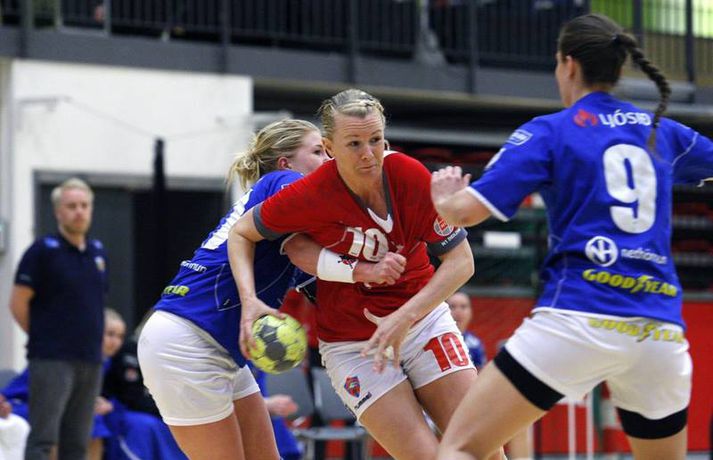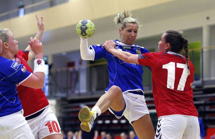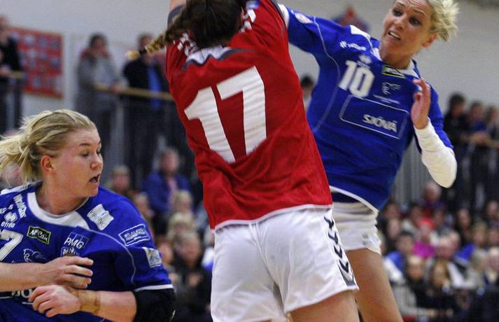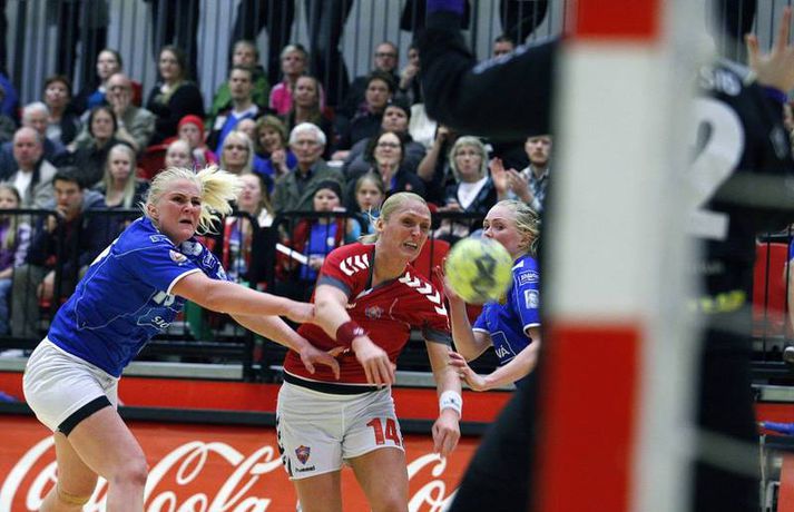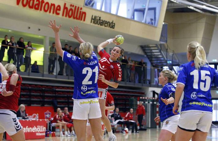 Framkonur gengu á vegg í Vodafone-höllinni - myndir Óskar Ófeigur Jónsson skrifar 7. maí 2012 22:05 Mynd/Stefán Valskonur eru komnar í lykilstöðu í úrslitaeinvíginu um Íslandsmeistaratitil kvenna í handbolta eftir sannfærandi 23-17 sigur á Fram í þriðja úrslitaleik N1 deild kvenna í Vodfone-höllinni í kvöld. Valsvörnin sýndi styrk sinn í leiknum í kvöld með Önnu Úrsúlu Guðmundsdóttur í broddi fylkingar. Fram vann fyrsta leikinn með sannfærandi hætti en Valskonur hafa svarað með tveimur sigrum í röð og geta nú tryggt sér titilinn í Safamýri á miðvikudagskvöldið. Framarar nýttu aðeins 17 af 47 skotum sínum í kvöld (36 prósent) og mörg þeirra enduðu í varnarvegg Valsliðsins auk þess að Guðný Jenný Ásmundsdóttir varði 14 skot í marki Vals. Stefán Karlsson, ljósmyndari Fréttablaðsins og Vísis, var á leik Vals og Fram í Vodafonehöllinni og náði þessum skemmtilegu myndum. Myndirnar má sjá í albúminu hér að neðan. Hægt er að sjá myndirnar stærri með því að smella á þær. Olís-deild kvenna Mest lesið Harma rasíska og transfóbíska grein liðsfélaga Sveindísar Fótbolti Liverpool loks á sigurbraut á ný Enski boltinn Amad bjargaði stigi fyrir United Enski boltinn Alfreð hissa: Veit að Íslendingar geta mun betur Handbolti Gjöf frá mömmu vatt rækilega upp á sig Sport Haaland fór sem Jókerinn að versla bleyjur Enski boltinn Tindastóll - Stjarnan 96-95 | Ótrúlegur endir á Króknum Körfubolti Andri Lucas var kóngurinn á King Power í dag Enski boltinn Segir sönginn um Jota á tuttugustu mínútu hafa áhrif á leik Liverpool Enski boltinn „Fannst þetta verða svartara og svartara“ Handbolti Fleiri fréttir KA/Þór gerði jafntefli við botnliðið Valskonur unnu 24 marka sigur og ÍR upp í annað sætið „Fannst þetta verða svartara og svartara“ Alfreð hissa: Veit að Íslendingar geta mun betur Andri kallaður inn í hópinn fyrir meiddan Hauk Arnór Snær snýr aftur heim Besta handboltadeild heims missir aðalstyrktaraðila sinn Grafalvarleg staða: „Þurfum að fara í sársaukafullar aðgerðir“ ÍR áfram eftir sigur í Mosfellsbæ Uppgjörið: Þýskaland - Ísland 42-31 | Þrot í Þýskalandi Tilkynnti um óléttu og nýjan samning á sama tíma Patrekur hættur eftir dapurt gengi Stjörnunnar Rekinn fyrir ummæli sín um krabbameinssjúka handboltagoðsögn Janus Daði myndaður í heimsókn hjá Barcelona Epicbet sýni handboltann í leyfisleysi: „Enda ólöglegar síður“ Teitur inn í landsliðið Gísli bjó til meira en þriðjung markanna Haukur magnaður í sigri Löwen Blær skoraði þrjú og lagði upp jöfnunarmarkið KA/Þór sótti sigur gegn Fram og stigalausar Stjörnukonur Fram kjöldró HK og spenna í Eyjum Meistararnir unnu gegn ÍBV og ÍR hafði betur gegn Selfyssingum Donni og félagar björguðu stigi undir lokin Afturelding komst upp að hlið Hauka Seldu bleika búninginn hennar Herrem fyrir meira en milljón „Leið vel þegar ég fór inn úr færinu“ Uppgjörið FH - Haukar 27-26 | Birgir Már tryggði FH sigur eftir spennutrylli Bernard fór mikinn en Valsmenn sluppu með sigurinn Fyrsti sigur Þórsara síðan í byrjun september Ómar Ingi með fullkomnan leik í Meistaradeildinni Sjá meira