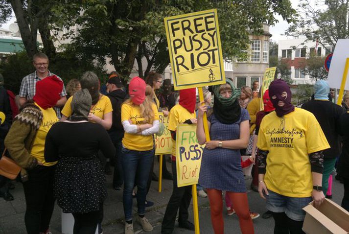 Andóf Pussy Riot Rússland Reykjavík Mest lesið Ríkissjóður greiðir fyrir flutning hinna látnu til Íslands Innlent „Krítískur massi af snarbrjáluðu fólki nær yfirhöndinni“ Innlent Ekið á konu á Langholtsvegi Innlent Falskar netverslanir: Auglýsir rýmingarsölu nokkrum dögum eftir opnun Innlent Trump nefnir nýja kynslóð orrustuskipa í höfuðið á sjálfum sér Erlent Undrandi á ráðningu ráðgjafa Innlent Hyggst kæra dyraverði Auto til lögreglu Innlent Fjölgun eldri kvenna í Kvennaathvarfi: „Þessar konur bíða ekki“ Innlent Sektaður um hundruð þúsunda fyrir að sparka í hund Innlent Skapari Call of Duty lést í bílslysi Erlent Fleiri fréttir Forsætisráðuneytið eyddi meiru í almannatengla í fyrra en í ár Inkalla snuð vegna of mikils magns BPA-plastefna Svanhildur Sif heiðruð Falskar netverslanir: Auglýsir rýmingarsölu nokkrum dögum eftir opnun Meðallaun upplýsingafulltrúa hækkuðu hlutfallslega mest Skötuilmurinn leggst yfir landið og Samkeppniseftirlitið ætlar að fylgjast vel með bensínverðinu Áfram auknar líkur á eldgosi Sektaður um hundruð þúsunda fyrir að sparka í hund Stýra fjármálum og mannauðsmálum Þjóðleikhússins Sló mann í höfuðið með glerflösku á ísfirskum skemmtistað Ekið á konu á Langholtsvegi Ríkissjóður greiðir fyrir flutning hinna látnu til Íslands Undrandi á ráðningu ráðgjafa „Krítískur massi af snarbrjáluðu fólki nær yfirhöndinni“ Fjölgun eldri kvenna í Kvennaathvarfi: „Þessar konur bíða ekki“ Ráðist á pilt á heimleið Stytting framhjá Blönduósi ekki á samgönguáætlun Vestmannaeyingar fá að eiga Vestmannaeyjar Hyggst kæra dyraverði Auto til lögreglu „Ótrúlega sorglegt að pabbi sé búinn að vera svona lengi í þessari stöðu“ Höfðu samband við dönsku herstjórnina á Grænlandi Ný könnun Maskínu: „Væri alveg ný staða í íslenskum stjórnmálum“ Glæný Maskínukönnun og jólaóveður Ársæll hringdi beint í utanríkisráðherra eftir fundinn Ósannað að fimmtán ára stúlka hafi stungið sextán ára pilt tvisvar Sameina Farice, Öryggisfjarskipti og hluta Neyðarlínunnar Gaf fingurinn á Miklubraut Birtir drög að lögum um lagareldi: Hyggst leggja niður Fiskeldissjóð Hundrað og fjörutíu milljarða bótakrafa á Samherja sé súrrealísk Skemmdir í kirkjugörðum vegna aksturs utan vegar Sjá meira