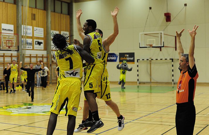 Skallagrímur og Njarðvík mættust í gær í 2. umferð Dominos-deildar karla í körfubolta og ekki var dramatíkin minni í þeim leik heldur en í fyrstu umferðinni þar sem bæði lið lentu í framlengdum leikjum. Skallagrímur vann Njarðvík 77-74 í Fjósinu í Borgarnesi í gær þar sem Carlos Medlock tryggði Skallagrími sigurinn með því að skora þriggja stiga körfu rétt áður en leiktíminn rann út. Njarðvík van fjórum stigum yfir þegar fjórar mínútur voru eftir en Skallagrímur vann lokamínútur leiksins 11-4. Skallagrímur tapaði 94-95 í framlengdum leik á Ísafirði í leiknum á undan þar sem Carlos Medlock klikkaði á þriggja stiga skoti þegar hann gat tryggt sínu liði sigurinn. Hann bætti fyrir það í gær. Njarðvíkingar unnu hinsvegar tveggja stiga sigur í framlengdum leik á móti Þór í Þorlákshöfn í fyrstu umferðinni þar sem Þórsarar náðu mest 19 stiga forskoti þegar bara fjórtán mínútur voru eftir af leiknum. Nú misstu Njarðvíkingar hinsvegar frá sér forystu í lokin. Ómar Örn Ragnarsson var á leik Skallagríms og Njarðvíkur í Fjósinu í gær og náði þessum skemmtilegu myndum. Myndirnar má sjá í albúminu hér að neðan. Hægt er að sjá myndirnar stærri með því að smella á þær.