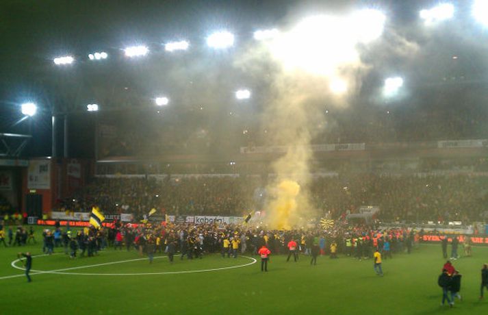 Skúli Jón sænskur meistari með Elfsborg Óskar Ófeigur Jónsson skrifar 4. nóvember 2012 16:08 Skúli Jón Friðgeirsson og félagar í Elfsborg eru sænskir meistarar í fótbolta eftir að liðið gerði 1-1 jafntefli við Åtvidaberg í lokaumferðinni í sænsku úrvalsdeildinni í dag. Elfsborg var með tveggja stiga forskot á Malmö FF fyrir lokaumferðina en Malmö tapaði 2-0 á móti AIK í dag og því skiptu úrslitin úr leik Elfsborg í raun engu máli. Stefan Ishizaki kom Elfsborg í 1-0 á 30. mínútu og þannig var staðan þar til að Viktor Prodell tryggði Åtvidaberg 1-1 jafntefli á 76. mínútu. Þá var AIK komið í 2-0 á móti Malmö og ljóst í hvað stefndi. Häcken tók annað sætið af Malmö með því að vinna 2-1 útisigur á Sundsvall. Skúli Jón kom til Elfsborg fyrir tímabilið en var óheppinn með meiðsli. Hann var á bekknum í dag en kom ekki við sögu í leiknum. Skúli Jón náði að spila fimm leiki á tímabilinu og er því meistari annað tímabilið í röð því hann varð Íslandsmeistari með KR í fyrra. Fótbolti á Norðurlöndum Mest lesið Bíll Shaquille O'Neal enn ófundinn Körfubolti Uppgjörið: Ísland - Norður-Írland 3-0 | Áfram hluti af elítunni Íslenski boltinn Einkunnir Íslands: Þrjár heitastar í frostinu Fótbolti Fluttu fréttir af snjónum í Reykjavík Fótbolti Vonast til að komast í Kórinn: „Menn hafa aldrei séð annað eins“ Fótbolti Fær þrjár milljónir á dag næstu sex árin fyrir að gera ekkert Sport Búið að finna leiðina til að pirra og vinna Liverpool Enski boltinn Formaðurinn hjálpaði til við að moka völlinn Fótbolti Palace neitar að sleppa takinu á Liverpool Enski boltinn Landsleiknum aflýst og framhaldið óljóst Fótbolti Fleiri fréttir Vísar slúðrinu til föðurhúsanna Ísak Bergmann lagði upp gegn Bayern „Við tókum bara þá ákvörðun að fara í Svanavatnið“ Albert og Mikael Egill í vondum málum á Ítalíu Palace neitar að sleppa takinu á Liverpool „Eitthvað sem ég mun aldrei gleyma“ Einkunnir Íslands: Þrjár heitastar í frostinu Viktor Bjarki skoraði og lagði upp í fyrsta byrjunarliðsleiknum Uppgjörið: Ísland - Norður-Írland 3-0 | Áfram hluti af elítunni Pedri gæti verið frá keppni til langs tíma Arteta fyrstur stjóranna á fætur Þorsteinn breytir engu á milli leikja Snjóbræðslukerfi Þróttar kom KSÍ til bjargar Tölur úr Bestu 2025: Klúðraði langflestum dauðafærum í sumar Segja spurningar vakna um stöðu Elísabetar Litu á hann sem risaeðlu en sjáið hvað er í tísku núna Formaðurinn hjálpaði til við að moka völlinn Formenn sambandanna hjálpuðu við að moka völlinn Real Madrid mun ekki refsa Vinícius Júnior Fluttu fréttir af snjónum í Reykjavík Sýknaður í alvarlegu ofbeldismáli Búið að finna leiðina til að pirra og vinna Liverpool Sú leikjahæsta leggur skóna á hilluna og klárar læknanámið Stuðningsmaður RB Leipzig lést á bikarleiknum í gærkvöldi Arteta óttast ekki að keppinautarnir steli undrabarninu frá honum FH bíður með að tilkynna nýjan þjálfara Óskar Hrafn fer ekki fet Spánn og Þýskaland mætast í úrslitum Anguissa hetja meistaranna Hákon Rafn hélt hreinu þegar Brentford flaug áfram Sjá meira