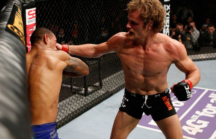 Gæti Mike Pyle verið ólíkari Gunnari Nelson? Óskar Ófeigur Jónsson skrifar 25. mars 2013 10:30 Mike Pyle Mynd/Nordic Photos/Getty Það styttist óðum í UFC-bardaga Gunnars Nelson og Mike Pyle sem fram fer í Las Vegas í Bandaríkjunum 25. maí næstkomandi en Pyle er þekktur fyrir að rasa út fyrir bardaga síns og kynda vel í mótherjum sínum og við fengum dæmi um það um helgina þegar Pyle talaði um að hann ætli að ganga frá Gunnari Nelson. Gunnar Nelson hefur aldrei tapað í 12 bardögum sínum í blönduðum bardagaíþróttum en Mike Pyle hefur aftur á mótið unnið 6 af síðustu 7 bardögum sínum. Pyle vann síðast sigur á James Head en hann kláraði þann bardaga í fyrstu lotu. Hér fyrir neðan má sjá svipmyndir frá því hvernig Pyle vann James Head eftir aðeins eina mínútu og 55 sekúndur. Þetta var þriðji bardaginn í röð sem Pyle klárar á löppunum og alla hefur hann unnið í fyrstu lotu. Það er ljóst á þessum myndum að þegar Gunnars Nelson og Mike Pyle mætast í hringnum í MGM Grand Garden Arena í Las Vegas þá geta varla mæst ólíkari bardagamenn. Mike Pyle er einkar upptekin af sjálfum sér og uppfyllur af allskyns stælum á meðan okkar maður lætur verkin tala á meðan klukkan gengur.Mike Pyleby FanVidRipp3r Íþróttir Tengdar fréttir Andstæðingur Gunnars hefur leikið á móti Van Damme og Lundgren Eins og fram kom á Vísi í morgun mun Gunnar Nelson keppa við Bandaríkjamanninn Mike Pyle í Las Vegas þann 25. maí næstkomandi. 1. mars 2013 12:15 Gunnar myndi aldrei neita "Ég fékk símtal klukkan fjögur í nótt og við samþykktum bardagann hálftíma síðar,“ sagði Haraldur Dean Nelson, faðir og umboðsmaður Gunnars Nelson sem mun berjast í UFC 160 í Las Vegas í lok maímánaðar. 2. mars 2013 08:00 Pyle ætlar að ganga frá Gunnari Nelson Bandaríkjamaðurinn Mike Pyle hefur tjáð sig um bardagann við Gunnar Nelson sem fer fram í Las Vegas í lok maí. Pyle er brattur fyrir bardagann. 23. mars 2013 21:06 Fréttir af bardaga Gunnars fljótar að leka út "Enn og aftur er Gunnar að fara eitt skref upp því Mike Pyle er þrettándi á heimslistanum og mjög sterkur andstæðingur," segir Haraldur Dean Nelson, umboðsmaður og faðir bardagakappans Gunnars Nelson. 1. mars 2013 14:29 Gunnar Nelson berst í Las Vegas Bardagakappinn Gunnar Nelson mætir hinum reynslumikla Mike Pyle í UFC-bardaga í veltivigt í Las Vegas í maí. 1. mars 2013 08:07 Mest lesið Vonast til að komast í Kórinn: „Menn hafa aldrei séð annað eins“ Fótbolti Landsleiknum aflýst og framhaldið óljóst Fótbolti Fær þrjár milljónir á dag næstu sex árin fyrir að gera ekkert Sport Stöðufundur í Laugardal klukkan 10:30 Fótbolti Enska úrvalsdeildin í jólaköttinn Enski boltinn Elsta konan til klára Járnkarlinn Sport Markvörður Inter banaði háöldruðum manni í hjólastól Sport Segir að Slot verði að taka tvo leikmenn út úr Liverpool-liðinu Enski boltinn Nýi íþróttastjóri Kjartans stal mörgæs og endaði í fangelsi í Singapúr Fótbolti Landsliðskonur aðstoðuðu ökumenn í vanda Fótbolti Fleiri fréttir Teitur inn í landsliðið Hættir með Fram Landsliðskonur aðstoðuðu ökumenn í vanda Öllum leikjum Bónus-deildar kvenna í kvöld frestað Arnar skilur ekkert í Tottenham Landsleiknum aflýst og framhaldið óljóst Bardagakapparnir vilja ólmir fá að keppa í Hvíta húsinu Segir að Slot verði að taka tvo leikmenn út úr Liverpool-liðinu Vonast til að komast í Kórinn: „Menn hafa aldrei séð annað eins“ Markvörður Inter banaði háöldruðum manni í hjólastól „Alltaf gaman að fá nýjar raddir inn“ Gleðifréttir fyrir Argentínumenn: Messi vill spila á HM „Sagan hefur sýnt það að ég er góður að þjálfa unga og efnilega leikmenn“ Stöðufundur í Laugardal klukkan 10:30 Enska úrvalsdeildin í jólaköttinn Nýi íþróttastjóri Kjartans stal mörgæs og endaði í fangelsi í Singapúr Tyrkneska sambandið segir dómara hafa veðjað á þúsundir leikja Brendan Rodgers sagði starfinu sínu lausu eftir ásakanir Fær þrjár milljónir á dag næstu sex árin fyrir að gera ekkert Segir sitt fyrrum lið í krísu Elsta konan til klára Járnkarlinn Dagskráin í dag: VARsjáin, Lokasóknin, íslenskur körfubolti og margt fleira Fylltu í eyðurnar: Vanmetnasti leikmaður deildarinnar? Fyrirliði Real Madríd þarf að fara í aðgerð á hné Einkaviðtal við Carrick: „Hálfgerð tískubylgja sem einkennir fótboltann í dag“ Stólarnir ekki í vandræðum á Egilsstöðum Markaóður Stefán Ingi eftirsóttur Öllu búin skildi snjóspáin raungerast „Eitthvað sem við erum óvanar eftir Þjóðadeildina“ Heimir kynntur til leiks í Árbænum Sjá meira