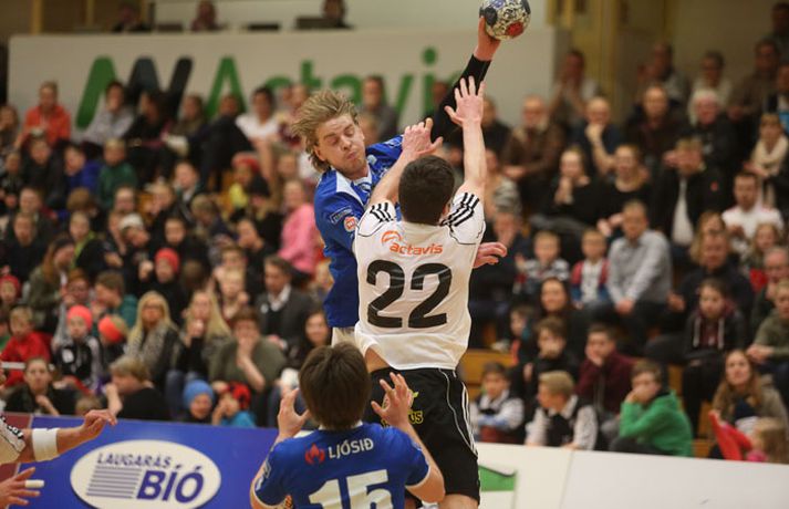 Umfjöllun, viðtöl og myndir: FH - Fram 23-24 Henry Birgir Gunnarsson í Kaplakrika skrifar 18. apríl 2013 12:53 Einar Rafn Eiðsson og Ægir Hrafn Jónsson verða í eldlínunni í kvöld. Fram er komið í vænlega stöðu í undanúrslitaeinvígi sínu gegn FH eftir að hafa unnið sterkan útisigur, 23-24, í Kaplakrika í kvöld. Leikur liðanna fer seint í sögubækurnar fyrir fegurð en spennandi var hann. Liðin héldust í hendur nær allan leikinn en taugar Framara voru sterkari undir lokin og lukkan var einnig með þeim. Fyrri hálfleikur var í einu orði sagt hreinasta hörmung. Handboltinn hjá báðum liðum skelfilegur og báðum liðum til háborinnar skammar. Framarar skömminni skárri framan af en FH skoraði ekki fyrr en eftir rúmar 10 mínútur. Sóknarleikur beggja liða skelfilegur og skotvalið oftar en ekki stórfurðulegt. Varnarleikur liðanna var ekkert sérstaklega frábær. Það var fyrst og fremst slakur sóknarleikur sem gerði það að verkum að lítið var skorað og staðan í hálfleik 10-10. Markverðir liðanna yfirburðamenn í hálfleik. Magnús varði 12 skot í marki Fram og var með 57 prósent markvörslu. Daníel FH-ingur með sjö varin skot og 41 prósent markvörslu. Flestir voru dauðfengnir er flautað var til leikhlés og ólíklegt að það væri hægt að bjóða upp á eins slakan handbolta í síðari hálfleik. FH-ingar voru rúmar tíu mínútur að skora í fyrri hálfleik og Framarar tóku sér sjö mínútur til þess að skora í þeim síðari. Engu að síður var munurinn aldrei meira en tvö mörk og lítið skorað. Liðin héldust alveg í hendur þar til rúm mínúta var eftir af leiknum. Þá náði Fram tveggja marka forskoti sem dugði til sigurs. Liðið missti Sigurð Eggertsson af velli er tæpar tvær mínútur voru eftir en það slapp til. Fyrst skoraði Sigfús Páll með glæsilegu gegnumbroti og sigurmarkið skoraði Stefán Darri. Ekkert sérstakt skot en það lak í gegnum hendur Daníels og í netið. Þar lá eiginlega munurinn í kvöld. Bæði lið spiluðu fínasta varnarleik en sóknarleikurinn var lengstum skelfilegur. Einar Rafn átti spretti í FH-liðinu sem og Magnús Óli sem var þó ekki að nýta skotin sín vel. Daníel Freyr þeirra bestur í markinu og Baldvin beit frá sér í vörninni þar til hann fékk rauða spjaldið. Magnús Erlendsson markvörður og Róbert Aron Hostert í sérklassa hjá Fram-liðinu. Magnús varð frábærlega og Róbert bar svo sóknarleikinn á baki sér. Sigfús átti einnig flotta innkomu. Sigurður: Stálum þessu í lokin "Þetta var bara létt í dag," sagði Sigurður Eggertsson Framara og glotti í kampinn eftir leikinn en hvað fannst honum um handboltann í leiknum? "Þetta var glæsilegur varnarleikur. Það hlýtur að vera því þetta eru bestu sóknarliðin og skora ekki meira. Það er samt spenna í mönnum og það hlýtur að hafa haft sitt að segja. Ég veit samt ekki hvað þetta er. Menn voru hálfkraftlausir en ég veit ekki hvað sé málið." Sigurður var í sviðsljósinu undir lokin. Átti misheppnað skot og lét svo reka sig af velli þegar tæpar tvær mínútur voru eftir. "Ég var hræddur um að ég hefði farið með leikinn er ég átti skotið sem var varið. Þá krossaði ég mig. Það var hræðilegt en sem betur fer kom Siffi sterkur inn. Þessi leikur hefði getað farið hvernig sem er en féll með okkur. Við stálum þessu í lokin," sagði Sigurður og glotti við tönn. Einar Andri: Býr meira í FH-liðinu"Þessi leikur fer í brottvísunum hjá okkur á síðasta korterinu. Mér fannst við vera með leikinn í síðari hálfleik en allar þessar brottvísanir vógu of þungt," sagði Einar Andri Einarsson, þjálfari FH, en hann var ekki sáttur með þær allar. "Við vorum klaufalegir á stundum en mér fannst línan í brottvísunum ekki nógu skýr. Ég er svekktur með það og mér fannst dómgæslan ekki góð. Ég á eftir að skoða það samt betur. "Við gerum líka klaufaleg mistök í lokin og ég er svekktur því við áttum að vinna þennan leik. Að fá á okkur aðeins 24 mörk á að duga til sigurs. "Þetta er samt ekki búið og við getum klárlega snúið þessu einvígi við. Það býr miklu meira í FH-liðinu en þetta. Við höfum áður unnið í Safamýrinni í vetur og ég sé ekkert því til fyrirstöðu að við endurtökum þann leik." Einar: Heppnin með okkur"Siffi og Stefán Darri kláruðu þetta fyrir okkur. Auðvitað smá lukka hjá Stefáni Darra en ef maður ætlar að vinna svona leik þá verður maður að hafa heppnina með sér. Ég held við höfum líka unnið fyrir heppninni," sagði Einar Jónsson, þjálfari Fram, eftir leik. "Það er eitthvað óeðlilegt ef það kemur ekki leikur sem er sá fallegasti. Þetta var samt jafn leikur og örugglega fín skemmtun fyrir áhorfendur. "Mörkin undir lokin voru skrautleg á báða bóga og erfitt að segja hvað hafi gert útslagið þannig séð. Bæði lið höfðu átt sína slöku leiki í fyrstu leikjunum og ég átti því von á mjög jöfnum leik núna. "Næsti leikur verður svakalegur og ég á von á því að það verði sama spennan í gangi þá. Við þurfum að mæta virkilega klárir í þann leik til þess að vinna." Íslenski handboltinn Tengdar fréttir Umfjöllun og viðtöl: Fram - FH 24-19 | Fram jafnaði metin í einvíginu Framarar unnu fimm marka sigur á FH-ingum í öðrum leik liðanna í undanúrslitum N1-deildar karla í handbolta í kvöld. Staðan í einvígi liðanna er því 1-1. 16. apríl 2013 14:50 Umfjöllun og viðtöl: FH - Fram 37-26 | N1-deild karla FH sigraði Fram 36-27 í fyrsta leik liðanna í undanúrslitum N1 deildar karla en leikið var í Kaplakrika. Staðan í hálfleik var 16-15 FH í vil. 13. apríl 2013 00:01 Mest lesið Óskar Hrafn fer ekki fet Íslenski boltinn Hákon Rafn hélt hreinu þegar Brentford flaug áfram Enski boltinn Spánn o