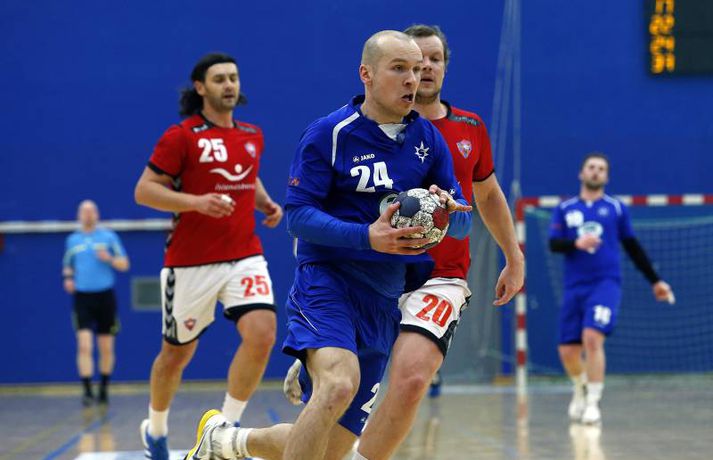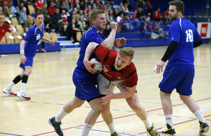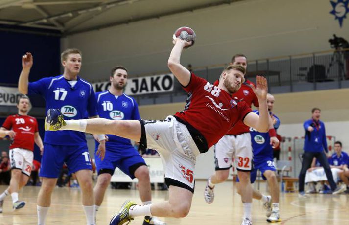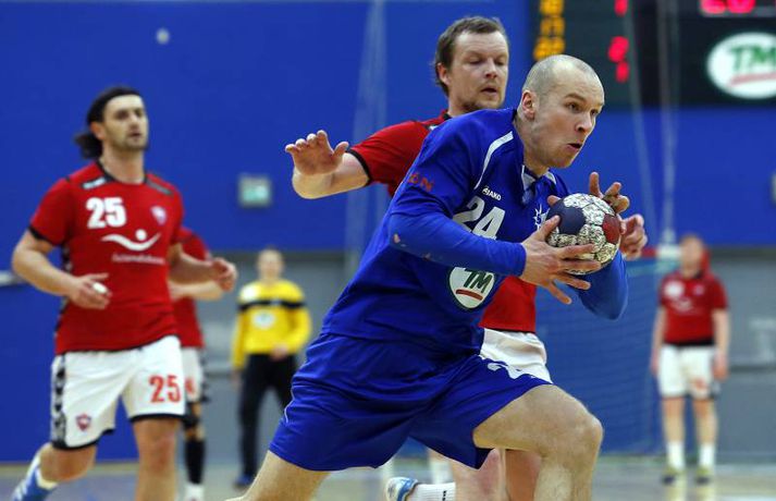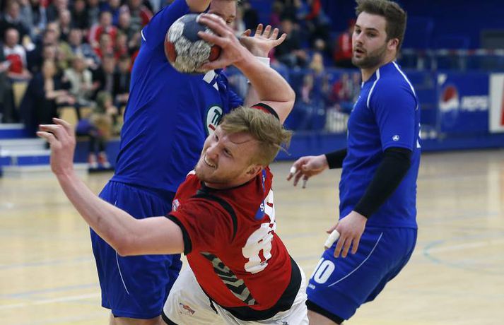 Umfjöllun,viðtöl og myndir: Stjarnan - Valur 22-23 Guðmundur Marinó Ingvarsson skrifar 21. apríl 2013 00:01 Mynd/Stefán Valur hélt sæti sínu í N1 deild karla í handbolta með því að leggja Stjörnuna öðru sinni í umspili um sæti í deildinni í kvöld 23-22. Stjarnan átti síðustu sóknina í leiknum en Hlynur Morthens varði skot Víglundar Þórssonar. Stjarnan hóf leikinn með látum. Liðið lék sér að 3-2-1 vörn Valsmanna og gat nánast skorað af vild. Valsmenn áttu í miklum vandræðum í fyrri hálfleik og var Stjarnan þremur mörkum yfir 15-12 þegar flautað var til hálfleiks. Valur breytti í 6-0 vörn í upphafi seinni hálfleiks sem Stjarnan réð ekkert við. Það tók Stjörnuna rétt tæpar 15 mínútur að skora í seinni hálfleik en vörn Stjörnunnar hélt vel og því var liðið enn inni í leiknum. Valur náði mest þriggja marka forystu sem Stjarnan vann upp á sex mínútum. Lokamínúturnar voru æsispennandi. Valur skoraði aðeins eitt mark á sjö síðustu mínútum leiksins en vörn liðsins hélt og Finnur Ingi Stefánsson skoraði sigurmarkið þegar enn voru þrjár mínútur eftir af leiknum. Valur fór illa með færi til að klára leikinn og Hlynur Morthens sá til þess að Stjarnan náði ekki að jafna fyrir aftan góða vörnina. Valur heldur því sæti sínu í deildinni en Stjarnan þarf enn að berjast við að reyna að komast upp, að því gefnu að ekki verði fjölgað í N1 deildinni. Hlynur: Eina sem skiptir máli er að við unnumMynd/Stefán„Við vorum úti á túni í fyrri hálfleik með okkar 3-2-1. Þeir voru með okkur í vasanum og hlupu okkur sundur og saman,“ sagði Hlynur Morthens markvörður Vals. „Við breyttum í 6-0 í seinni hálfleik og þá fór ég að fá skotin sem ég vildi fá. Þá fór þetta að ganga og það var allt annað að sjá liðið. „Við vorum ekki nógu góðir sóknarlega í leikjunum tveimur en hverjum er ekki sama. Við unnum og það er það eina sem skiptir máli. „Tímabilið er búið, gríðarlega erfitt. Þetta er eitt erfiðasta tímabil sem ég hef upplifað. Ég veit ekki hvað við höfum spilað marga úrslitaleiki á þessu tímabili en við erum búnir að vinna síðustu sjö leiki og ég get ekki lýst því hvað ég er feginn að vera kominn í frí. „Það er mikið framundan hjá þessu stóra félagi. Það var ekki að ræða það að fara niður í næst efstu deild, það var aldrei að fara að gerast,“ sagði Hlynur sem hreifst mjög af Stjörnunni í leikjunum tveimur. „Stjarnan er með frábært lið. Virkilega gott lið með mjög spræka og vel spilandi stráka. Ég vona að það verði fjölgun í deildinni og þeir komi upp. Þá þurfa þeir ekki mikið að styrkja sig til að vera vel samkeppnishæfir,“ sagði Hlynur sem á ekki von á neinu öðru en að vera áfram í Val á næstu leiktíð undir stjórn Ólafs Stefánssonar. Gunnar Berg: Okkur var ekki ætlað að fara uppMynd/Stefán„Þetta var grátlegt en ætli þetta séu ekki örlögin. Við áttum ekki að fara upp,“ sagði svekktur Gunnar Berg Viktorsson þjálfari Stjörnunnar eftir leikinn. „Við náum að jafna þegar það eru 10 mínútur eftir af leiknum og það hefur ekkert að gera með það hvernig við spiluðum fyrstu 15. Svo var þetta stöngin inn, stöngin út. Markmaðurinn hjá okkur ver boltann sem er á línunni og dómarinn dæmir hann inni. Kannski var hann inni, kannski ekki en hann dæmir hann inni og kannski var það úrslita atriðið í leiknum,“ sagði Gunnar Berg og vísaði því á bug að fyrstu fimmtán mínútur seinni hálfleiks hefðu farið með leikinn hjá Stjörnunni. „Fyrstu fimmtán voru vonda og Bubbi varði vel en það var ekki það sem gerði útslagið í lokin. Klúðrið í fyrri leiknum var ótrúlegt en þar fengu þeir smá hjálp,“ sagði Gunnar Berg og vísaði þar til dómgæslunnar í fyrri leiknum. „Þetta var óheppni og reynsluleysi sem gerðu það að verkum að við náðum ekki að vinna hérna. „Veruleikinn sem við lifum við er að það fer bara eitt lið upp og svo fáum við lið eins og Val til að spila á móti. Valur eiga ekkert að vera heldur í næst efstu deild með Óla Stef að koma heim og svona. Það hefði ekki verið gott fyrir alla að fá þá niður en vonandi er hægt að fjölga um tvö til fjögur lið og búa til alvöru deild. Þetta virðist vera þreytt núna og vonandi komumst við bakdyramegin inn,“ sagði Gunnar Berg og gaf ekki mikið fyrir að það þyrfti að leika eitt tímabil áður en breytingar yrðu framkvæmdar þar sem liðin vissu hvað væri spilað upp á. „Það verður alltaf einhver krísa um hvernig það verður útfært og alltaf einhverjir fúlir. Það má alveg gera þetta núna og þá verður eitthvað lið fúlt í ákveðinn tíma. „Við eigum alltaf við sama vandamálið að stríða. Við höfum verið að byggja upp lið í ákveðin tíma og það koma alltaf einhver lið úr efstu deild sem hirða okkar bestu leikmenn og það verður alltaf erfiðara og erfiðara að komast upp. „Ég óttast að það endurtaki sig að einhverju leiti. Það er alltaf áhætta og alltaf erfitt að fá leikmenn til að skrifa undir lengra en eins árs samning því það er alltaf eitthvað lið sem vill fá þá. Maður skilur það. Þetta eru ungir leikmenn með metnað sem vilja spila fyrir framan fólk og í sjónvarpi til að koma sér á framfæri. Við getum ekkert gert annað en að berjast og komast upp en það er alltaf erfitt þegar það detta menn úr liðinu. „Við misstum tvo leikmenn um jólin sem voru mjög góðir og mikilvægir fyrir liðið okkar og þeir sitja á bekknum núna síðan um áramótin. Ég sé ekki að þetta skili neinu fyrir liðin, þá eða okkur. Þetta er veruleikinn. Þeir vilja frekar spila í efstu deild en hérna,“ sagði Gunnar Berg og vísar til þess að St