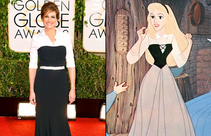 Margar af skærustu stjörnum Hollywood klæddu sig svipað og frægustu Disney-prinsessur sögunnar á nýafstaðinni Golden Globe-verðlaunahátíð. Eins og sést á meðfylgjandi myndum eru líkindin sláandi og spurning hvort þetta sé nýtt trend vestan hafs?