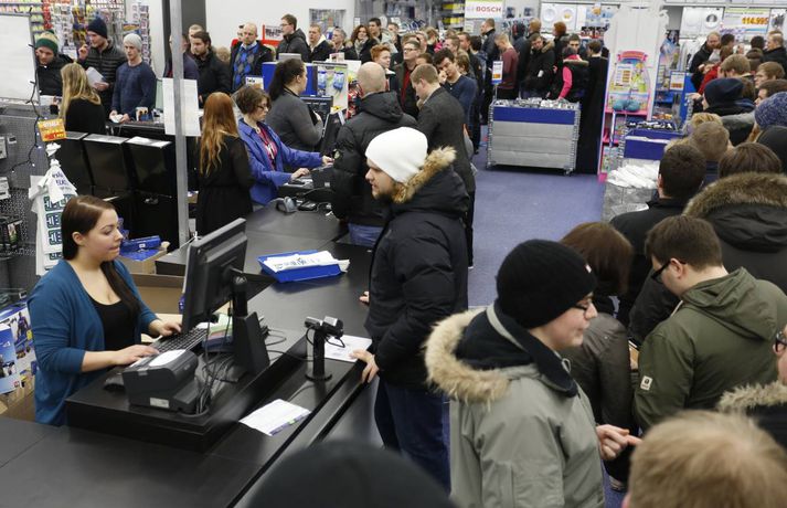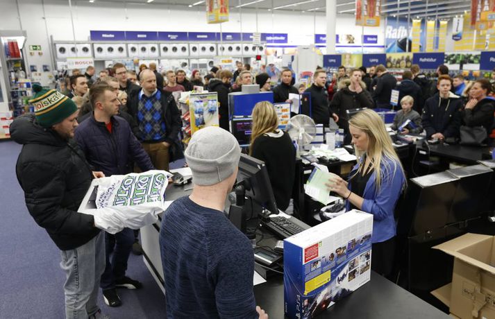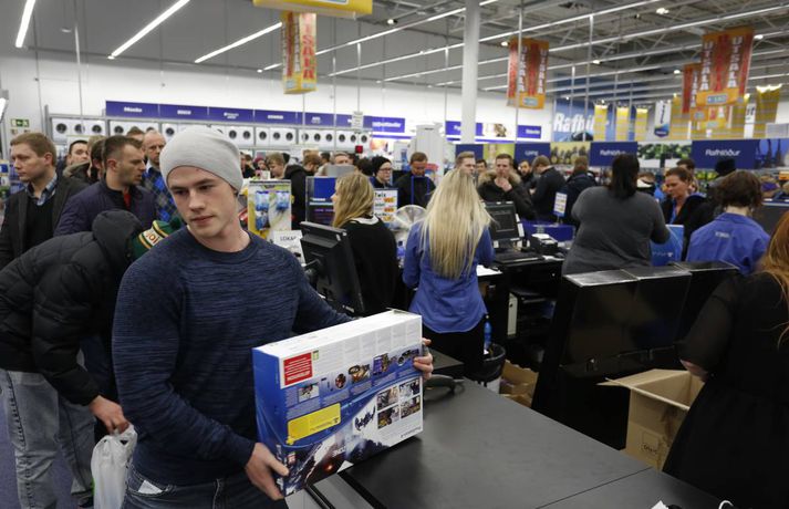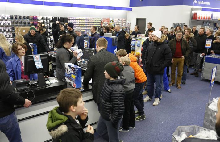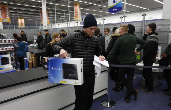 200 manna röð fyrir utan Elko Stefán Árni Pálsson skrifar 28. janúar 2014 21:58 Mikil eftirvænting fyrir nýju PS4 leikjatölvunni. visir/valli Playstation 4 leikjatölvan fór í sölu í kvöld, en Elko, Skífan og Gamestöðin voru með sérstaka kvöldopnun í tilefni útgáfunnar leikjatölvunnar hér á landi. Leikjatölvan hefur notið gríðarlegrar vinsælda í heiminum eftir að hún kom út. Playstation 4 hefur selst í yfir fjórum milljónum eintaka og seldist upp fljótlega í Bandaríkjunum eftir að hún kom út. Mikil röð hefur myndast fyrir utan Elko í Kópavogi þar sem spenntir aðdáendur hafa staðið í þó nokkra stund en um 200 manns eru fyrir utan verslunina. Leikjavísir Mest lesið Láta forræðishyggju hinna fullorðnu ekki fipa sig Lífið Hrekkjavökubúningar sem er best að forðast Menning Telur Sweeney hafa verið blekkta í kjólinn Tíska og hönnun Stjörnurnar skinu skært á sögulegum sjónvarpsverðlaunum Lífið Ískyggilega líkur ofurfyrirsætu: „Ég er með píku“ Lífið „Síðasta flugtak“ Play í Gamla bíói Lífið Atli Steinn fann ástina á ný Lífið Fundin eftir sjö vikur á vergangi: „Takk hver sem þú ert“ Lífið „Lélegur í að fela hvernig mér líður og bera harm minn í hljóði“ Tónlist „Get ekki gengið óstudd og framundan er mikil endurhæfing“ Lífið Fleiri fréttir Gefa út endurbætta útgáfu af íslenskum leik Nýr íslenskur tölvuleikur um lífsgæðakapphlaupið Battlefield 6: Gamli góði Battlefield er snúinn aftur Ghost of Yōtei: Einhver heimsins fallegasti leikur og skemmtilegur líka Sjá meira