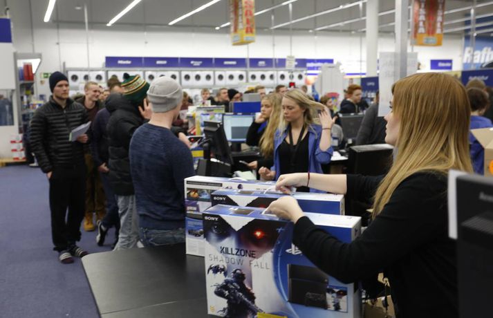 Playstation 4 leikjatölvan fór í sölu í kvöld, en Elko, Skífan og Gamestöðin voru með sérstaka kvöldopnun í tilefni útgáfunnar leikjatölvunnar hér á landi. Leikjatölvan hefur notið gríðarlegrar vinsælda í heiminum eftir að hún kom út. Playstation 4 hefur selst í yfir fjórum milljónum eintaka og seldist upp fljótlega í Bandaríkjunum eftir að hún kom út. Mikil röð hefur myndast fyrir utan Elko í Kópavogi þar sem spenntir aðdáendur hafa staðið í þó nokkra stund en um 200 manns eru fyrir utan verslunina.