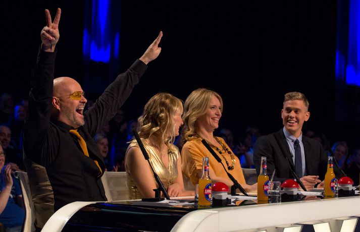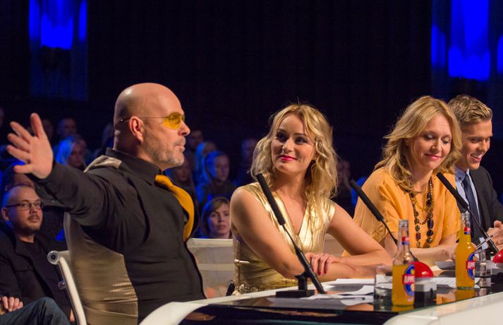 Fyrsti þátturinn af Ísland got Talent var sýndur á Stöð 2 í gær, sunnudag. Meðfylgjandi myndir voru teknar á meðan á keppni stóð. Hér að ofan má meðal annars sjá þegar fyrrum menntamálaráðherra Þorgerður Katrín Gunnarsdóttir gerir sér lítið fyrir og kyssir skallann á Bubba Morthens sem lá ekki á skoðunum sínum þegar hann dæmdi frammistöðu keppenda.Fylgist með öllum þáttum Ísland Got Talent á sunnudagskvöldum klukkan 19:45 Stöð 2.Hrund Þórsdóttur fréttamaður Stöðvar 2 ræðir hér við Þórunni.Hér kyssir Þorgerður Katrín skallann á Bubba Morthens.Eiður Smári komst ekki áfram.