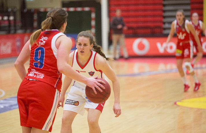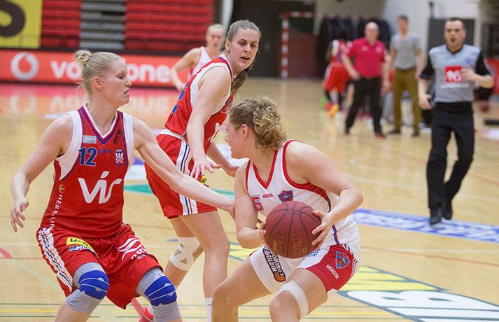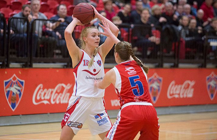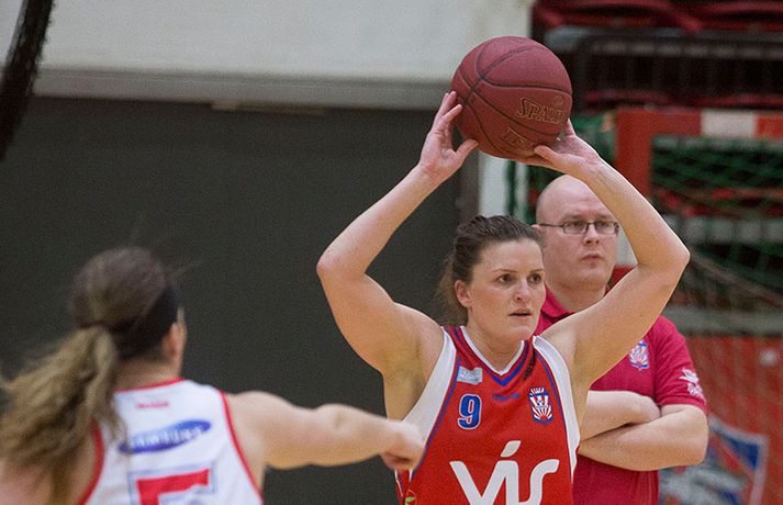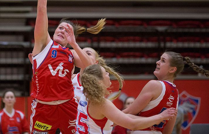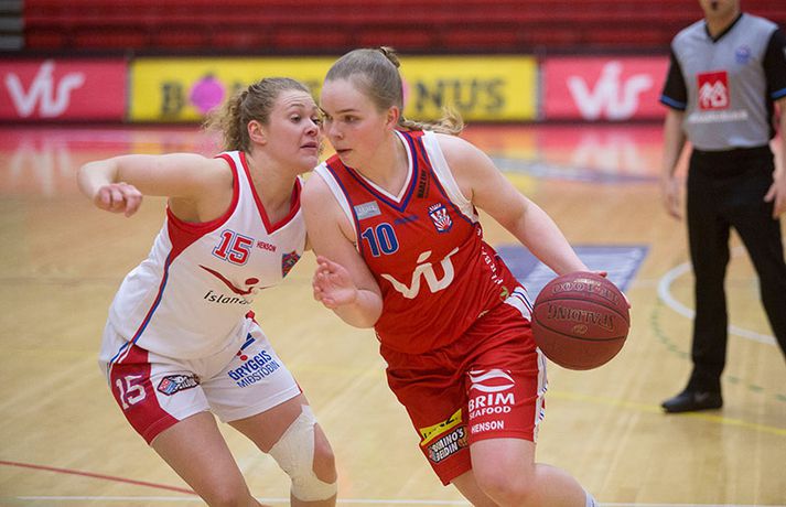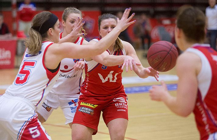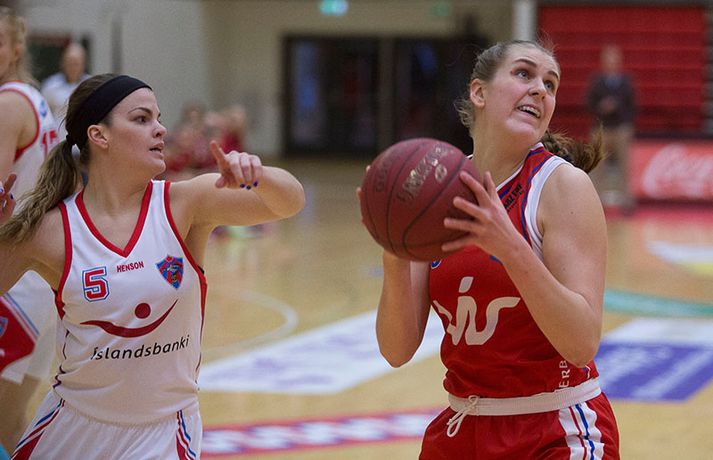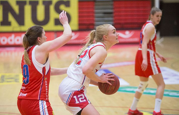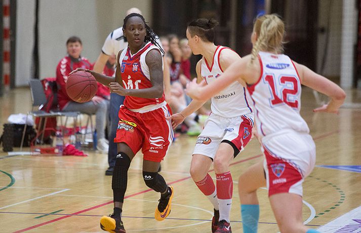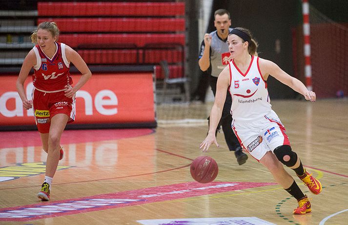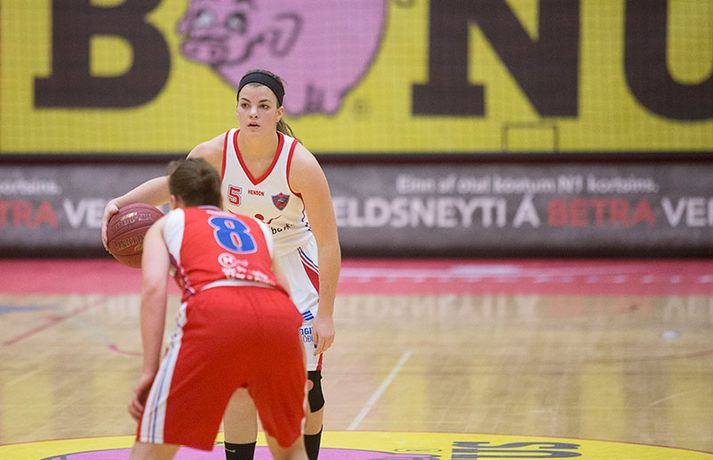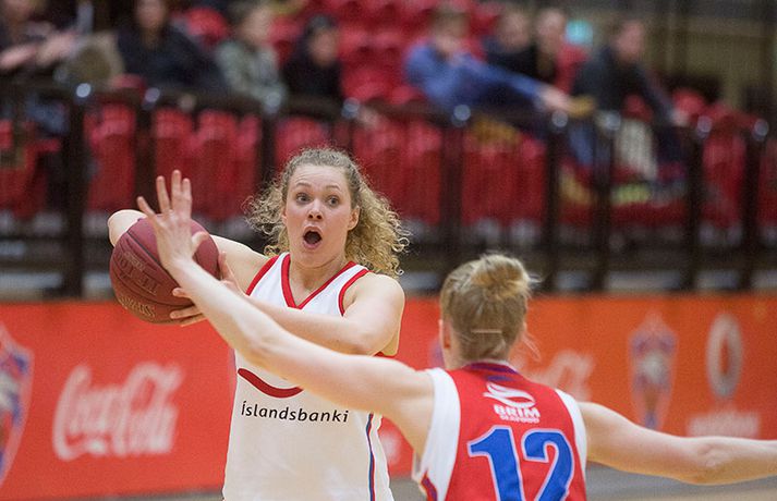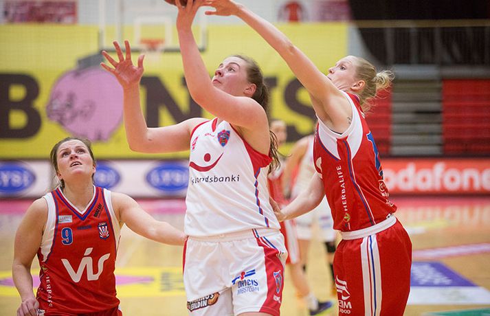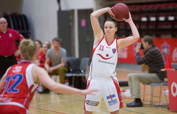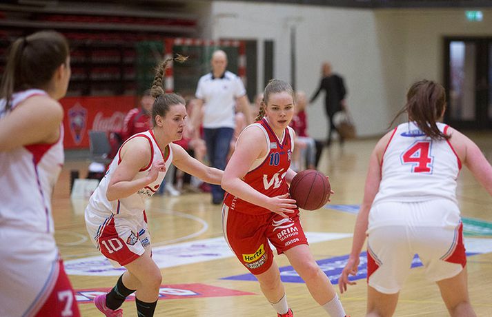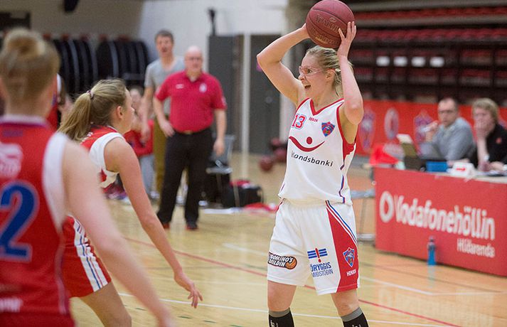 Valur knúði fram oddaleik í rimmu þeirra gegn Snæfell í Dominos-deild kvenna. Staðan í þessu undanúrslitaeinvígi er því 2-2. Fyrsti leikhluti fór nokkuð fjörlega af stað, en bæði lið virtust vel gíruð í leikinn. Smá stress var þó í báðum liðum. Skiljanlega, enda mikið undir. Valur tók forystuna í fyrsta leikhluta og Kristrún Sigurjónsdóttir fór mikinn, en hún byrjaði leikinn virkilega vel. Aldrei skildi þó mikið á milli liðanna og munurinn var ekki mikill. Valur leiddi svo eftir fyrsta leikhluta, 17-12. Ágeng vörn heimastúlkna var að virka vel. Snæfell átti oftar en ekki í miklum vandræðum með að koma sér yfir miðjuna. Þær héldu pressunni áfram í öðrum leikhluta og náðu að auka muninn jafnt og þétt. Valsstúlkur voru með 50% þriggja stiga hittni í fyrri hálfleik á meðan gestirnir voru einungis með 12,5%. Munurinn varð svo mestur þegar flautað var til hálfleiks, en þá var hann orðinn 16 stig; 41-25. Átta leikmenn voru komnir á blað fyrir Val í hálfleik, en einungis sex hjá Snæfell. Þriðji leikhluti var svo svipaður og sá annar, en Snæfell virtist vera minnka muninn um þriðja leikhluta. Þá gáfu heimastúlkur aftur í og var munurinn 23 stig þegar þriðja leikhluta af fjórum var lokið. Það var svo formsatriði fyrir Val að klára leikinn og lokatölur 82-56. Bersýnilega mátti sjá þreytu hjá báum liðum. Þetta er fjórði leikur liðanna á sjö dögum og bæði lið voru byrjuð að sýna þreytumerki undir lokin - þá sérstaklega gestirnir úr Stykkishólmi. Liðsheildin skilaði þessum sigri hjá Val sem og öflug vörn. Átta leikmenn hjá Val skoruðu sjö stig eða meira, en einungis fjórir hjá Snæfell. Chynna Brown átti greinilega við meiðsli að stríða en hún skoraði ekki nema fimm stig fyrir gestina. Pressuvörn Vals var virkilega öflug og fengu nokkrar auðveldar sóknir ef svo mætti kalla. Hröð upphlaup sem skiluðu oftar en ekki góðum tveggja stiga körfum. Snæfell átti í vandræðum með að byrja sóknarleik sinn og gerðu klaufamistök. Hjá Val voru þær Kristrún Sigurjónsdóttir og Anna Martin öflugastar. Kristrún skoraði 16 stig og Anna 14, en Anna spilaði liðsfélaga sína vel uppi. Hildur Sigurðardóttir var stigahæst með 12 stig hjá gestunum og Guðrún Gróa setti niður ellefu stig. Alla tölfræði má sjá hér að neðan.Ágúst: Nokkrir leikmenn ekki verið sýnilegir „Ég er bara mjög ánægður með liðið. Þetta var liðssigur og við spiluðum frábæra vörn," sagði Ágúst hæstánægður við Vísi eftir leik. „Við spilum mjög góða vörn í fyrri hálfleik og upphafi seinni hálfleiks. Það kemur kafli um miðjan þriðja leikhluta sem einbeitingin dettur niður í vörninni en annars var vörnin mjög góð mest allan leikinn." „Sóknarlega erum við að spila vel saman. Það hefur kannski vantað aðeins upp á í hinum þremur leikjunum, meira að segja leiknum sem við unnum. Það hefur vantað betra samspil og að finna réttu færin." Hann sagði að leikurinn hafi langt því frá að hafa verið auðveldur: „Við þurftum virkilega að hafa fyrir þessu þrátt fyrir að hafa verið þessi munur hérna í endann. Snæfell er með frábært lið og frábæra leikmenn." Margir leikmenn lögðu lóð sín á vogarskálirnar og Ágúst var ánægður með liðsheildina: „Við erum búnir að vera tönnlast á því að við séum með góða breidd. Við þurfum þá að sýna það. Það hafa nokkrir leikmenn ekki verið sýnilegir í þessu einvígi þangað til í kvöld. Ef hungrið er til staðar fyrir síðasta leikinn og við fáum framlag frá fleirum en tveimur til þremur sóknarlega þá erum við mjög öflugar." „Ég er bjartsýnn fyrir oddaleikinn. Sá leikur byrjar bara 0-0. Það skiptir engu máli hvort þessi leikur hafi unnist með einu stigi eða 50. Það er bara 0-0 í Hólminum og við þurfum að mæta aftur bara vel gíraðar og vel einbeittar," sagði Ágúst við Vísi að lokum.Hildur: Orðið pínu eins og Survivor keppni „Ég myndi segja að þreyta í leikmönnum hafi gert gæfumuninn hér í kvöld. Leikmenn eru bara að detta hérna niður í meiðsli og annað undan álagi í úrslitakeppninni," sagði Hildur ekki ánægð, skiljanlega, í leikslok. „Ég held að mótanefnd þurfi að skoða sín mál áður en þeir raða niður leikjum. Ég held að enginn þeirra gæti spilað svona ört. Þetta er pínu mikil vitleysa, myndi ég segja,“ sagði Hildur eftir leikinn í kvöld. „Bæði lið finna fyrir þessu en við erum búnar að missa nokkra leikmenn í meiðsli. Aðrar hafa hrunið niður í klakapokana og annað slíkt. Þetta er orðin eins og einhver Survivor-keppni.“ Snæfell réð ekki nægilega vel við pressuvörn Vals í kvöld og sagði Hildur að æsingur hafi þar spilað inn í: „Það er kannski eitthver æsingur. Við þurfum að vera rólegri og gefa boltann léttar á milli til að komast í gegnum þetta. Við leystum þetta fínt í Hólminum en þegar það er komin þreyta í mannskapinn fórum við að taka rangar ákvarðanir." Hún sagði að engin leikmaður ætti að vera þreyttur í eins stórum leik og á þriðjudag, þegar oddaleikurinn fer fram í Stykkishólmi: „Það verður risaleikur á þriðjudag. Það mæta allir ferskir þá, enda langt frí. Það mætir enginn þreyttur þá," sagði Hildur og brosti að lokum.Tölfræði leiksins: Valur-Snæfell 82-56 (17-12, 24-13, 24-17, 17-14) Valur: Kristrún Sigurjónsdóttir 16, Anna Alys Martin 14/5 fráköst/5 stoðsendingar, Unnur Lára Ásgeirsdóttir 9/5 stoðsendingar/5 stolnir, Rut Herner Konráðsdóttir 8/4 fráköst, Þórunn Bjarnadóttir 8/5 fráköst, Ragnheiður Benónísdóttir 8/4 fráköst, María Björnsdóttir 8/5 fráköst, Guðbjörg Sverrisdóttir 7/7 fráköst, Margrét Ósk Einarsdóttir 2, Ragna Margrét Brynjarsdóttir 2/8 fr