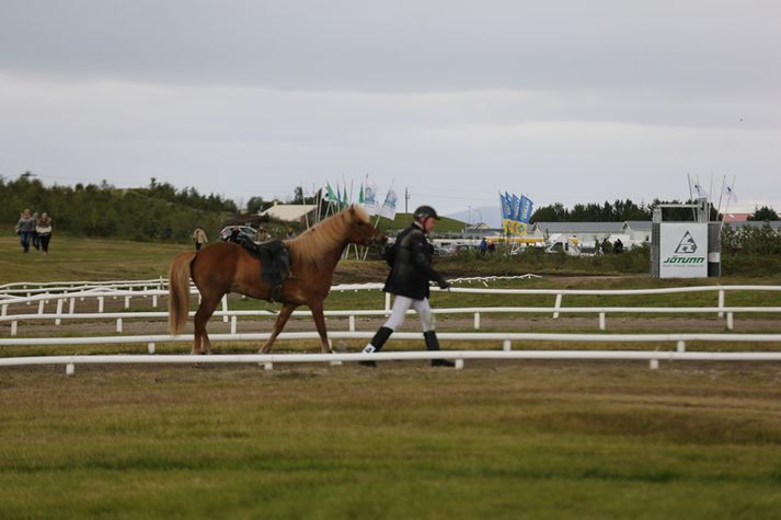 Landsmót hestamanna náði hápunkti í kvöld þegar A-úrslit í tölti voru kveðin upp. Árni Björn Pálsson á Stormi frá Heiðarhóli fór með sigur af hólmi með einkunnina 9,39 og tengdafaðir Árna, Sigurbjörn Bárðarson á Jarli frá Mið-Fossum hafnaði í öðru sæti með einkunnina 8,56. Þá var Leó Geir Arnarson á Krít frá Miðhjáleigu í þriðja sæti og Þórarinn Ragnarsson á Þyt frá Efsta-Dal II í því fjórða. Miður þótti að Sigurður Sigurðarson þurfti að yfirgefa völlinn eftir að hestur hans, Dreyri frá Hjaltastöðum féll. Hestarnir þóttu með eindæmum glæsilegir og sjá mátti áhorfendur taka við sér með tilheyrandi lófaklappi og fagnaðarlátum þegar hestarnir þeystust áfram á yfirferðartölti. Hér má sjá A-úrslitin í tölti í heild sinni: 1. Árni Björn Pálsson á Stormi frá Herríðarhóli Hægt tölt: 9,5 Hraðabreytingar: 9,17 Yfirferð: 9,5Aðaleinkunn: 9,39 2. Sigurbjörn Bárðarson á Jarli frá Mið-Fossum Hægt tölt: 9,0 Hraðabreytingar: 8,5 Yfirferð: 8,17Aðaleinkunn: 8,56 3. Leó Geir Arnarson á Krít frá Miðhjáleigu Hægt tölt: 8,17 Hraðabreytingar: 8,0 Yfirferð: 8,0Aðaleinkunn: 8,22 4. Þórarinn Ragnarsson á Þyt frá Efsta-Dal II Hægt tölt: 8,0 Hraðabreytingar: 8,0 Yfirferð: 8,0Aðaleinkunn: 8,0 5. Ísólfur Líndal Þórisson á Kristófer frá Hjaltastaðahvammi Hægt tölt: 7,5 Hraðabreytingar: 7,5 Yfirferð: 7,5Aðaleinkunn: 7,5 6. Sigurður Sigurðarson á Dreyra frá Hjaltastöðum Hægt tölt: 7,5 Hraðabreytingar: 7,67 Yfirferð: 0,00 Aðaleinkunn:Völlurinn yfirgefinn eftir að Dreyri féll.vísir/bjarni þórÁrni Björn tekur við verðlaununum.vísir/bjarni þórvísir/bjarni þór
