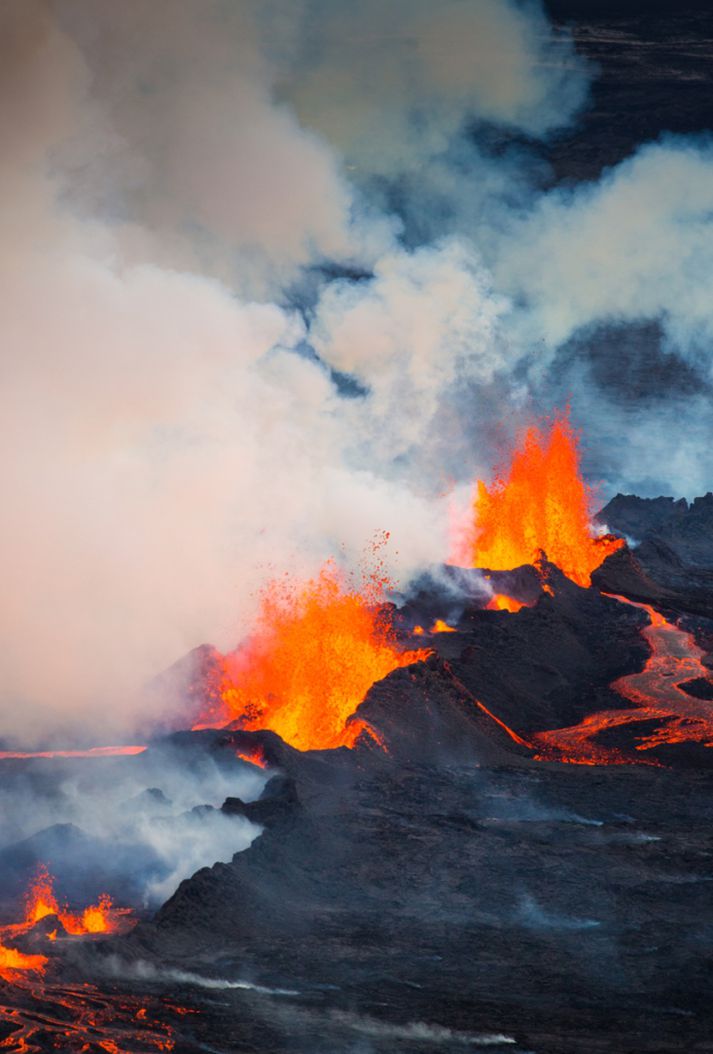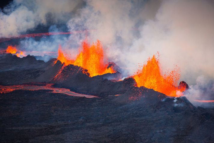 Stórfenglegt eldgos - Myndasyrpa frá Holuhrauni Samúel Karl Ólason skrifar 4. september 2014 07:16 Vísir/Auðunn Eldgosið sem nú stendur yfir í Holuhrauni, norðan við Vatnajökul, hefur nú staðið yfir í rúma fimm sólarhringa. Það hófst aðfararnótt sunnudagsins. Í gærkvöldi hafði hraunið úr eldgosinu þakið 9,1 kílómetra svæði Svæðið er enn lokað fyrir umferð, en ákvörðun um áframhaldandi lokun á svæðinu verður tekin síðar í dag. Sá órói sem mældist við gosstöðvarnar dó út í gærkvöldi og ekki hefur borið á honum aftur. Auðunn Níelsson, ljósmyndari Fréttablaðsins og Vísis, flaug yfir svæðið í gær og tók meðfylgjandi myndir og má með sanni segja að eldgosið sé stórfenglegt. Bárðarbunga Tengdar fréttir Ferðaþjónustuaðilar skipuleggja ferðir á gosstöðvar Lokanir vega vegna eldgoss norðan Vatnajökuls hafa kostað ferðaþjónustufyrirtæki allt að tvær milljónir á dag. Mesta tjónið af lokun Dettifossvegar að vestan. Byrjað er að skipuleggja ferðir að gosstöðvum í Holuhrauni. 2. september 2014 08:15 Hætta á gosi undir jökli minnkar ekki Þeirri atburðarás fylgir bráð flóðahætta á flæðum framan við Dyngjujökul. 3. september 2014 12:40 Hraunið um níu ferkílómetrar að stærð Magnús Tumi Guðmundsson segir ekkert draga úr eldgosinu í Holuhrauni. 3. september 2014 19:38 Lokað fyrir alla umferð inn að gosstöðvunum Ákvörðunin er tekin í ljósi aukins óróa á gosstöðvunum í dag. 3. september 2014 20:47 Atburðarásin í Bárðarbungu frá A til Ö Þróun jarðhræringanna við Bárðarbungu undanfarnar tvær vikur leiða af sér ótal spurningar og tilgátur um hvað sé í raun að gerast. 2. september 2014 11:06 Dregur úr óróa á gosstað Stærsti skjálfti næturinnar mældist 4,8 stig að stærð og reið hann yfir rétt fyrir klukkan fjögur nyrst í Bárðarbunguöskju. 4. september 2014 06:52 Mest lesið Ríkissjóður greiðir fyrir flutning hinna látnu til Íslands Innlent Falskar netverslanir: Auglýsir rýmingarsölu nokkrum dögum eftir opnun Innlent Maðurinn fundinn Innlent „Krítískur massi af snarbrjáluðu fólki nær yfirhöndinni“ Innlent Íslendingur í gæsluvarðhaldi í Kólumbíu vegna gruns um kynferðisbrot Innlent Ekið á konu á Langholtsvegi Innlent Fleiri Epstein-skjöl birt: Prinsinn bað um „óviðeigandi vinkonur“ Erlent Trump nefnir nýja kynslóð orrustuskipa í höfuðið á sjálfum sér Erlent Undrandi á ráðningu ráðgjafa Innlent Hyggst kæra dyraverði Auto til lögreglu Innlent Fleiri fréttir Hafnar „jólakveðju“ ríkisins Hefði þurft hjólbörur undir öll verðlaunin sín Ýmis ráð til taugatrekktra á Þorláksmessu Ekkert því til fyrirstöðu að Ásthildur Lóa verði aftur ráðherra Óvissa um ráðherraskipan og skata fyrir byrjendur Maðurinn fundinn Sigríður Halldórsdóttir nýr ritstjóri Kastljóss Íslendingur í gæsluvarðhaldi í Kólumbíu vegna gruns um kynferðisbrot Forsætisráðuneytið eyddi meiru í almannatengla í fyrra en í ár Inkalla snuð vegna of mikils magns BPA-plastefna Svanhildur Sif heiðruð Falskar netverslanir: Auglýsir rýmingarsölu nokkrum dögum eftir opnun Meðallaun upplýsingafulltrúa hækkuðu hlutfallslega mest Skötuilmurinn leggst yfir landið og Samkeppniseftirlitið ætlar að fylgjast vel með bensínverðinu Áfram auknar líkur á eldgosi Sektaður um hundruð þúsunda fyrir að sparka í hund Stýra fjármálum og mannauðsmálum Þjóðleikhússins Sló mann í höfuðið með glerflösku á ísfirskum skemmtistað Ekið á konu á Langholtsvegi Ríkissjóður greiðir fyrir flutning hinna látnu til Íslands Undrandi á ráðningu ráðgjafa „Krítískur massi af snarbrjáluðu fólki nær yfirhöndinni“ Fjölgun eldri kvenna í Kvennaathvarfi: „Þessar konur bíða ekki“ Ráðist á pilt á heimleið Stytting framhjá Blönduósi ekki á samgönguáætlun Vestmannaeyingar fá að eiga Vestmannaeyjar Hyggst kæra dyraverði Auto til lögreglu „Ótrúlega sorglegt að pabbi sé búinn að vera svona lengi í þessari stöðu“ Höfðu samband við dönsku herstjórnina á Grænlandi Ný könnun Maskínu: „Væri alveg ný staða í íslenskum stjórnmálum“ Sjá meira