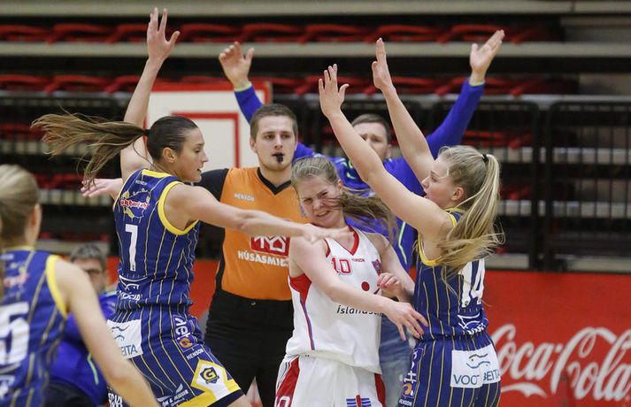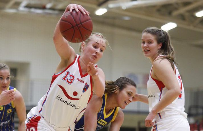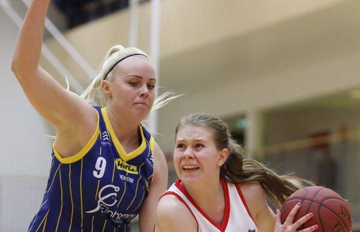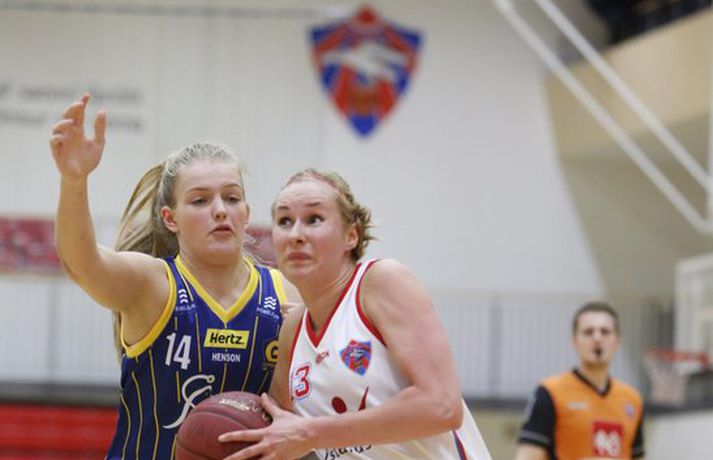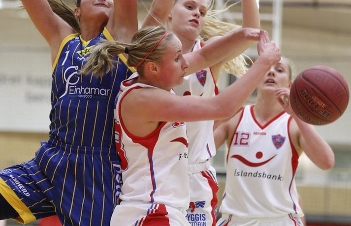 Grindavík tók fjórða sætið af Val - úrslit kvöldsins í kvennakörfunni Óskar Ófeigur Jónsson skrifar 17. desember 2014 21:04 Grindavík verður í fjórða sæti Dominos-deildar kvenna í körfubolta yfir jólin eftir sex stiga sigur á Val, 77-71, í framlengdum leik liðanna í Vodafone-höllinni í kvöld.Valgarður Gíslason, ljósmyndari Vísis og Fréttablaðsins, var á leiknum í kvöld og náði þessum myndum hér fyrir ofan. Grindavík komst upp fyrir Val með þessum sigri og þar með upp í fjórða og síðasta sætið sem hefur sæti í úrslitakeppninni. Grindavíkurliðið byrjaði tímabilið ekki vel en er búið að vinna flotta sigra á Keflavík og Val í lokaleikjum sínum á árinu 2014. Valskonur léku í kvöld bæði án bandarísks leikmanns og leikstjórnanda síns Guðbjargar Sverrisdóttur en voru engu að síður mjög nálægt því að landa sigri. Pálína Gunnlaugsdóttir skoraði 22 stig og tók 10 fráköst fyrir Grindavík og Petrúnella Skúladóttir skoraði 15 stig (öll með þriggja stiga skotum í seinni hálfleik). María Ben Erlingsdóttir og Rachel Tecca voru með 13 stig. Ragnheiður Benónísdóttir var með 21 stig og 13 fráköst fyrir Val og Ragna Margrét Brynjarsdóttir bætti við 16 stigum og 11 fráköstum. Kristrún Sigurjónsdóttir var með 9 stig, 6 fráköst og 6 stoðsendingar. Valsliðið var einu stigi yfir í hálfleik, 32-31, sex stigum yfir fyrir lokaleikhlutann, 51-45, og með fimm stiga forskot, 57-52, þegar tæpar þrjár mínútur voru eftir. Grindavíkurliðinu tókst að jafna metin og komast yfir áður en Fanney Lind Guðmundsdóttir tryggði Valsliðinu framlengingu. Grindavíkurliðið var sterkari í framlengingunni og vann hana 14-8.Öll úrslit og stig leikmanna í leikjum kvöldsins í Dominos-deild kvenna:KR-Haukar 58-72 (12-14, 18-21, 15-16, 13-21)KR: Simone Jaqueline Holmes 14/4 fráköst/3 varin skot, Bergþóra Holton Tómasdóttir 9/5 fráköst, Björg Guðrún Einarsdóttir 9, Helga Einarsdóttir 7/11 fráköst, Þorbjörg Andrea Friðriksdóttir 6/5 fráköst, Anna María Ævarsdóttir 6, Sara Mjöll Magnúsdóttir 3, Sólrún Sæmundsdóttir 2, Þórkatla Dagný Þórarinsdóttir 2.Haukar: LeLe Hardy 34/25 fráköst, Sylvía Rún Hálfdanardóttir 11/8 fráköst, María Lind Sigurðardóttir 8/4 fráköst, Sólrún Inga Gísladóttir 8, Dagbjört Samúelsdóttir 4, Þóra Kristín Jónsdóttir 3, Inga Rún Svansdóttir 2, Auður Íris Ólafsdóttir 2/7 fráköst.Snæfell-Breiðablik 79-45 (21-8, 23-15, 15-12, 20-10)Snæfell: Kristen Denise McCarthy 22/9 fráköst/6 stolnir, Gunnhildur Gunnarsdóttir 14, María Björnsdóttir 12, Hildur Sigurðardóttir 10/8 fráköst, Rebekka Rán Karlsdóttir 8, Berglind Gunnarsdóttir 5/12 fráköst/5 stoðsendingar/6 stolnir, Alda Leif Jónsdóttir 4, Hugrún Eva Valdimarsdóttir 2/5 fráköst, Helga Hjördís Björgvinsdóttir 2/7 fráköst.Breiðablik: Arielle Wideman 11/8 fráköst, Elín Sóley Hrafnkelsdóttir 10/9 fráköst, Aníta Rún Árnadóttir 8, Ingunn Erla Kristjánsdóttir 7, Berglind Karen Ingvarsdóttir 5, Jóhanna Björk Sveinsdóttir 2/5 fráköst, Isabella Ósk Sigurðardóttir 2. Keflavík-Hamar 114-46 (32-14, 26-8, 27-14, 29-10)Keflavík: Carmen Tyson-Thomas 36/11 fráköst/8 stoðsendingar/7 stolnir, Sara Rún Hinriksdóttir 21/4 fráköst, Sandra Lind Þrastardóttir 12/6 fráköst, Marín Laufey Davíðsdóttir 10/14 fráköst, Lovísa Falsdóttir 9, Thelma Dís Ágústsdóttir 7/7 fráköst, Birna Ingibjörg Valgarðsdóttir 7/6 fráköst, Hallveig Jónsdóttir 5, Bríet Sif Hinriksdóttir 5, Emelía Ósk Gunnarsdóttir 2.Hamar: Sydnei Moss 20/10 fráköst, Katrín Eik Össurardóttir 9, Þórunn Bjarnadóttir 8/4 fráköst, Salbjörg Ragna Sævarsdóttir 5/7 fráköst/3 varin skot, Heiða B. Valdimarsdóttir 2/4 fráköst, Sóley Guðgeirsdóttir 2/5 fráköst. Valur-Grindavík 71-77 (19-21, 13-10, 19-14, 12-18, 8-14)Valur: Ragnheiður Benónísdóttir 21/13 fráköst, Ragna Margrét Brynjarsdóttir 16/11 fráköst, Kristrún Sigurjónsdóttir 9/6 fráköst/6 stoðsendingar, Fanney Lind Guðmundsdóttir 8/7 fráköst, Sóllilja Bjarnadóttir 8, Margrét Ósk Einarsdóttir 5, Elsa Rún Karlsdóttir 2, Sara Diljá Sigurðardóttir 2..Grindavík: Pálína Gunnlaugsdóttir 22/10 fráköst, Petrúnella Skúladóttir 15, Rachel Tecca 13/11 fráköst, María Ben Erlingsdóttir 13/6 fráköst, Jeanne Lois Figeroa Sicat 7, Guðlaug Björt Júlíusdóttir 5/4 fráköst, Lilja Ósk Sigmarsdóttir 2/4 fráköst.Ragnheiður Benónísdóttir og Rachel Tecca í baráttu um boltann í kvöld.Vísir/Valli Dominos-deild kvenna Tengdar fréttir Keflavíkurkonur skoruðu 114 stig í kvöld Kvennalið Keflavík vann 68 stiga sigur á Hamar, 114-46, í Keflavík í kvöld í lokaumferð Dominos-deildar kvenna í körfubolta fyrir jól. 17. desember 2014 20:45 Snæfellskonur á tíu leikja sigurgöngu inn í jólafríið Kvennalið Snæfells verður með fjögurra stiga forskot á toppi Dominos-deildar kvenna í körfubolta yfir hátíðirnar eftir 34 stiga sigur á botnliði Breiðabliks, 79-45, í Stykkishólmi í kvöld. 17. desember 2014 20:37 Mest lesið Líður alltaf yfir hana þegar hún kemur í mark Sport Einkunnir Íslands: Þrjár heitastar í frostinu Fótbolti „Hefði séð eftir því alla ævi“ Íslenski boltinn Magnús Már í viðræðum við HK Íslenski boltinn Vísar slúðrinu til föðurhúsanna Enski boltinn Albert og Mikael Egill í vondum málum á Ítalíu Fótbolti Rekinn fyrir ummæli sín um krabbameinssjúka handboltagoðsögn Handbolti „Við tókum bara þá ákvörðun að fara í Svanavatnið“ Fótbolti Ísak Bergmann lagði upp gegn Bayern Fótbolti Dagskráin í dag: Íslenskur körfubolti og margt fleira Sport Fleiri fréttir Uppgjörið: Njarðvík - Grindavík 85-84| Njarðvík fyrstar til að leggja Grindavík af velli Ótrúleg dramatík í Garðabæ og á Sauðárkróki Landsliðsmennirnir öfl