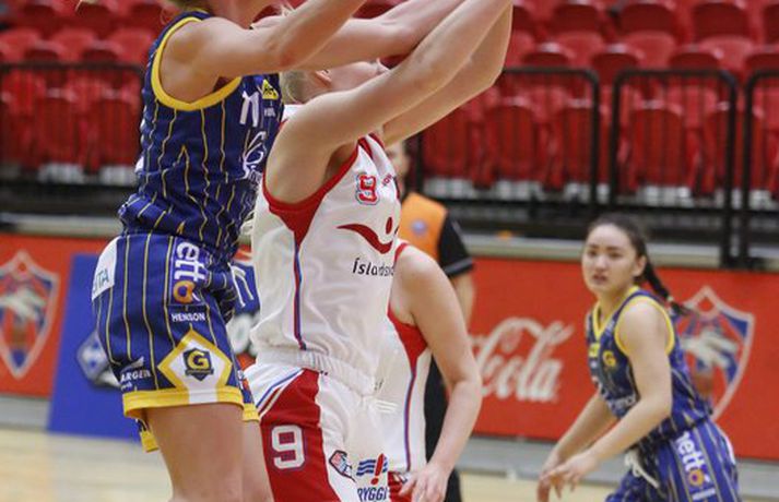 Grindavík verður í fjórða sæti Dominos-deildar kvenna í körfubolta yfir jólin eftir sex stiga sigur á Val, 77-71, í framlengdum leik liðanna í Vodafone-höllinni í kvöld.Valgarður Gíslason, ljósmyndari Vísis og Fréttablaðsins, var á leiknum í kvöld og náði þessum myndum hér fyrir ofan. Grindavík komst upp fyrir Val með þessum sigri og þar með upp í fjórða og síðasta sætið sem hefur sæti í úrslitakeppninni. Grindavíkurliðið byrjaði tímabilið ekki vel en er búið að vinna flotta sigra á Keflavík og Val í lokaleikjum sínum á árinu 2014. Valskonur léku í kvöld bæði án bandarísks leikmanns og leikstjórnanda síns Guðbjargar Sverrisdóttur en voru engu að síður mjög nálægt því að landa sigri. Pálína Gunnlaugsdóttir skoraði 22 stig og tók 10 fráköst fyrir Grindavík og Petrúnella Skúladóttir skoraði 15 stig (öll með þriggja stiga skotum í seinni hálfleik). María Ben Erlingsdóttir og Rachel Tecca voru með 13 stig. Ragnheiður Benónísdóttir var með 21 stig og 13 fráköst fyrir Val og Ragna Margrét Brynjarsdóttir bætti við 16 stigum og 11 fráköstum. Kristrún Sigurjónsdóttir var með 9 stig, 6 fráköst og 6 stoðsendingar. Valsliðið var einu stigi yfir í hálfleik, 32-31, sex stigum yfir fyrir lokaleikhlutann, 51-45, og með fimm stiga forskot, 57-52, þegar tæpar þrjár mínútur voru eftir. Grindavíkurliðinu tókst að jafna metin og komast yfir áður en Fanney Lind Guðmundsdóttir tryggði Valsliðinu framlengingu. Grindavíkurliðið var sterkari í framlengingunni og vann hana 14-8.Öll úrslit og stig leikmanna í leikjum kvöldsins í Dominos-deild kvenna:KR-Haukar 58-72 (12-14, 18-21, 15-16, 13-21)KR: Simone Jaqueline Holmes 14/4 fráköst/3 varin skot, Bergþóra Holton Tómasdóttir 9/5 fráköst, Björg Guðrún Einarsdóttir 9, Helga Einarsdóttir 7/11 fráköst, Þorbjörg Andrea Friðriksdóttir 6/5 fráköst, Anna María Ævarsdóttir 6, Sara Mjöll Magnúsdóttir 3, Sólrún Sæmundsdóttir 2, Þórkatla Dagný Þórarinsdóttir 2.Haukar: LeLe Hardy 34/25 fráköst, Sylvía Rún Hálfdanardóttir 11/8 fráköst, María Lind Sigurðardóttir 8/4 fráköst, Sólrún Inga Gísladóttir 8, Dagbjört Samúelsdóttir 4, Þóra Kristín Jónsdóttir 3, Inga Rún Svansdóttir 2, Auður Íris Ólafsdóttir 2/7 fráköst.Snæfell-Breiðablik 79-45 (21-8, 23-15, 15-12, 20-10)Snæfell: Kristen Denise McCarthy 22/9 fráköst/6 stolnir, Gunnhildur Gunnarsdóttir 14, María Björnsdóttir 12, Hildur Sigurðardóttir 10/8 fráköst, Rebekka Rán Karlsdóttir 8, Berglind Gunnarsdóttir 5/12 fráköst/5 stoðsendingar/6 stolnir, Alda Leif Jónsdóttir 4, Hugrún Eva Valdimarsdóttir 2/5 fráköst, Helga Hjördís Björgvinsdóttir 2/7 fráköst.Breiðablik: Arielle Wideman 11/8 fráköst, Elín Sóley Hrafnkelsdóttir 10/9 fráköst, Aníta Rún Árnadóttir 8, Ingunn Erla Kristjánsdóttir 7, Berglind Karen Ingvarsdóttir 5, Jóhanna Björk Sveinsdóttir 2/5 fráköst, Isabella Ósk Sigurðardóttir 2. Keflavík-Hamar 114-46 (32-14, 26-8, 27-14, 29-10)Keflavík: Carmen Tyson-Thomas 36/11 fráköst/8 stoðsendingar/7 stolnir, Sara Rún Hinriksdóttir 21/4 fráköst, Sandra Lind Þrastardóttir 12/6 fráköst, Marín Laufey Davíðsdóttir 10/14 fráköst, Lovísa Falsdóttir 9, Thelma Dís Ágústsdóttir 7/7 fráköst, Birna Ingibjörg Valgarðsdóttir 7/6 fráköst, Hallveig Jónsdóttir 5, Bríet Sif Hinriksdóttir 5, Emelía Ósk Gunnarsdóttir 2.Hamar: Sydnei Moss 20/10 fráköst, Katrín Eik Össurardóttir 9, Þórunn Bjarnadóttir 8/4 fráköst, Salbjörg Ragna Sævarsdóttir 5/7 fráköst/3 varin skot, Heiða B. Valdimarsdóttir 2/4 fráköst, Sóley Guðgeirsdóttir 2/5 fráköst. Valur-Grindavík 71-77 (19-21, 13-10, 19-14, 12-18, 8-14)Valur: Ragnheiður Benónísdóttir 21/13 fráköst, Ragna Margrét Brynjarsdóttir 16/11 fráköst, Kristrún Sigurjónsdóttir 9/6 fráköst/6 stoðsendingar, Fanney Lind Guðmundsdóttir 8/7 fráköst, Sóllilja Bjarnadóttir 8, Margrét Ósk Einarsdóttir 5, Elsa Rún Karlsdóttir 2, Sara Diljá Sigurðardóttir 2..Grindavík: Pálína Gunnlaugsdóttir 22/10 fráköst, Petrúnella Skúladóttir 15, Rachel Tecca 13/11 fráköst, María Ben Erlingsdóttir 13/6 fráköst, Jeanne Lois Figeroa Sicat 7, Guðlaug Björt Júlíusdóttir 5/4 fráköst, Lilja Ósk Sigmarsdóttir 2/4 fráköst.Ragnheiður Benónísdóttir og Rachel Tecca í baráttu um boltann í kvöld.Vísir/Valli