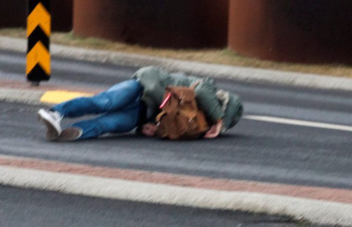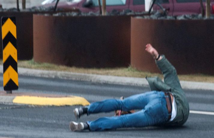 See how the heavy wind in Reykjavik affected pedestrians By Kolbeinn Tumi Daðason 10. desember 2014 13:56 Iceland has been hammered by a storm which got a few people into trouble on their walk in Reykjavik this morning. A group of four people was walking by Höfðatorg, a 19 floor skyscraper located centrally in Reykjavik. As can be seen in the video above the heavy wind surrounding the tall building made their walk quite difficult. Four people on foot by Höfðatorg are having trouble standing upright due to the wind. They all fall to the ground and one of them seems to be blown all the way down the ramp leading to the parking garage. The Reykjavík police warned people of strong winds in certain areas of the city, especially near Höfðatorg. The strong gusts of winds are said to be extremely dangerous for pedestrians and cyclists. The police advises people against being in the area today. Very bad weather is now in the north and west parts with Increasing wind in the south later today. Increasing wind and precipitation is expected in the east by evening, but decreasing wind and precipitation in the west.Same building, different day This is not the first time pedestrians have had trouble standing upright by Höfðatorg. Winds get heavy indeed around the building. Pictures from two years ago can be seen below. The video above is taken from inside the 19 floor skyscraper at Höfðatorg. Interestingly enough it was in the same parking garage where an unbelievable "car flip" took place three and a half years ago. A video from the security camera was released in October and can be seen below.More on the car flip here. Heavy winds around the Höfðatorg building have been common problems the past few years. Two years ago Anton Brink, photographer of Frettabladid and Visir, witnessed a man in some serious trouble due to the heavy wind. His photos can be seen below. The photographer in turn lent the pedestrian a helping hand. News in English Mest lesið Ástæða fyrir því að genaumræðan hafi ekki náð mikilli útbreiðslu Innlent Veðurvaktin: Biðja fólk að halda sig heima í kvöld Veður Hálka á höfuðborgarsvæðinu og Hellisheiði Innlent Hlýni á föstudag og snjórinn geti horfið í næstu viku Veður Karlmaður lést í Bláa lóninu Innlent Ráðgjafinn ráðinn tveimur dögum eftir að grennslast var fyrir um málið Innlent Færeyingar marka leið fyrir risastór neðansjávargöng Erlent Stærsti fellibylur í sögu Jamaíka Erlent „Alvöru“ jólasveinn gisti á Hótel Rangá Innlent Biðu í fjóra tíma úti á braut og aðra fjóra við farangursbeltin Innlent