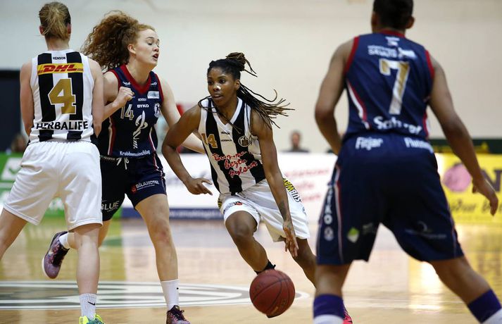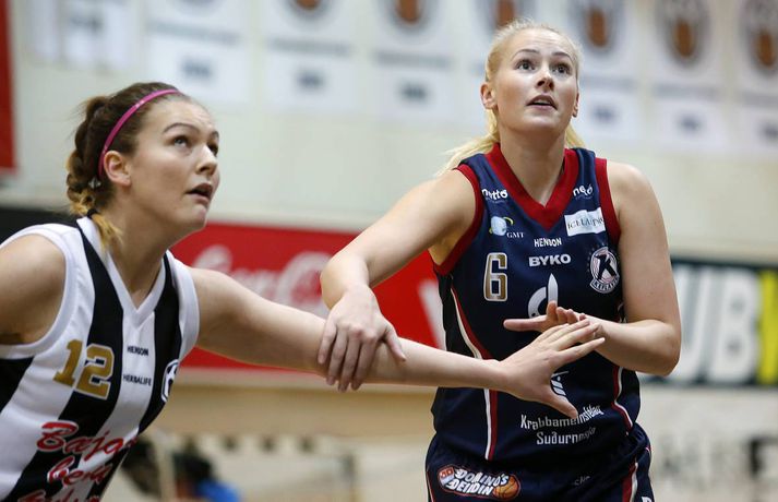 Grindavík upp að hlið Hauka - öll úrslitin og tölfræðin Tómas Þór Þórðarson skrifar 21. janúar 2015 20:53 Carmen Tyson-Thomas átti flottan leik fyrir Keflavík. vísir/stefán Keflavík átti í engum vandræðum með að leggja KR að velli í Dominos-deild kvenna í körfubolta í kvöld, en Keflavík vann 26 stiga sigur, 76-50, eftir að vera 44-28 yfir í hálfleik. Carmen Tyson-Thomas var stigahæst í liði gestanna með 16 stig auk þess sem hún tók 15 fráköst og glímudrottningin Marín Laufey Davíðsdóttir bætti við 15 stigum. Hjá heimakonum skoraði Simone Jaqueline mest eða 16 stig en Bergþóra Holton skoraði tíu stig og tók 5 fráköst. Keflavík áfram í öðru sætinu með 30 stig en KR í sjötta sæti með sex stig. Íslandsmeistarar Snæfells tróna áfram á toppnum með 32 stig, en þeir unnu tólf stiga sigur á Val í Vodafone-höllinni í kvöld, 72-60. Þar var Kristen McCarthy með tröllatvennu fyrir gestina, en hún skóraði 21 stig og tók 20 fráköst. Helga Hjördís Björgvinsdóttir skoraði 11 stig og tók 7 fráköst. Taleya Mayberry kemur ágætlega inn í Valsliðið, en hún hefur farið vel af stað og skoraði 25 stig og tók fimm fráköst fyrir heimakonur. Ragna Margrét Einarsdóttir skoraði níu stig og tók 15 fráköst. Valskonur áfram í fimmta sætinu með 18 stig. Í botnslagnum vann Hamar mikilvægan sigur á Breiðabliki, 66-43, og komst með sigrinum upp að hlið KR með sex stig. Blikar eru rótfastir við botninn með tvö stig. Sidney Moss var stigahæst í liði Hamars með 24 stig og Salbjörg Ragna Sævarsdóttir bætti við öðrum 20 stigum. Hjá heimakonum voru Arielle Wideman og Berglind Karen Ingvarsdóttir báðar með tólf stig. Grindavík vann svo sterkan útisigur á Haukum, 60-53, og komst með sigrinum upp að hlið liðsins í 3.-4. sæti deildarinnar, en bæði lið eru með 22 stig eftir 17 umferðir. Kristina King skoraði 17 stig fyrir Grindavík og Petrúnella Skúladóttir 14 stig, en í liði Hauka var LeLe Hardy með tvennu upp á 11 stig og 13 fráköst.Öll úrslit og tölfræði kvöldsins:KR-Keflavík 50-76 (20-16, 8-28, 11-14, 11-18)KR: Simone Jaqueline Holmes 16/6 fráköst/3 varin skot, Bergþóra Holton Tómasdóttir 10/5 fráköst, Björg Guðrún Einarsdóttir 7/4 fráköst, Sólrún Sæmundsdóttir 6/4 fráköst, Helga Einarsdóttir 6/7 fráköst, Sara Mjöll Magnúsdóttir 3/4 fráköst, Anna María Ævarsdóttir 2.Keflavík: Carmen Tyson-Thomas 16/14 fráköst, Marín Laufey Davíðsdóttir 15/4 fráköst, Hallveig Jónsdóttir 13, Sara Rún Hinriksdóttir 11/4 fráköst, Bríet Sif Hinriksdóttir 6, Birna Ingibjörg Valgarðsdóttir 5/5 fráköst, Thelma Dís Ágústsdóttir 4/4 fráköst, Bryndís Guðmundsdóttir 2/10 fráköst, Sandra Lind Þrastardóttir 2/5 fráköst, Elfa Falsdottir 2.Haukar-Grindavík 53-60 (11-15, 20-14, 11-15, 11-16)Haukar: LeLe Hardy 11/13 fráköst, Þóra Kristín Jónsdóttir 10, María Lind Sigurðardóttir 8/7 fráköst, Dagbjört Samúelsdóttir 6, Sylvía Rún Hálfdanardóttir 6/11 fráköst, Auður Íris Ólafsdóttir 4/6 fráköst, Sólrún Inga Gísladóttir 3, Inga Rún Svansdóttir 3, Guðrún Ósk Ámundadóttir 2.Grindavík: Kristina King 17/6 fráköst, Petrúnella Skúladóttir 14/8 fráköst, María Ben Erlingsdóttir 10/10 fráköst, Ingibjörg Jakobsdóttir 8, Lilja Ósk Sigmarsdóttir 4/4 fráköst, Guðlaug Björt Júlíusdóttir 4, Pálína Gunnlaugsdóttir 3/5 fráköst.Breiðablik-Hamar 43-66 (12-12, 13-23, 9-17, 9-14)Breiðablik: Arielle Wideman 12/12 fráköst, Berglind Karen Ingvarsdóttir 12, Elín Sóley Hrafnkelsdóttir 9/4 fráköst, Jóhanna Björk Sveinsdóttir 6/11 fráköst, Isabella Ósk Sigurðardóttir 2/4 fráköst, Guðrún Edda Bjarnadóttir 1, Kristbjörg Pálsdóttir 1.Hamar: Sydnei Moss 24/6 fráköst/5 stoðsendingar, Salbjörg Ragna Sævarsdóttir 20/11 fráköst/4 varin skot, Heiða B. Valdimarsdóttir 12/4 fráköst, Þórunn Bjarnadóttir 7/5 fráköst/5 stoðsendingar, Sóley Guðgeirsdóttir 3/6 fráköst.Valur-Snæfell 60-72 (16-20, 13-15, 12-21, 19-16)Valur: Taleya Mayberry 25/5 fráköst, Fanney Lind Guðmundsdóttir 11/4 fráköst, Ragna Margrét Brynjarsdóttir 9/15 fráköst/3 varin skot, Guðbjörg Sverrisdóttir 7/8 fráköst, Kristrún Sigurjónsdóttir 6/5 fráköst, Sóllilja Bjarnadóttir 2.Snæfell: Kristen Denise McCarthy 21/20 fráköst, Gunnhildur Gunnarsdóttir 13/5 stoðsendingar/5 stolnir/4 varin skot, Helga Hjördís Björgvinsdóttir 11/7 fráköst, Berglind Gunnarsdóttir 9/8 fráköst/5 stoðsendingar, Hildur Sigurðardóttir 8/12 fráköst/6 stoðsendingar, Alda Leif Jónsdóttir 4/3 varin skot, María Björnsdóttir 4, Hugrún Eva Valdimarsdóttir 2. Dominos-deild kvenna Mest lesið Líður alltaf yfir hana þegar hún kemur í mark Sport Einkunnir Íslands: Þrjár heitastar í frostinu Fótbolti Magnús Már í viðræðum við HK Íslenski boltinn Vísar slúðrinu til föðurhúsanna Enski boltinn „Hefði séð eftir því alla ævi“ Íslenski boltinn Albert og Mikael Egill í vondum málum á Ítalíu Fótbolti „Við tókum bara þá ákvörðun að fara í Svanavatnið“ Fótbolti Rekinn fyrir ummæli sín um krabbameinssjúka handboltagoðsögn Handbolti Ísak Bergmann lagði upp gegn Bayern Fótbolti Dagskráin í dag: Íslenskur körfubolti og margt fleira Sport Fleiri fréttir Uppgjörið: Njarðvík - Grindavík 85-84| Njarðvík fyrstar til að leggja Grindavík af velli Ótrúleg dramatík í Garðabæ og á Sauðárkróki Landsliðsmennirnir öflugir í Evrópu Jordan gagnrýnir álagsstjórnun í NBA: Þú hefur skyldu til að láta sjá þig Skiptiborð hjá stelpunum í kvöld Var með skattinn á hælunum þegar hann fór í veðmálabraskið Bíll Shaquille O'Neal enn ófundinn Martin öflugur í góðum sigri Öllum leikjum Bónus-deildar kvenna í kvöld frestað Stólarnir ekki í vandræðum á Egilsstöðum Enginn Lakers-maður haf