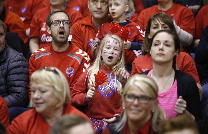 ÍBV vann Hauka, 23-21, í seinni undanúrslitaleiknum í Coca-Cola bikar karla í handbolta í kvöld. Eyjamenn mæta FH-ingum í úrslitaleiknum á morgun en þetta er aðeins í annað sinn í sögu félagsins sem ÍBV kemst í bikarúrslitaleikinn. Í síðustu ferð sinni þangað, fyrir 24 árum, unnu þeir Víkinga, 26-22, og ef Eyjamenn ná upp sömu spilamennsku og á lokakafla leiksins í kvöld eiga þeir góða möguleika á að bæta öðrum bikar í safnið. Haukarnir voru sterkari aðilinn í fyrri hálfleik þar sem Janus Daði Smárason og Giedrius Morkunas fóru fyrir liði Hafnfirðinga. Janus skoraði fimm mörk í fyrri hálfleik og átti auk þess nokkrar fallegar línusendingar sem skiluðu marki. Á hinum helmingi vallarins var Giedrius öflugur en Litháinn varði alls 11 skot í fyrri hálfleik, eða 52% þeirra skota sem hann fékk á sig. Eyjamenn voru fyrri til að skora í upphafi leiks en smám saman náðu Haukarnir undirtökunum. Þeir stoppuðu í götin í vörninni og voru duglegir að keyra fram völlinn við hvert tækifæri. Í stöðunni 6-7 varð umdeilt atvik þegar Grétari Þór Eyþórssyni, vinstri hornamanni Eyjamanna, var vikið af velli fyrir að skjóta boltanum í höfuð Giedriusar úr vítakasti. Ungur strákur, Hákon Daði Styrmisson, kom inn í hornið í stað Grétars og stóð heldur betur fyrir sínu. Hákon misnotaði fyrstu tvö skotin sín en sýndi styrk og skoraði fjögur mörk úr næstu fimm skotum sínum. Hann stal boltanum auk þess í þrígang. Haukarnir komust þremur mörkum yfir, 7-10, þegar Heimir Óli Heimisson skoraði sitt fyrsta og eina mark í leiknum. Eyjamenn svöruðu með tveimur mörkum en Hafnfirðingar áttu góðan endasprett í fyrri hálfleik. Þeir skoruðu fjögur mörk gegn einu Eyjamanna á síðustu fimm mínútum fyrri hálfleiks og fóru með fjögurra marka forystu, 10-14, til búningsherbergja. Liðin fóru rólega af stað í seinni hálfleik þar sem varnarleikurinn var í fyrirrúmi. Það hentaði Haukum betur, verandi með forystuna. Sóknarleikur ÍBV var hugmyndasnauður og Giedrius reyndist Eyjamönnum áfram erfiður. Haukar náðu mest sex marka forystu, 12-18, en þá loksins komu Eyjamenn með áhlaup, skoruðu níu mörk í röð - þar af fimm eftir hraðaupphlaup - og komust þremur mörkum yfir, 21-18. Sóknarleikur Hauka var steingeldur á þessum kafla en Hafnfirðingar skoruðu ekki í 13 mínútur. Lykilmenn á borð við Tjörva Þorgeirsson og Árna Stein Steinþórsson náðu sér engan veginn á strik og þá gekk Haukum illa að finna sína sterku línumenn. Haukarnir áttu engin svör við frábærum leik Eyjamanna sem spiluðu stórkostlega í seinni hálfleik; vörnin var sterk, Kolbeinn Aron Arnarson varði nokkur skot og sóknin gekk glimrandi vel. Eyjamenn spiluðu af yfirvegun á lokakaflanum og sigldu tveggja marka sigri heim, 23-21. Agnar Smári Jónsson var markahæstur í liði ÍBV með sex mörk en Theodór Sigurbjörnsson og Hákon komu næstir með fjögur mörk hvor. Janus Daði skoraði átta mörk fyrir Hauka sem féllu einfaldlega saman á lokakafla leiksins. Giedrius gerði það sem hann gat og varði 20 skot í Haukamarkinu.Theodór: Alltaf dreymt um að spila hér Theodór Sigurbjörnsson, hornamaður ÍBV, var í sigurvímu þegar Vísir hitti hann að máli eftir sigurinn ótrúlega á Haukum í undanúrslitum Coca-Cola bikarsins. "Það gerist ekki sætara en þetta. Við erum loksins komnir í Höllina og það er ekki leiðinlegt að fá annan leik á morgun. "Ég hafði bara verið hér sem áhorfandi og alltaf dreymt um að koma hingað og spila. "Þetta er ótrúlega skemmtilegt og frábært að spila fyrir framan þessa áhorfendur," sagði Theodór en hvað gerðist eiginlega á síðustu 17 mínútum leiksins þegar Eyjamenn breyttu stöðunni úr 12-18 í 23-21? "Það er þannig með okkur Eyjamenn að við gefumst aldrei upp, sama hvernig staðan er. Við gefumst aldrei, höfum aldrei gert og munum aldrei gera það. "Vörnin small á þessum kafla og við fengum hraðaupphlaup, það var lykilinn að sigrinum," sagði Theodór en hvað fannst honum um rauða spjaldið sem samherji hans, Grétar Þór Eyþórsson, fékk í fyrri hálfleik fyrir að skjóta boltanum í höfuð Giedriusar Morkunas, markvarðar Hauka? "Ég veit það ekki, mér fannst þetta ekki vera rautt. Mér fannst hann hreyfa hausinn með skothöndinni. En dómararnir mátu það sem svo að þetta væri rautt," sagði Theodór og bætti því við að rauða spjaldið hefði sett Eyjamenn aðeins út af laginu. ÍBV mætir FH í úrslitaleiknum á morgun en Hafnfirðingar fóru áfram eftir tvíframlengdann undanúrslitaleik fyrr í dag. "Þeir verða kannski þreyttir en fá reyndar auka klukkutíma til að undirbúa sig, þannig að þetta kemur út á eitt," sagði Theodór að lokum.Hákon Daði: Bjóst kannski við að fá nokkrar mínútur í lokin Hákon Daði Styrmisson var ein af hetjum ÍBV þegar liðið tryggði sér sæti í úrslitaleik Coca-Cola bikarsins með ótrúlegum sigri á Haukum í kvöld. Hákon kom inn á í vinstra hornið um miðjan fyrri hálfleik eftir að Grétar Þór Eyþórsson fékk að líta rauða spjaldið. Hann segist ekki hafa átt von á því að spila svona mikið í kvöld. "Nei, alls ekki. Ég bjóst kannski við að fá nokkrar mínútur í lokin ef þetta hefði verið öruggt," sagði Hákon en hvernig var að koma inn í þennan leik? "Það er ekki erfitt að koma inn í svona lið. Það standa allir saman, ef þú klikkar færðu klapp á bakið og svona. "Ég klikkaði á fyrstu tveimur færunum en síðan kom þetta. Það var enginn að pæla í því, það er bara næsta færi," sagði Hákon sem skoraði fjögur mörk í kvöld. Hálfbróðir Hákons, Andri Heimir Friðriksson, leikur einnig með Eyjaliðinu og Hákon segir gott að spila með honum. "Ég bjóst aldrei við að ég myndi gera það 