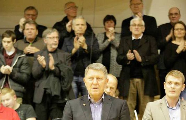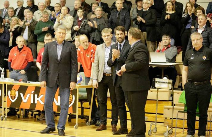 Víkingar sæmdu Bogdan æðsta heiðursmerki Víkings | Myndir Óskar Ófeigur Jónsson skrifar 21. apríl 2015 17:55 Meira en þúsund manns klappa hér fyrir klökkum Bogdan Kowalczyk. Mynd/Fésbókarsíða Víkinga Það var mögnuð stemming í Víkinni í gærkvöldi þegar karlalið Víkings steig einu skrefi nær því að komast aftur upp í úrvalsdeild karla með sigri á Fjölni í fyrsta leik liðanna í úrslitaeinvígi umspilsins um hvort liðið spilar meðal þeirra bestu á næsta keppnistímabili. Víkin var troðfull á leiknum í gær en rúmlega þúsund áhorfendur fylltu húsið og þarna var líklega sett nýtt áhorfendamet í Víkinni samkvæmt umfjöllun á fésbókarsíðu handknattleiksdeildar félagsins. Bogdan Kowalczyk, fyrrum þjálfari Víkinga, var heiðursgestur á leiknum og heilsaði upp á leikmenn fyrir leikinn. Bogdan gerði Víkingsliðið fjórum sinnum að Íslandsmeisturum og tvisvar sinnum að bikarmeisturum á fimm tímabilum sínum með liðið frá 1978 til 1983. Víkingar sæmdu Bogdan æðsta heiðursmerki Víkings á sérstakri samkomu fyrir leikinn þar sem margir þekktir kappar Víkings voru saman komnir. Það var magnað augnablik þegar yfir þúsund áhorfendur stóðu á fætur og hylltu Bogdan áður en leikurinn hófst. Bogdan Kowalczyk breytti miklu fyrir Víkinga á sínum tíma en undir hans stjórn varð félagið að stórveldi í handboltanum. Bogdan tók við íslenska landsliðinu eftir að hann þjálfaði Víkings. Bogdan Kowalczyk var staddur hér á landi til að fá sérstök heiðursverðlaun í tilefni af vali á besta handboltaliði sögunnar en Víkingslið hans frá 1980 var valið besta lið allra tíma. Hér fyrir neðan má sjá glæsilega umfjöllun Víkinga um leikinn á fésbókarsíðu sinni í gær sem og en þar er hægt að finna flotta myndir frá kvöldinu. Nokkrar þeirra má líka finna hér fyrir ofan.Það var mögnuð stemming í Víkinni í kvöld þegar Víkingur og Fjölnir mættust í fyrsta leik liðanna í úrslitakeppni um...Posted by Víkingur handbolti on 20. apríl 2015 Það er gaman að segja frá því að áhorfendamet var slegið í Víkinni í kvöld þegar 1070 áhorfendur ásamt Bogdani Kowalczyck heiðursgest mættu. Hérna sjáum við Jón Hjálmarsson skora flott mark úr horninu eftir laglega sókn.Posted by Víkingur handbolti on 20. apríl 2015 Íslenski handboltinn Mest lesið Vonast til að komast í Kórinn: „Menn hafa aldrei séð annað eins“ Fótbolti Fær þrjár milljónir á dag næstu sex árin fyrir að gera ekkert Sport Stöðufundur í Laugardal klukkan 10:30 Fótbolti Landsleiknum aflýst og framhaldið óljóst Fótbolti Enska úrvalsdeildin í jólaköttinn Enski boltinn Elsta konan til klára Járnkarlinn Sport Markvörður Inter banaði háöldruðum manni í hjólastól Sport Nýi íþróttastjóri Kjartans stal mörgæs og endaði í fangelsi í Singapúr Fótbolti Brendan Rodgers sagði starfinu sínu lausu eftir ásakanir Fótbolti Segir að Slot verði að taka tvo leikmenn út úr Liverpool-liðinu Enski boltinn Fleiri fréttir Landsleiknum aflýst og framhaldið óljóst Segir að Slot verði að taka tvo leikmenn út úr Liverpool-liðinu Vonast til að komast í Kórinn: „Menn hafa aldrei séð annað eins“ „Alltaf gaman að fá nýjar raddir inn“ Gleðifréttir fyrir Argentínumenn: Messi vill spila á HM Stöðufundur í Laugardal klukkan 10:30 Enska úrvalsdeildin í jólaköttinn Nýi íþróttastjóri Kjartans stal mörgæs og endaði í fangelsi í Singapúr Tyrkneska sambandið segir dómara hafa veðjað á þúsundir leikja Brendan Rodgers sagði starfinu sínu lausu eftir ásakanir Segir sitt fyrrum lið í krísu Fylltu í eyðurnar: Vanmetnasti leikmaður deildarinnar? Fyrirliði Real Madríd þarf að fara í aðgerð á hné Einkaviðtal við Carrick: „Hálfgerð tískubylgja sem einkennir fótboltann í dag“ Markaóður Stefán Ingi eftirsóttur Öllu búin skildi snjóspáin raungerast „Eitthvað sem við erum óvanar eftir Þjóðadeildina“ Heimir kynntur til leiks í Árbænum Danir heiðra Michael Laudrup De Bruyne verður lengi frá Túfa rekinn frá Val Fyrrum markmannsþjálfari Liverpool látinn Juventus rak þjálfarann eftir aðeins sjö mánuði „Mikilvægt fyrir hópinn að fá þessa sigurtilfinningu“ Besta liðið aðeins í sautjánda sæti í mörkum í opnum leik „Varnarleikurinn er bara stórslys“ Blaðamannafundur KSÍ: Þorsteinn og Glódís sátu fyrir svörum Guardiola: Of snemmt til að hafa áhyggjur af Arsenal Kennir Carvajal um lætin eftir El Clasico Setja fjórtán milljarða í kvennadeildina Sjá meira