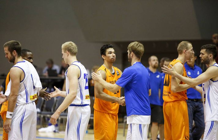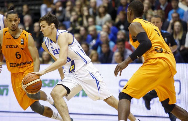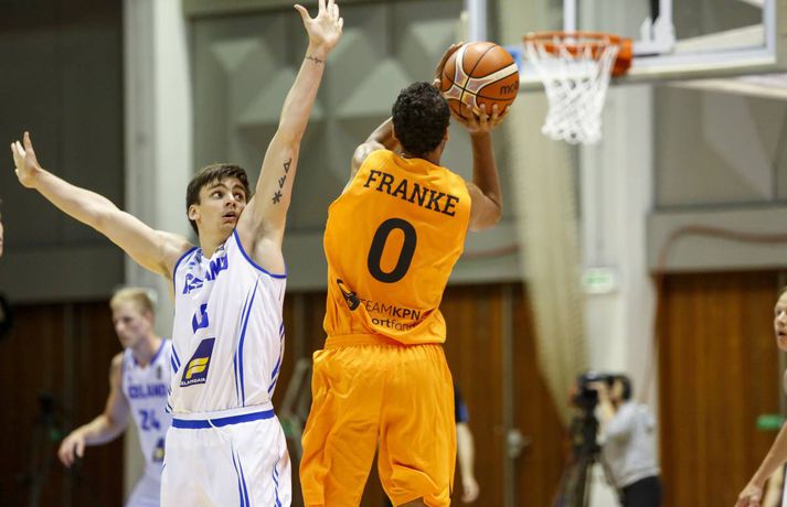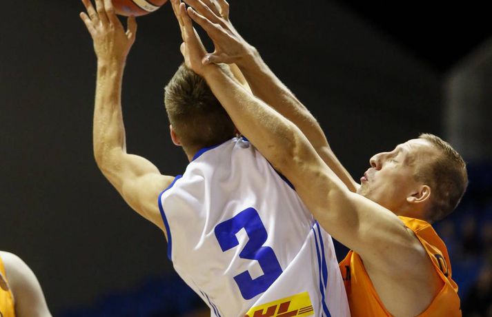 Holland bar sigur úr býtum, 73-65, gegn íslenska landsliðinu í körfubolta í vináttuleik í Laugardalshöllinni í dag. Þetta var í annað skipti sem liðin mætast á tveimur sólahringum og vann íslenska liðið fyrri leikinn með 25 stiga mun.Ernir Eyjólfsson, ljósmyndari Vísis og Fréttablaðsins, var á staðnum og tók þessar myndir sem sjá má með fréttinni. Kees Akerboom var stigahæstur í liði Hollands með 12 stig en stigaskorið dreifðist vel hjá liðinu. Hjá Íslendingum var það Jakob Örn Sigurðsson sem gerði 17 stig. Bæði lið voru vel ryðguð í upphafi leiks og voru íslensku strákarnir nokkuð lengi í gang. Varnarleikur liðsins var til að mynda ekki góður, algjörlega þvert á við fyrri hálfleikinn í Þorlákshöfn á föstudagskvöldið. Þegar leið á fjórðunginn komst íslenska liðið meira í takt við leikinn og var það mikið til vegna frammistöðu Jóns Arnórs Stefánssonar sem fór mikinn í byrjun leiks. Staðan var 20-16 eftir tíu mínútna leik. Íslenska liðið lék strax betur í öðrum leikhluta og var allt annað að sjá til liðsins. Jón Arnór hélt áfram að stjórna leik liðsins og Haukur Helgi kom einnig virkilega sterkur inn. Hollendingarnir voru samt sem áður sterkir og létu alls ekkert valta yfir sig. Íslensku strákarnir voru oft á tíðum í vandræðum varnarlega og fór Worthy de Jong stundum illa með okkar menn í fyrri hálfleiknum. Þegar flautað var til hálfleiks var staðan 41-33 og leikurinn galopinn. Íslenska liðið byrjaði síðari hálfleikinn virkilega vel og það leið ekki að löngu þar til liðið var komið með 14 stiga forystu, 49-35. Þá tóku Hollendingar upp á því að gera 10 stig í röð og minnkuðu muninn í fimm stig. Heldur betur leikhluti áhlaupanna en Kees Akerboom setti niður flautuþrist undir lok leikhlutans og var staðan 52-51 fyrir Íslendingum fyrir lokakaflann. Hollendingar byrjuðu fjórða leikhlutann mikið mun betur og gerði níu fyrstu stigin. Staðan var allt í einu orðin 60-52 fyrir þá appelsínugulu. Íslendingar hættu í raun þegar liðið var komið í 49-35 og 14 stigum yfir. Þá tók við 28-3 kafla Hollendingum í vil. Sá kafli fór gjörsamlega með leikinn og mikið andleysi var í íslenska liðinu í fjórða og síðasta leikhlutanum. Leiknum lauk með öruggum sigri Hollendinga 73-65 og þarf íslenska liðið að skoða nokkra hluti fyrir næsta verkefni. Hlynur: Það var eitthvað andleysi yfir liðinu„Við skoruðum nánast ekkert meira, það sem eftir lifði leiks,“ segir Hlynur Bæringsson um slæma kaflann þegar íslenska liðið var 49-35 og fékk á sig 28 stig á stuttum tíma, og gerði aðeins þrjú stig. „Ég veit ekki alveg hvað gerðist, persónulega fannst mér meiri orka vera í mér í dag en á föstudaginn. Síðan gerðist bara eitthvað í síðari hálfleiknum sem ég hef bara ekki hugmynd hvað var.“ Hlynur segir að ákveðið andleysi eða vonleysi hafi einkennt leik liðsins í fjórða leikhlutanum. „Við vorum alveg ennþá í séns, náðum þessu niður í sjö stig en mér fannst við ekki nýta það nægilega vel.“ Jakob: Það var í raun gott fyrir okkur að lenda í þessu„Það er alltaf ákveðin vonbrigði að tapa,“ segir Jakob Örn Sigurðsson, leikmaður íslenska landsliðsins, eftir leikinn. „Við ætluðum okkur að vinna leikinn og mér fannst þetta ganga vel framan af. Lokin á þriðja leikhlutanum og byrjun fjórða var mjög erfiður fyrir okkur. Við duttum niður sóknarlega og þetta var allt mjög hægt og styrt.“ Jakob segir að það hafi í raun verið gott fyrir liðið að lenda í þessari stöðu í kvöld. „Við þurfum núna að finna lausnir þegar svona gerist. Þetta gerist mjög oft í körfuboltaleikjum og sérstaklega hjá svona góðum liðum.“Tölfræði leiks:Ísland-Holland 65-73 (20-16, 21-17, 11-18, 13-22)Ísland: Jakob Örn Sigurðarson 17, Haukur Helgi Pálsson 13/4 fráköst, Jón Arnór Stefánsson 11, Martin Hermannsson 8, Hlynur Elías Bæringsson 5/12 fráköst/5 stoðsendingar, Logi Gunnarsson 5, Hörður Axel Vilhjálmsson 5, Pavel Ermolinskij 1/8 fráköst, Ragnar Ágúst Nathanaelsson 0, Helgi Már Magnússon 0, Sigurður Gunnar Þorsteinsson 0, Ægir Þór Steinarsson 0. Holland: Kees Akerboom 15/4 fráköst, Charlon Kloof 10, Roeland Schaftenaar 9/9 fráköst, Worthy de Jong 9, Mohamed Kherazzi 8/9 fráköst, Yannick Franke 6, Arvin Slagter 6, Leon Williams 5, Robin Smeulders 2/4 fráköst, Ralf de Pagter 2/4 fráköst, Sean Kingsley Cunningham 1, Nicolas de Jong 0.Dómarar: Sigmundur Már Herbertsson, Anthonie Sinterniklaas, Leifur S. Gardarsson[Bein lýsing] Leik lokið (65-73) Hollendingar taka þennan leik sanngjarnt. 39. mín (63-69) 27 sekúndur eftir og Hollendingar á línunni. Þessi leikur klárast þar. 39. mín (60-67) Þetta lítur ekki vel út fyrir íslenska liðið. Rúmlega ein mínúta eftir og sjö stiga munur. Þetta verður í það minnsta mjög erfitt. 37. mín (58-65) Jakob Örn með þriggja stiga körfu og lagar aðeins stöðuna. 35. mín (52-63) Það er ekkert að gera hjá íslenska liðinu og það hefur ekki skorað stig í fjórða leikhlutanum. Með ólíkindum. Frá því staðan var 49-35 fyrir Ísland hefur Holland skorað 28 stig og Ísland aðeins 3. 33. mín (52-60) Algjört hrun hjá íslenska liðinu og fara Hollendingar a kostum. Kees er að setja niður mikilvægar körfur. 31. mín (52-54) Hollendingar komnir yfir og fagna þeir gríðarlega á varamannabekknum. 3. leikhluta lokið (52-51) Svakalegur þristur undir lokin hjá Kees Akerboom og það munar aðeins einu stigi á liðinum. 28. mín (51-45) Loksins náðu íslensku strákarnir að setja boltann ofan í körfuna. Munar sex stigum á liðunum, það er ekki neitt. 26. mín (49-45) Þetta er svo fljótt að gerast í þessari íþrótt. 10-0 kafli hjá Hollendingum og þeir vinna síðan str