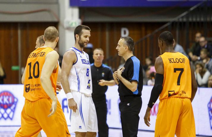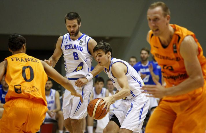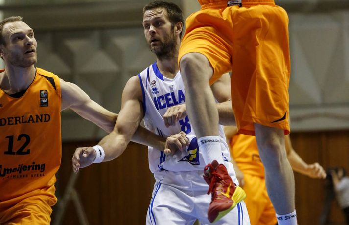 Umfjöllun, viðtöl og myndir: Ísland - Holland 65-73 | Tap í síðasta heimaleiknum fyrir EM Stefán Árni Pálsson í Laugardalshöllinni skrifar 9. ágúst 2015 15:15 Craig Pedersen messar yfir sínum mönnum. vísir/ernir Holland bar sigur úr býtum, 73-65, gegn íslenska landsliðinu í körfubolta í vináttuleik í Laugardalshöllinni í dag. Þetta var í annað skipti sem liðin mætast á tveimur sólahringum og vann íslenska liðið fyrri leikinn með 25 stiga mun.Ernir Eyjólfsson, ljósmyndari Vísis og Fréttablaðsins, var á staðnum og tók þessar myndir sem sjá má með fréttinni. Kees Akerboom var stigahæstur í liði Hollands með 12 stig en stigaskorið dreifðist vel hjá liðinu. Hjá Íslendingum var það Jakob Örn Sigurðsson sem gerði 17 stig. Bæði lið voru vel ryðguð í upphafi leiks og voru íslensku strákarnir nokkuð lengi í gang. Varnarleikur liðsins var til að mynda ekki góður, algjörlega þvert á við fyrri hálfleikinn í Þorlákshöfn á föstudagskvöldið. Þegar leið á fjórðunginn komst íslenska liðið meira í takt við leikinn og var það mikið til vegna frammistöðu Jóns Arnórs Stefánssonar sem fór mikinn í byrjun leiks. Staðan var 20-16 eftir tíu mínútna leik. Íslenska liðið lék strax betur í öðrum leikhluta og var allt annað að sjá til liðsins. Jón Arnór hélt áfram að stjórna leik liðsins og Haukur Helgi kom einnig virkilega sterkur inn. Hollendingarnir voru samt sem áður sterkir og létu alls ekkert valta yfir sig. Íslensku strákarnir voru oft á tíðum í vandræðum varnarlega og fór Worthy de Jong stundum illa með okkar menn í fyrri hálfleiknum. Þegar flautað var til hálfleiks var staðan 41-33 og leikurinn galopinn. Íslenska liðið byrjaði síðari hálfleikinn virkilega vel og það leið ekki að löngu þar til liðið var komið með 14 stiga forystu, 49-35. Þá tóku Hollendingar upp á því að gera 10 stig í röð og minnkuðu muninn í fimm stig. Heldur betur leikhluti áhlaupanna en Kees Akerboom setti niður flautuþrist undir lok leikhlutans og var staðan 52-51 fyrir Íslendingum fyrir lokakaflann. Hollendingar byrjuðu fjórða leikhlutann mikið mun betur og gerði níu fyrstu stigin. Staðan var allt í einu orðin 60-52 fyrir þá appelsínugulu. Íslendingar hættu í raun þegar liðið var komið í 49-35 og 14 stigum yfir. Þá tók við 28-3 kafla Hollendingum í vil. Sá kafli fór gjörsamlega með leikinn og mikið andleysi var í íslenska liðinu í fjórða og síðasta leikhlutanum. Leiknum lauk með öruggum sigri Hollendinga 73-65 og þarf íslenska liðið að skoða nokkra hluti fyrir næsta verkefni. Hlynur: Það var eitthvað andleysi yfir liðinu„Við skoruðum nánast ekkert meira, það sem eftir lifði leiks,“ segir Hlynur Bæringsson um slæma kaflann þegar íslenska liðið var 49-35 og fékk á sig 28 stig á stuttum tíma, og gerði aðeins þrjú stig. „Ég veit ekki alveg hvað gerðist, persónulega fannst mér meiri orka vera í mér í dag en á föstudaginn. Síðan gerðist bara eitthvað í síðari hálfleiknum sem ég hef bara ekki hugmynd hvað var.“ Hlynur segir að ákveðið andleysi eða vonleysi hafi einkennt leik liðsins í fjórða leikhlutanum. „Við vorum alveg ennþá í séns, náðum þessu niður í sjö stig en mér fannst við ekki nýta það nægilega vel.“ Jakob: Það var í raun gott fyrir okkur að lenda í þessu„Það er alltaf ákveðin vonbrigði að tapa,“ segir Jakob Örn Sigurðsson, leikmaður íslenska landsliðsins, eftir leikinn. „Við ætluðum okkur að vinna leikinn og mér fannst þetta ganga vel framan af. Lokin á þriðja leikhlutanum og byrjun fjórða var mjög erfiður fyrir okkur. Við duttum niður sóknarlega og þetta var allt mjög hægt og styrt.“ Jakob segir að það hafi í raun verið gott fyrir liðið að lenda í þessari stöðu í kvöld. „Við þurfum núna að finna lausnir þegar svona gerist. Þetta gerist mjög oft í körfuboltaleikjum og sérstaklega hjá svona góðum liðum.“Tölfræði leiks:Ísland-Holland 65-73 (20-16, 21-17, 11-18, 13-22)Ísland: Jakob Örn Sigurðarson 17, Haukur Helgi Pálsson 13/4 fráköst, Jón Arnór Stefánsson 11, Martin Hermannsson 8, Hlynur Elías Bæringsson 5/12 fráköst/5 stoðsendingar, Logi Gunnarsson 5, Hörður Axel Vilhjálmsson 5, Pavel Ermolinskij 1/8 fráköst, Ragnar Ágúst Nathanaelsson 0, Helgi Már Magnússon 0, Sigurður Gunnar Þorsteinsson 0, Ægir Þór Steinarsson 0. Holland: Kees Akerboom 15/4 fráköst, Charlon Kloof 10, Roeland Schaftenaar 9/9 fráköst, Worthy de Jong 9, Mohamed Kherazzi 8/9 fráköst, Yannick Franke 6, Arvin Slagter 6, Leon Williams 5, Robin Smeulders 2/4 fráköst, Ralf de Pagter 2/4 fráköst, Sean Kingsley Cunningham 1, Nicolas de Jong 0.Dómarar: Sigmundur Már Herbertsson, Anthonie Sinterniklaas, Leifur S. Gardarsson[Bein lýsing] Leik lokið (65-73) Hollendingar taka þennan leik sanngjarnt. 39. mín (63-69) 27 sekúndur eftir og Hollendingar á línunni. Þessi leikur klárast þar. 39. mín (60-67) Þetta lítur ekki vel út fyrir íslenska liðið. Rúmlega ein mínúta eftir og sjö stiga munur. Þetta verður í það minnsta mjög erfitt. 37. mín (58-65) Jakob Örn með þriggja stiga körfu og lagar aðeins stöðuna. 35. mín (52-63) Það er ekkert að gera hjá íslenska liðinu og það hefur ekki skorað stig í fjórða leikhlutanum. Með ólíkindum. Frá því staðan var 49-35 fyrir Ísland hefur Holland skorað 28 stig og Ísland aðeins 3. 33. mín (52-60) Algjört hrun hjá íslenska liðinu og fara Hollendingar a kostum. Kees er að setja niður mikilvægar körfur. 31. mín (52-54) Hollendingar komnir yfir og fagna þeir gríðarlega á varamannabekknum. 3. leikhluta lokið (52-51) Svakalegur þristur undir lokin hjá Kees Akerboom og það munar aðeins einu stigi á liðinum. 28. mín (51-45) Loksins náðu íslensk