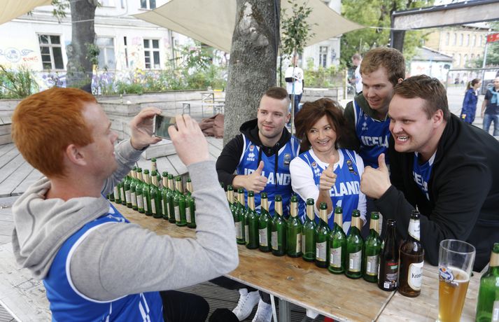Íslensku stuðningsmennirnir sem staddir eru í Þýskalandi á Evrópumótinu í körfubolta, Eurobasket, gerðu sér glaðan dag í dag. Fjölmargir stuðningsmenn Íslands voru bættir á Urban Spree þar sem kyrrjaðir voru söngvar og fólk fékk sér mjöður eða eitthvað kalt til að koma sér í gírinn. Fyrrverandi þjálfarar, dómarar og fleiri þekktir voru meðal þeirra sem voru staddir á torginu, en Ísland tapaði, eins og kunnugt er, fyrir Þýskalandi í fyrsta leiknum á Eurobasket. Valgarð Gíslason, ljósmyndari Vísis og Fréttablaðsins, var mættur á Urban Spree og fangaði stemninguna fyrir Vísi. Myndirnar má sjá hér að ofan.