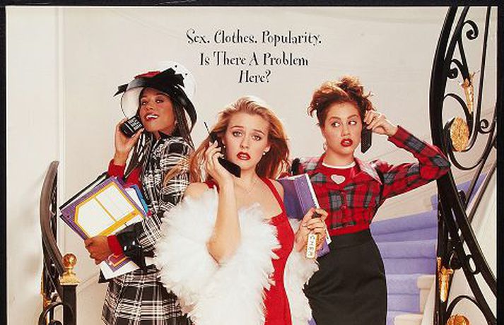Clueless fagnar 20 ára afmæli. As if! Adda Soffía Ingvarsdóttir skrifar 14. maí 2015 12:00 „HE GAVE ME A C MINUS“ Eitt eftirminnilegasta atriði myndarinnar, þegar þær Cher og Dionne tala saman í síma, hlið við hlið. Vísir/Getty Kvikmyndin Clueless fagnar tuttugu ára afmæli sínu í ár, en myndin kom út þann 19. júlí árið 1995. Í henni kynntumst við Beverly Hills-skvísunni Cher Horowich. Hún á moldríkan pabba sem starfar sem lögmaður. Móðir hennar lést hins vegar þegar Cher var aðeins tólf ára, þegar fitusogsaðgerð sem hún var í fór úr böndunum. Síðan þá hefur Cher ekki skort einn einasta veraldlegan hlut, eins og sjá má á fataskápunum hennar, bílnum og herberginu hennar. Henni er mikið í mun að vera góð við alla og vill helst bjarga heiminum, þótt hún eigi það til að misskilja hann. Hún fær sitt fram með því að vera frek á einlægan hátt og hikar ekki við að halda ræður til að færa rök fyrir máli sínu. Myndin er byggð á bókinni Emma eftir Jane Austen, og átti upphaflega að vera sjónvarpsþáttur með nafnið Clueless in California. Leikstjórinn, Amy Heckerling, prófaði Reese Witherspoon og Sarah Michelle Gellar í hlutverkið, en hvorug þeirra gat tekið hlutverkið að sér. Heckerling óskaði þá eftir að fá stelpuna sem lék í Aerosmith-myndböndunum og var Alicia Silverstone ráðin í hlutverkið. Margir af vinsælustu frösum myndarinnar, eins og „Baldwin“, „Betty“ og „keeping it real“, voru hugmyndir leikstjórans og slógu þeir svo rækilega í gegn að gefin var út bókin How to Speak Cluelessly. Höfðu leikarar myndarinnar flestir ekki hugmynd um hvað þessi orð þýddu þegar þau léku í myndinni. Fyrir utan frasana og litríka karaktera er myndin einna eftirminnilegust fyrir búningana. Það var líklega ekki til sú unglingsstúlka sem ekki dreymdi um að eignast gula, köflótta dressið, hvíta Calvin Klein-kjólinn (sem Calvin Klein lét endurgera árið 2010 vegna vinsælda), kragalausu skyrtuna frá Fred Segal, Alaia-kjólinn og rauðu satínskóna. Og glætan að fara í eitthvað frá Judy's! Bíó og sjónvarp Mest lesið Tchéky Karyo látinn Lífið Stjörnurnar á hrekkjavökunni: Louvre-þjófur og vampírur Lífið Samkeppnin í New York minnti á X-Factor keppni Menning Fasteignasalar og ofurskvísur í Októberfest stemningu Lífið Telur Sweeney hafa verið blekkta í kjólinn Tíska og hönnun Ískyggilega líkur ofurfyrirsætu: „Ég er með píku“ Lífið Nýr skemmti- og spjallþáttur á Sýn Lífið Breytti um nafn eftir djúpa ástarsorg Tónlist Fréttatía vikunnar: Ríkislögreglustjóri, fellibylur og rasisti Lífið Fundin eftir sjö vikur á vergangi: „Takk hver sem þú ert“ Lífið Fleiri fréttir Vaktin: Sjónvarpsmenn verðlauna hver annan á ný Barnastjarna bráðkvödd Komu höndum yfir fæðingarvottorðið og ljóstruðu upp um fæðinguna Fimm góðar um vonda færð, snjóstorma og ærandi innilokunarkennd Vafðist tunga um tönn þegar Bond bar á góma Hótelstjóri Hótels Tindastóls er allur „Fallegasti drengur í heimi“ er látinn „Ég hef ekki trú á öðru en að við lifum þetta af“ Tilnefningar fyrir árið 2024 birtar Þau eru tilnefnd til Sjónvarpsverðlaunanna fyrir árið 2023 Sjónvarpsverðlaunin sækja innblástur í stillimyndina Inbetweeners snúa aftur Vesturport fær lóð í Gufunesi Minnist náins kollega og elskhuga „Hættið að senda mér gervigreindarmyndbönd af pabba“ Bak við tjöld Víkurinnar: Háskalegar aðstæður og hættulegur ferðamaður á hjara veraldar Saman á rauða dreglinum Rússar meina kvikmyndagerðarmanni að koma til Íslands Weerasethakul og Corbijn hlutu heiðursverðlaun RIFF Sjá meira