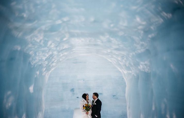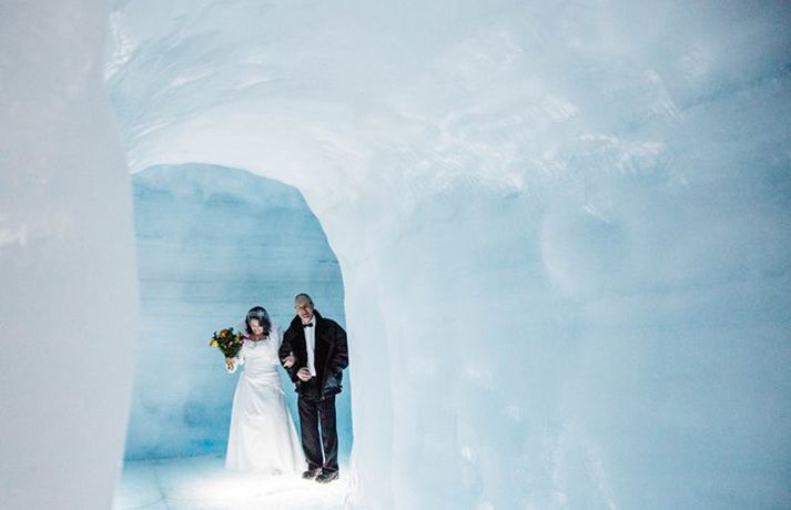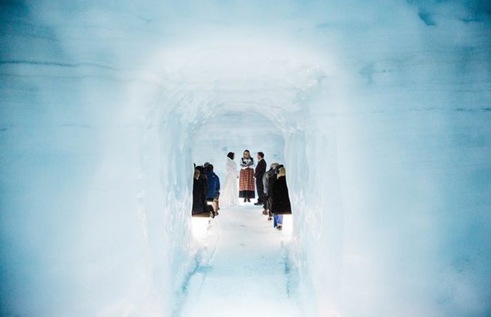 Svona leit fyrsta brúðkaupið inni í Langjökli út - Myndir Bjarki Ármannsson skrifar 9. mars 2016 16:30 Brúðhjónin Anthony og Mari eru sögð hafa viljað óhefðbundið og ævintýralegt brúðkaup. Mynd/Kristín María Stefánsdóttir Fyrsta brúðkaupið inni í ísgöngunum í Langjökli fór fram síðastliðinn fimmtudag þegar bresku turtildúfurnar Anthony og Mari létu pússa sig saman. Skipulagning hófst fyrir tæpu ári en brúðhjónin eru sögð hafa viljað óhefðbundið og ævintýralegt brúðkaup. „Gestirnir gistu allir á Hótel Húsafelli nóttina fyrir brúðkaupið en enginn vissi hvað var í vændum,“ segir Eva María Þórarinsdóttir, einn eigenda Pink Iceland og skipuleggjandi brúðkaupsins, í tilkynningu frá fyrirtækinu Into the Glacier. „Eftir morgunmat gengum við úr skugga um að allir væru vel klæddir og svo mættu nokkrir „súperjeppar“ á svæðið, sóttu gestina og keyrðu upp á jökul.“Ísland í dag fékk að heimsækja íshellinn fyrir um ári síðan, stuttu áður en hann opnaði. Innslagið má sjá hér að neðan.Að því er segir í tilkynningunni voru brúðhjón jafnt sem skipuleggjendur í skýjunum með hversu vel tókst til. Brúhjónin höfðu óskað eftir því að heiðra íslenska siði og menningu við athöfnina og var meðal annars boðið upp á flatkökur með hangikjöti og kleinur að athöfn lokinni. Þá gaf Inga Auðbjörg frá Siðmennt hjónin saman klædd íslenskum þjóðbúningi. Kristín María Stefánsdóttir ljósmyndari var viðstödd athöfnina og er hér að neðan að finna nokkrar vel valdar myndir frá henni.Mynd/Kristín María StefánsdóttirMynd/Kristín María StefánsdóttirMynd/Kristín María StefánsdóttirMynd/Kristín María StefánsdóttirMynd/Kristín María StefánsdóttirMynd/Kristín María StefánsdóttirMynd/Kristín María StefánsdóttirMynd/Kristín María StefánsdóttirMynd/Kristín María StefánsdóttirMynd/Kristín María StefánsdóttirMynd/Kristín María StefánsdóttirMynd/Kristín María Stefánsdóttir Ferðamennska á Íslandi Tengdar fréttir Ísgöngin í Langjökli loks komin hringinn Fimm hundruð metra ísgöng í Langjökli verða opnuð ferðamönnum 1. júní. Að sögn framkvæmdastjóra IceCave Iceland er mikill áhugi fyrir hellinum. Nú hafi hátt í fjögur þúsund bókað ferð á jökulinn. Hringnum var lokað á annan páskum. 8. apríl 2015 06:00 Stærstu manngerðu ísgöng í Evrópu vígð í dag „Þetta er einn af mínum uppáhaldsviðkomustöðum nú þegar,“ segir Ragnheiður Elín Árnadóttir ráðherra. 5. júní 2015 21:24 Yfir tuttugu þúsund manns hafa komið í ísgöngin í Langjökli Vel yfir tuttugu þúsund manns hafa komið inn í ísgöngin í Langjökli frá því þau voru opnuð almenningi 1. júní í sumar. 12. desember 2015 07:00 Mest lesið Samkeppnin í New York minnti á X-Factor keppni Menning Stjörnurnar á hrekkjavökunni: Louvre-þjófur og vampírur Lífið Fréttatía vikunnar: Ríkislögreglustjóri, fellibylur og rasisti Lífið Hrekkjavökubúningar sem er best að forðast Menning Láta forræðishyggju hinna fullorðnu ekki fipa sig Lífið Breytti um nafn eftir djúpa ástarsorg Tónlist Telur Sweeney hafa verið blekkta í kjólinn Tíska og hönnun Nýr skemmti- og spjallþáttur á Sýn Lífið Ískyggilega líkur ofurfyrirsætu: „Ég er með píku“ Lífið Atli Steinn fann ástina á ný Lífið Fleiri fréttir Stjörnurnar á hrekkjavökunni: Louvre-þjófur og vampírur Fréttatía vikunnar: Ríkislögreglustjóri, fellibylur og rasisti Láta forræðishyggju hinna fullorðnu ekki fipa sig Heillandi raðhús Evu Maríu og Trausta til sölu Nýr skemmti- og spjallþáttur á Sýn Fundin eftir sjö vikur á vergangi: „Takk hver sem þú ert“ Fresta hrekkjavöku til að tryggja öryggi lítilla skrímsla Stjörnurnar skinu skært á sögulegum sjónvarpsverðlaunum Atli Steinn fann ástina á ný „Síðasta flugtak“ Play í Gamla bíói Már Gunnars genginn út Verk Þórdísar Erlu munu prýða auglýsingaskilti borgarinnar Steingleymdi að taka niður sólgleraugun Hvenær má byrja að spila jólalög? Stílhrein og stílíseruð útsýnisíbúð við Heiðmörk Ískyggilega líkur ofurfyrirsætu: „Ég er með píku“ „Get ekki gengið óstudd og framundan er mikil endurhæfing“ Ótrúlegur bílskúr Hönnu Rúnar: „Hvar ertu?“ Lét flúra brúðkaupsdaginn á sig en gerði mistök Sviti, mjólk og hóstakast eftir að hafa manað hvor annan Yfir 170 góðgerðafélög hlutu styrk í áheitasöfnun Reykjavíkurmaraþons Sigurjón og Sóley gjörbreyttu eldhúsinu með einstakri útkomu „Alvöru“ jólasveinn gisti á Hótel Rangá Fasteignasalar og ofurskvísur í Októberfest stemningu Eitt glæsilegasta hús Reykjavíkur til sölu „Þetta er það fallegasta sem einhver hefur sagt um mig“ Hvað þýðir „six-seven“? Smáforrit til að deila heimilisverkum: „Fæ þrjú stig fyrir að þurrka af á heimilinu“ Kynslóðabilið kom í ljós þegar umræðan beindist að blautbolakeppni Ljúffengar banana- og kakóbollakökur í nestisboxið Sjá meira