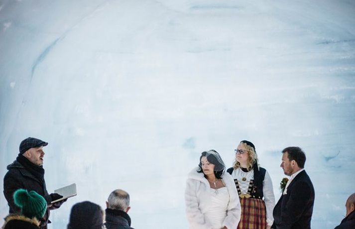 Fyrsta brúðkaupið inni í ísgöngunum í Langjökli fór fram síðastliðinn fimmtudag þegar bresku turtildúfurnar Anthony og Mari létu pússa sig saman. Skipulagning hófst fyrir tæpu ári en brúðhjónin eru sögð hafa viljað óhefðbundið og ævintýralegt brúðkaup. „Gestirnir gistu allir á Hótel Húsafelli nóttina fyrir brúðkaupið en enginn vissi hvað var í vændum,“ segir Eva María Þórarinsdóttir, einn eigenda Pink Iceland og skipuleggjandi brúðkaupsins, í tilkynningu frá fyrirtækinu Into the Glacier. „Eftir morgunmat gengum við úr skugga um að allir væru vel klæddir og svo mættu nokkrir „súperjeppar“ á svæðið, sóttu gestina og keyrðu upp á jökul.“Ísland í dag fékk að heimsækja íshellinn fyrir um ári síðan, stuttu áður en hann opnaði. Innslagið má sjá hér að neðan.Að því er segir í tilkynningunni voru brúðhjón jafnt sem skipuleggjendur í skýjunum með hversu vel tókst til. Brúhjónin höfðu óskað eftir því að heiðra íslenska siði og menningu við athöfnina og var meðal annars boðið upp á flatkökur með hangikjöti og kleinur að athöfn lokinni. Þá gaf Inga Auðbjörg frá Siðmennt hjónin saman klædd íslenskum þjóðbúningi. Kristín María Stefánsdóttir ljósmyndari var viðstödd athöfnina og er hér að neðan að finna nokkrar vel valdar myndir frá henni.Mynd/Kristín María StefánsdóttirMynd/Kristín María StefánsdóttirMynd/Kristín María StefánsdóttirMynd/Kristín María StefánsdóttirMynd/Kristín María StefánsdóttirMynd/Kristín María StefánsdóttirMynd/Kristín María StefánsdóttirMynd/Kristín María StefánsdóttirMynd/Kristín María StefánsdóttirMynd/Kristín María StefánsdóttirMynd/Kristín María StefánsdóttirMynd/Kristín María Stefánsdóttir