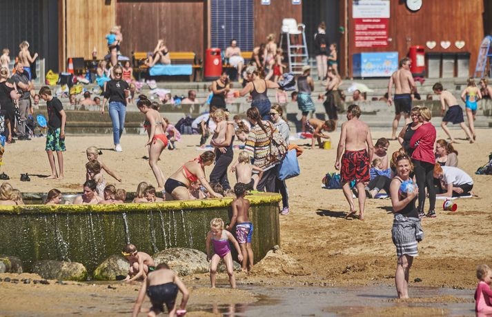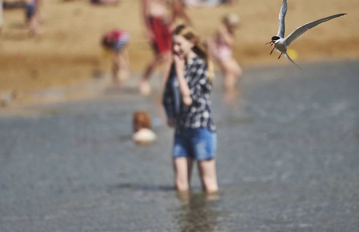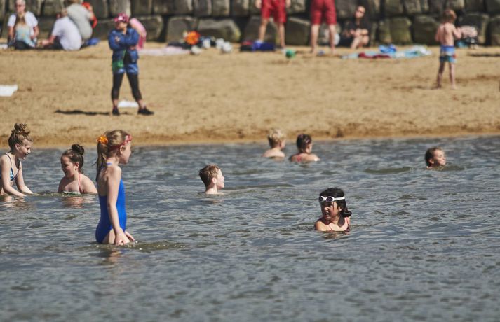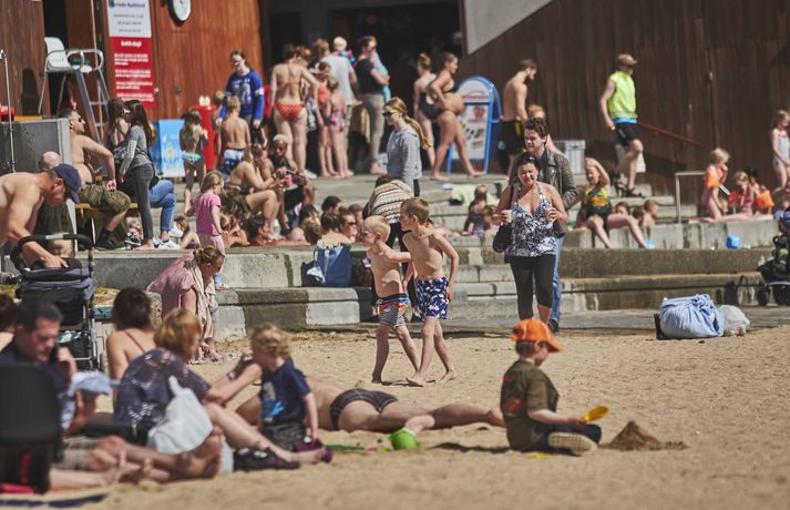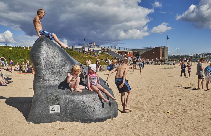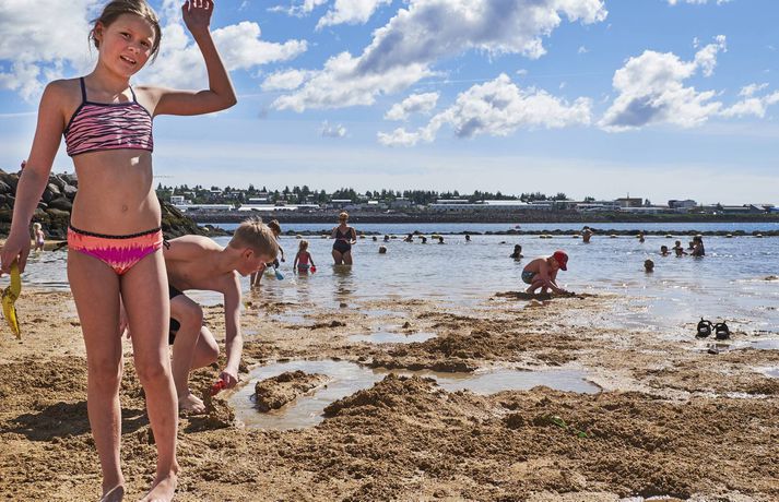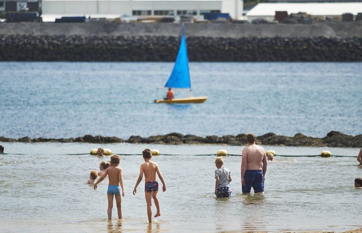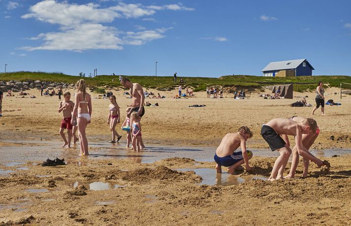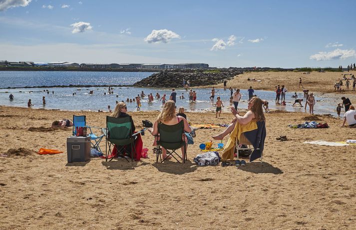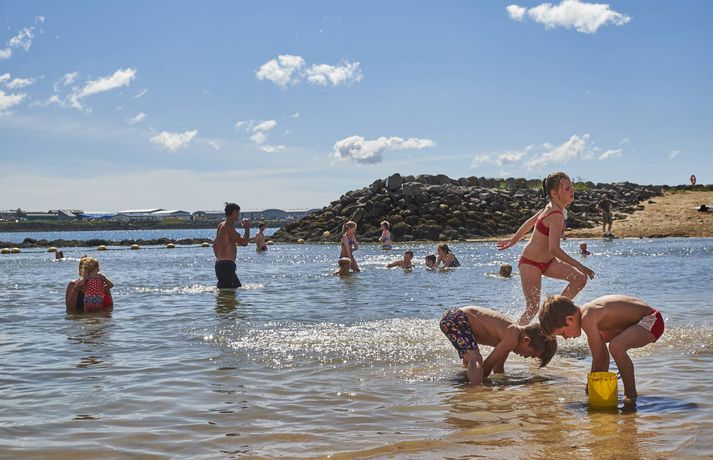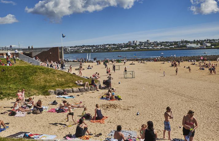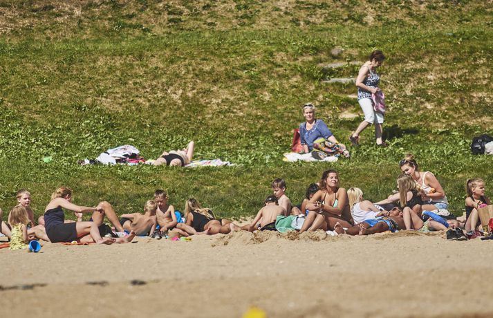 Sólin leikur um mig algjörlega bera Kolbeinn Tumi Daðason skrifar 7. júlí 2016 11:26 Vísir/Anton Brink Óhætt er að segja að veðrið hafi verið gott á Íslandi það sem af er sumri og varð engin breyting á því á höfuðborgarsvæðinu í gær, og reyndar heldur ekki í dag. Fjöldi fólks lagði leið sína í Nauthólsvík, fækkaði fötum og lagði inn á D-vítamín forðann fyrir veturinn. Sumir busluðu, aðrir byggðu sandkastala og enn aðrir léku sér með bolta.Anton Brink, ljósmyndari Fréttablaðsins og Vísis, skellti sér í Nauthólsvík og tók að sjálfsögðu myndavélina með. Að neðan má svo hlusta á sumarslagarann Sumarið er komið með Stuðmönnum Veður Mest lesið Harpa Elín Haraldsdóttir er látin Innlent „Menn eiga ekki að vera að hnýsast í gögn sem þeim koma ekki við“ Innlent Lögreglan innsiglaði Flóka Innlent Stefnt að leiðtogaprófkjöri eftir áramót og kunnugleg nöfn mögulega í pottinum Innlent „Lífsgæðin mín hafa verið tekin aftur í burtu frá mér“ Innlent Snúin staða Sönnu og sameiginlegt framboð virðist ekki í kortunum Innlent Ítrekar hótanir sínar og hvetur íbúa til að kjósa Cuomo Erlent Ölvaður en ekki barnaníðingur Innlent „Upp er runninn Kristrúnar Frostaveturinn mikli“ Innlent Tekinn í tíunda skipti dópaður og réttindalaus Innlent Fleiri fréttir Grunaðir um hundruð milljóna króna þjófnað en ganga lausir Hundruð kennara nýta gervigreind til að undirbúa kennslu „Upp er runninn Kristrúnar Frostaveturinn mikli“ Starfsmaður Múlaborgar ákærður Gleðiefni að útkomuspá ársins sé á núlli Stefnt að leiðtogaprófkjöri eftir áramót og kunnugleg nöfn mögulega í pottinum Miðflokkurinn með eigið útspil í öryggis- og varnarmálum „Menn eiga ekki að vera að hnýsast í gögn sem þeim koma ekki við“ Reikna með tæplega nítján milljarða afgangi á næsta ári Tekinn í tíunda skipti dópaður og réttindalaus Uppsagnir hjá Icelandair og borgin kynnir fjárhagsáætlun næsta árs „Lífsgæðin mín hafa verið tekin aftur í burtu frá mér“ Bein útsending: Kynnir sína fyrstu fjárhagsáætlun Ölvaður en ekki barnaníðingur Líklegast að Reykjavíkurleiðin taki breytingum eftir umsagnir Harpa Elín Haraldsdóttir er látin Snúin staða Sönnu og sameiginlegt framboð virðist ekki í kortunum Lögreglan innsiglaði Flóka „Við vorum komin með súrefniskúta heim“ Tveir reyndir lögreglumenn ákærðir fyrir brot í starfi Lögreglumenn ákærðir fyrir uppflettingar og hlerun Sækja slasaðan sjómann djúpt austur af landinu Miðflokkurinn nálgast Sjálfstæðisflokkinn óðfluga Óvænt stólaskipti skyggðu ekki á Bandaríkjareisuna Ákærður fyrir að birta fjölda nektarmynda af fyrrverandi Ekki meiðyrði hjá RÚV að lýsa yfirlýsingum Elds Smára réttilega Georgíumaður hafi kvænst Letta til þess að fá dvalarleyfi Eldur í bíl á Hellisheiði Líklegra að það gjósi nær áramótum Stíga ekki inn í Intra-málið í bili Sjá meira