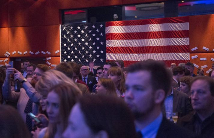 Stuð og stemning á kosningavöku bandaríska sendiráðsins Sunna Kristín Hilmarsdóttir skrifar 9. nóvember 2016 02:15 Það var fjör á kosningavöku bandaríska sendiráðsins á Íslandi fyrr í kvöld. vísir/eyþór Það var múgur og margmenni á kosningavöku bandaríska sendiráðsins á Hilton Hotel Nordica þegar Eyþór Árnason ljósmyndari Vísis og Fréttablaðsins leit þar við fyrr í kvöld. Haldnar voru forsetakosningar í salnum þar sem viðstaddir gátu kosið á milli þeirra Hillary Clinton og Donald Trump. Kom þá í ljós að mikill meirihluti þeirra sem voru í salnum kusu Hillary, eða um 85 prósent. Það er því eðlilega mikið fagnað á vökunni þegar Clinton gengur vel en samkvæmt blaðamanni Vísis sem er á vökunni er mikið stuð á vökunni þar sem fólk fylgist grannt með nýjustu tölum. Þá er nóg af kræsingum á boðstólnum; Krispy Kreme, KFC, Taco Bell og pizzur frá Pizza Hut. I myndaalbúminu hér að ofan má skoða myndir frá vökunni frá því fyrr í kvöld. Donald Trump Forsetakosningar í Bandaríkjunum Mest lesið Fasteignasalar og ofurskvísur í Októberfest stemningu Lífið Eitt glæsilegasta hús Reykjavíkur til sölu Lífið Troðningur á yfirfullri opnun: „Þetta var svolítið kreisí“ Lífið Bragðgott quesadilla á einni plötu Matur Meðalmennskan plagar Brján Gagnrýni Fimm góðar um vonda færð, snjóstorma og ærandi innilokunarkennd Bíó og sjónvarp Fékk lífið til baka á korteri eftir tólf ár af sársauka Lífið Sjóðheitt fyrir snjóstorm Tíska og hönnun Vafðist tunga um tönn þegar Bond bar á góma Bíó og sjónvarp Hvað þýðir „six-seven“? Lífið Fleiri fréttir Fasteignasalar og ofurskvísur í Októberfest stemningu Eitt glæsilegasta hús Reykjavíkur til sölu „Þetta er það fallegasta sem einhver hefur sagt um mig“ Hvað þýðir „six-seven“? Smáforrit til að deila heimilisverkum: „Fæ þrjú stig fyrir að þurrka af á heimilinu“ Kynslóðabilið kom í ljós þegar umræðan beindist að blautbolakeppni Ljúffengar banana- og kakóbollakökur í nestisboxið Troðningur á yfirfullri opnun: „Þetta var svolítið kreisí“ Pétur Kr. og Ingibjörg selja 270 fermetra eign við Ægisíðu Barist upp á líf og dauða „Get ekki hætt að hugsa um bragðarefinn sem hann pantaði“ Langþráður draumur verður að veruleika Samsæriskenningar notaðar sem stjórntæki Stjörnulífið: „Dagur sem mun aldrei gleymast“ Gisti hálft ár á sófum hjá bekkjarfélögum Betra að vera blankur nemi í New York Kynlífið innantómt með öðrum en fyrrverandi Fékk lífið til baka á korteri eftir tólf ár af sársauka Staðfesta loks sambandið Einar og Milla skírðu drenginn Með blæðandi hjarta og ber örin með stolti Krakkatían: Kvennafrídagurinn, Ólsen ólsen og málsháttur Áslaug Arna kom alblóðug inn í sjúkratjaldið Upplifði stöðugan ótta við helvíti í samfélagi múslima í Svíþjóð Getur alls ekki verið einn Fréttatía vikunnar: Ungfrú Ísland Teen, Louvre-þjófnaður og hrukkur Myndaveisla: Troðfullur miðbær á kvennafrídegi Borgarfulltrúi bjargaði stolnum barnavagni „Segið að ég sé samkynhneigður en ekki ljúga með hitt“ Notaði ákveðinn mat til að hjálpa í krabbameinsmeðferðinni Sjá meira