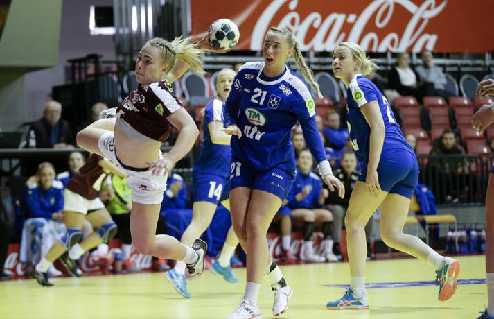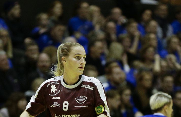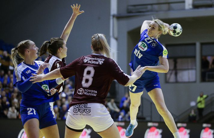 Umfjöllun, viðtöl og myndir: Stjarnan - Selfoss 27-23 | Meistararnir í úrslit Anton Ingi Leifsson í Laugardalshöll skrifar 23. febrúar 2017 19:15 Rakel Dögg skoraði fimm mörk. vísir/vilhelm Bikarmeistarar Stjörnunnar geta varið Coca-Cola bikarinn á laugardaginn, en liðið tryggði sér í dag sæti í úrslitaleik bikarsins með sigri á Selfoss í Laugardalshöllinni í dag, 27-23.Vilhelm Gunnarsson, ljósmyndari Fréttablaðsins og Vísis, var í Laugardalshöllinni í dag og tók meðfylgjandi myndir. Stjarnan byrjaði af miklum krafti, en Selfoss komst fljótt inn í leikinn. Stjarnan var þó 15-10 yfir í hálfleik, en þær létu forskotið aldrei af hendi og unnu að lokum, 27-23. Stjarnan komst 4-0 yfir í upphafi leiks og miðað við þær fyrstu mínútur hefði maður haldið að þeta yrði einstefna, en hægt og rólega komust Selfyssingar inn í leikinn og skoruðu næstu fjögur mörk og jöfnuðu leikinn. Þær hertu varnarleikinn og Stjarnan átti í töluverðum vandræðum með að skora, en liðin skiptust á að skora og staðan var 9-9 þegar átta mínútur lifðu eftir af fyrri hálfleik. Þá setti Stjarnan hins vegar í annan gír. LIðið skoraði sex af síðustu sjö mörkum leiksins, en liðið gjörsamlega lokaði vörnina og Selfyssingar voru oft á tíðum algjörir klaufar. Óskynsemi í sókninni og hraðaupphlaup í bakið, en þegar liðin gengu til búningsherbergja leiddi Stjarnan með fimm marka mun, 15-10. Stjarnan skoraði fyrsta mark síðari hálfleiks, en Selfoss var alltaf í seilingarfjarlægð frá Garðbæingum. Bæði lið gerðu aragrúa af mistökum, en einnig voru flott tilþrif inn á milli. Hrafnhildur Hanna Þrastardóttir hélt Selfyssingum inn í leiknum á tímapunkti, en hún fór gjörsamlega fór á kostum og skoraði að endingu tólf mörk. Það voru margar að leggja í púkkinn hjá Stjörnustúlkum, en þær voru fjórum mörkum yfir þegar stundarfjórðungur var til leiksloka. Þær héldu þeirri forystu út allan leikinn þrátt fyrir nokkur áhlaup Selfyssinga, en þær eru einfaldlega með of reynslumikið lið til þess að láta það á sig fá. Lokatölur 27-23. Þetta var algjör liðssigur hjá Stjörnunni. Allir útileikmenn nema tveir komust á blað, en markahæst var Helena Rut Örvarsdóttir með átta mörk. Næst kom Rakel Dögg Bragadóttir með fjögur, en báðar voru þær öflugar í varnarleiknum einnig. Hrafnhildur Hanna Þrastardóttir var í sérflokki í liði Selfoss, en hún skoraði tólf mörk. Einungis sex leikmenn komust á blað hjá Selfyssingum á meðan tíu leikmenn skoruðu hjá Stjörnunni og vantaði Hrafnhildi sáran meiri hjálp, en ungt lið Selfoss getur vel við unað með árangur liðsins í bikarkeppninni þetta árið. Stjarnan getur því varið bikarmeistaratitilinn, en þær unnu hann einnig í fyrra. Mótherji Stjörnunnar í úrslitum verða annað hvort Fram eða Haukar, en liðin eigast við þegar þetta er skrifað.Rakel Dögg: Munum gera allt sem við getum til að halda bikarnum í Garðabæ „Það er alltaf ljúf tilfinning að vinna og sérstaklega þegar þú ert að tryggja þér sæti í bikarúrslitaleikinn. Æðisleg tilfinning,” sagði Rakel Dögg Bragadóttir, lykilmaður Stjörnunnar, í samtali við Vísi í leikslok. „Fimm marka munur í hálfleik er svosem mjög sterkt og við náum að halda þessu nokkurn veginn allan tímann í seinni hálfleik. Þær minnka vissulega muninn í tvö, en mér fannst við hafa fín stjórn á leiknum.” „Mér fannst þetta fyrst og fremst vera varnarleikur og Hafdís var að verja vel í markinu. Það skilar þessum sigri,” en Rakel Dögg er sammála undirrituðum að leikurinn var heldur of kaflaskiptur hjá ríkjandi bikarmeisturum. „Auðvitað vill maður vera stabíll allan leikinn og kannski var þetta aðeins of kaflskipt. Við missum aðeins dampinn í fyrri hálfleik og svo aftur aðeins í síðari hálfleik, en það sem skiptir máli er að við rísum upp aftur og klárum báða hálfleikina mjög vel.” Einn og hálfur sólahringur er í úrslitaleikinn og segir Rakel að það verði ekki gert mikið á þeim tíma: „Maður þekkir bæði liðin mjög vel og við fáum þau forréttindi að geta horft á þennan leik og farið strax að pæla í leiknum á laugardaginn.” „Svo er það bara snemma og sofa, fara í ísbað og þetta klassíska. Við tökum svo góðan fund á morgun og góða æfingu á morgun og þá ættum við að vera klárar á laugardaginn,” en er bikarinn ekki á leið í Garðabæ annað árið í röð? „Ég skal lofa þér því að ég mun leggja mig allan fram í að það verði að veruleika, en hvort það endi þannig verður að koma í ljós. Við allar munum gera allt sem við getum til þess að halda honum í Garðabæ,” sagði Rakel að lokum.Hrafnhildur: Reynsluleysi á stuttum köflum í leiknum „Þetta er hundsvekkjandi. Við vorum því miður ekki nægilega góðar í dag,” sagði tólf marka Hrafnhildur Hanna Þrastardóttir, leikmaður Selfoss, en hún fór á kostum í dag. „Það var reynsluleysi á stuttum köflum í leiknum, sérstaklega undir lok fyrri hálfleiks. Þá missum við þær fimm mörkum fram úr okkur og það er erfitt bil að brúa.” Selfoss byrjaði leikinn mjög illa, en eftir því sem leið á fyrri hálfleik þá gekk leikur þeirra betur. Undir lok fyrri hálfleiks misstu þær hins vegar aftur tökin og voru fimm mörkum undir í hálfleik. „Já það var svekkjandi. Sérstaklega þar sem staðan var 10-9 þegar nokkrar mínútur voru eftir og við misstum þær fimm mörkum fram úr sem er alltof mikið.” „Á sumum köflum fannst mér við vera of óskynsamar, en löngum köflum vorum við að spila frábærlega. Við megum bara ekki við því að missa okkur í nokkrar mínútur, þá bara missum við liðin fram úr okkur.” Bikarævintýri Selfyssinga er því á e