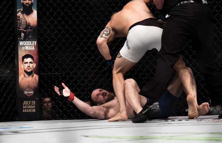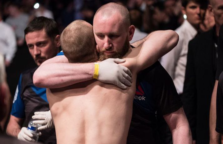 MMA Tengdar fréttir Ponzinibbio sigraði Gunnar | Myndasyrpa Gunnar Nelson beið ósigur fyrir Santiago Ponzinibbio í Glasgow í gærkvöldi. Þetta var þriðja tap Gunnars í síðustu sex bardögum. 17. júlí 2017 09:30 Gunnar: Ég varð gráðugur Gunnar Nelson var svekktur út í sjálfan sig er Vísir hitti hann eftir bardagann gegn Santiago Ponzinibbio í Glasgow. 16. júlí 2017 23:34 Ponzinibbio: Ég er besti bardagamaður heims Argentínumaðurinn Santiago Ponzinibbio mætir Gunnari Nelson í Glasgow í kvöld. Hann var hvers manns hugljúfi á fjölmiðladeginum. Talaði ágæta ensku en einhverra hluta vegna gekk honum illa að skilja aðra sem töluðu tungumálið. En honum líður vel og er þakklátur fyrir þetta stóra tækifæri. 16. júlí 2017 19:00 Twitter-samfélagið í losti: Fyrst var þögn, síðan kom þruman Santiago Ponzinibbio sigraði Gunnar Nelson í Glasgow í kvöld. 16. júlí 2017 22:20 Svona var bardagavikan hjá Gunnari | Kíkt á bak við tjöldin Mjölnir var að gefa frá sér frábært myndband þar sem fylgst er með Gunnari Nelson frá því hann fór að heiman frá sér í Reykjavík og nánast þar til hann stígur í búrið í Glasgow. 16. júlí 2017 16:54 Sjáðu svipmyndir úr bardaga Gunnars | Myndband Gunnar Nelson var rotaður af argentínska Santiago Ponzinibbio eftir aðeins 82 sekúndur á UFC 214 bardagakvöldinu í Glasgow í kvöld en þetta var þriðja tap Gunnars á UFC-ferlinum. 16. júlí 2017 22:15 Ponzinibbio rotaði Gunnar Frábærlega heppnuðu bardagakvöldi í Glasgow er lokið þar sem Gunnar Nelson varð að sætta sig við mjög svekkjandi tap gegn Santiago Ponzinibbio. 16. júlí 2017 21:45 „Gunnar Nelson er harður gaur“ Argentínumaðurinn Santiago Ponzinibbio kom, sá og sigraði í kvöld. 16. júlí 2017 22:04 Mest lesið Óskar Hrafn fer ekki fet Íslenski boltinn Hákon Rafn hélt hreinu þegar Brentford flaug áfram Enski boltinn Spánn og Þýskaland mætast í úrslitum Fótbolti Anguissa hetja meistaranna Fótbolti Martin öflugur í góðum sigri Körfubolti Verstappen telur sig ekki geta barist um titilinn Formúla 1 Leikið á Þróttaravelli á miðvikudag Fótbolti Jón Dagur gulltryggði sigurinn með sínu fyrsta marki Fótbolti Fær þrjár milljónir á dag næstu sex árin fyrir að gera ekkert Sport Vonast til að komast í Kórinn: „Menn hafa aldrei séð annað eins“ Fótbolti Fleiri fréttir Óskar Hrafn fer ekki fet Spánn og Þýskaland mætast í úrslitum Anguissa hetja meistaranna Hákon Rafn hélt hreinu þegar Brentford flaug áfram Martin öflugur í góðum sigri Verstappen telur sig ekki geta barist um titilinn Jón Dagur gulltryggði sigurinn með sínu fyrsta marki Leikið á Þróttaravelli á miðvikudag Vinícius Júnior íhugar að yfirgefa Real Madríd Kaupir sér tveggja milljarða króna hús Alexander Máni með fimm mörk í tveimur leikjum og Ísland áfram Birnir frá Akureyri í Garðabæ Klobbaði íslensku strákana og fór á flug á netmiðlum Teitur inn í landsliðið Hættir með Fram Landsliðskonur aðstoðuðu ökumenn í vanda Öllum leikjum Bónus-deildar kvenna í kvöld frestað Arnar skilur ekkert í Tottenham Landsleiknum aflýst og framhaldið óljóst Bardagakapparnir vilja ólmir fá að keppa í Hvíta húsinu Segir að Slot verði að taka tvo leikmenn út úr Liverpool-liðinu Vonast til að komast í Kórinn: „Menn hafa aldrei séð annað eins“ Markvörður Inter banaði háöldruðum manni í hjólastól „Alltaf gaman að fá nýjar raddir inn“ Gleðifréttir fyrir Argentínumenn: Messi vill spila á HM „Sagan hefur sýnt það að ég er góður að þjálfa unga og efnilega leikmenn“ Stöðufundur í Laugardal klukkan 10:30 Enska úrvalsdeildin í jólaköttinn Nýi íþróttastjóri Kjartans stal mörgæs og endaði í fangelsi í Singapúr Tyrkneska sambandið segir dómara hafa veðjað á þúsundir leikja Sjá meira