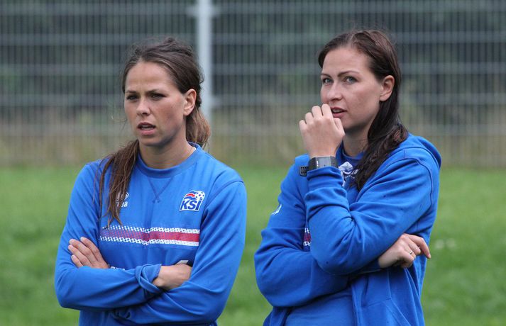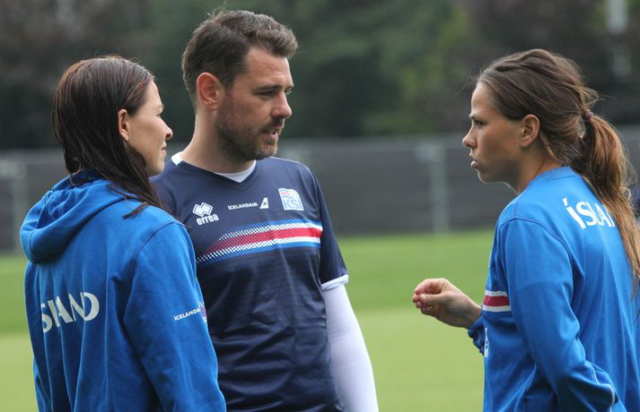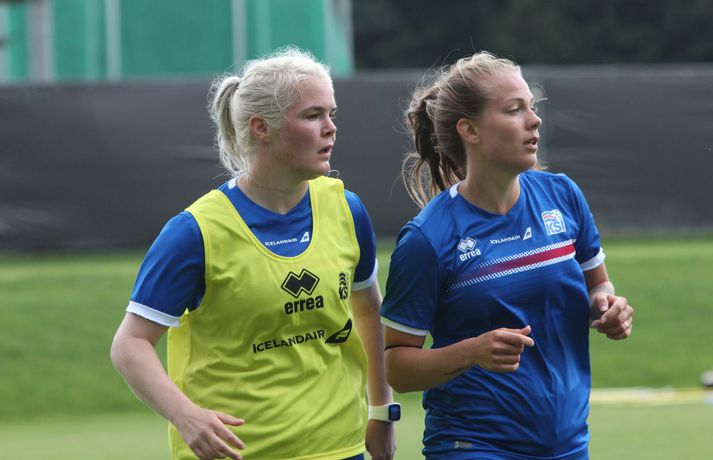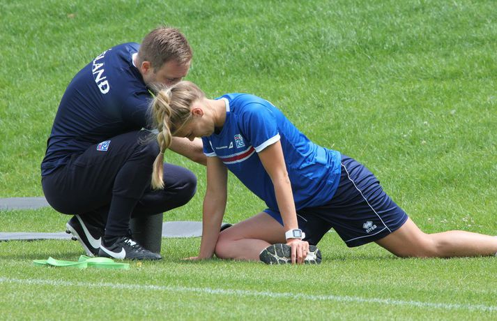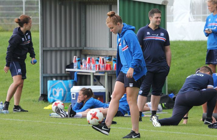 Stelpurnar okkar æfðu í hádeginu í dag eftir tapleikinn á móti Sviss í gær. Byrjunarliðsmenn tóku annað hvort engan þátt í æfingunni eða voru í endurheimt og/eða nuddi og sjúkraþjálfun.Sjá einnig:Féllust í faðma á æfingu dagsins Þeir leikmenn sem spiluðu minna eða komu ekkert við sögu tóku hressilega á því á æfingunni sem Heimir Hallgrímsson, landsliðsþjálfari karla, stýrði. Þegar fréttamenn fengu að fara inn á æfinguna var verið að spila stutt á milli marka á miklu tempói og svo farið í skotkeppni. Stelpurnar voru eðlilega fúlar eftir úrslitin í gærkvöldi, bæði í sínum leik og hjá Frökkum og Sviss en jafnteflið þar varð til þess að Ísland er úr leik. Það verður því ekkert nema stoltið í boði fyrir íslenska liðið á móti Austurríki í Rotterdam á miðvikudaginn. Hér að neðan má sjá nokkrar myndir frá æfingunni í dag og myndaveislu má svo finna neðst í fréttinni.Ekki missa af neinu tengdu stelpunum okkar á EM 2017 í Hollandi. Íþróttadeild 365 er með öflugt teymi fréttamanna á mótinu og færir ykkur allar nýjustu fréttirnar af íslenska liðinu. Fylgdu okkur á Facebook og Twitter.Vísir/TomHólmfríður Magnúsdóttir átti fína innkomu í gær en æfði í dag.vísir/tomBerglind Björg Þorvaldsdóttir gefur sér knús.vísir/tomHeimir Hallgrímsson stýrði æfingunni.vísir/tomFyrirliðinn Sara Björk Gunnarsdóttir og varafyrirlðinn Guðbjörg Gunnarsdóttir fylgdust bara með í dag.vísir/tom