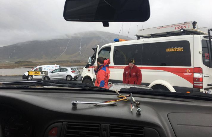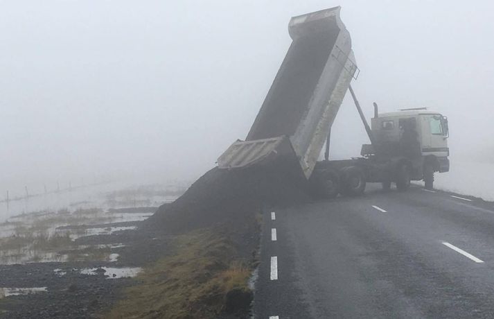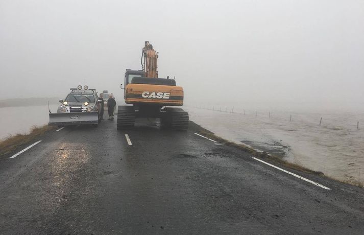 Þyrlan flýgur með nauðsynjavörur á bæi sem eru innlyksa vegna vatnavaxta Sunna Kristín Hilmarsdóttir skrifar 28. september 2017 12:23 Skemmdir eru á þjóðveginum austan Hólmsár eins og sjá má á þessari mynd. Inga Stumpf Von er á þyrlu Landhelgisgæslunnar innan skamms á Suðausturland þar sem gríðarlegir vatnavextir eru vegna úrkomu í gær og í dag. Friðrik Jónas Friðriksson, formaður svæðisstjórnar björgunarsveitanna á Suðausturlandi, segir að á milli 20 til 25 bæir séu innlyksa vegna vatnavaxtanna en þar á meðal er Hótel Smyrlabjörg og ferðaþjónustan á Vagnsstöðum. „Staðan á bæjunum er almennt góð en það þarf að koma einhverjum nauðsynjavörum til fólks. Við munum nota þyrluna til að fara með vörur á einhverja bæi en síðan er líka vegsamband innan svæðisins,“ segir Friðrik sem telur að bæirnir verði innlyksa í um fjóra til fimm daga. Hann kveðst ekki vera með nákvæma tölu yfir hversu margir eru innlyksa þar sem enn sé verið að taka það saman.Bæir í Suðursveit og á Mýrum eru innlyksa vegna mikillar úrkomu og vatnavaxta á svæðinu.loftmyndirLandsbjörg er með bíl inni á svæðinu og tvo björgunarsveitarmenn auk þess sem björgunarsveitarhópar eru sitthvoru megin við svæðið á lokunarpóstum. Friðrik segir að eina leiðin til að komast inn á svæðið sé með þyrlunni. „Við erum búnir að vera í sambandi við fólk á bæjunum sem eru innlyksa og taka niður pantanir til dæmis úr Nettó og Lyfju og reynum að koma vörum til þeirra síðar í dag,“ segir Friðrik. Í tilkynningu frá Vegagerðinni nú rétt fyrir hádegi kom fram að ekki væri útlit fyrir að hringvegurinn myndi opna fyrr en í fyrsta lagi á sunnudag en hann er lokaður við Hólmsá á Mýrum. Þá er verið að kanna aðstæður við Steinavatnabrú í Suðursveit sem lokað var fyrir allri umferð í morgun. Friðrik segist telja það bjartsýni að geta opnað veginn á sunnudag. „Ég myndi mála svartari vegg og segja að vegurinn verði lokaður um óákveðinn tíma. Ég mndi telja að hann yrði ekki opnaður fyrr en eftir helgi.“Inga Stumpf tók meðfylgjandi myndir frá aðstæðunum á þjóðvegi 1 rétt austan við Hólmsá á Mýrum. Veður Tengdar fréttir Alvarlegt ástand fyrir austan Alls komu um fimmtíu manns í fjöldarhjálparstöðvar í gærkvöldi sem opnaðar voru vegna veðursins, annars vegar í Hofgarði og hins í Mánagarði. 28. september 2017 08:33 Óvissustig almannavarna vegna úrkomu og vatnavaxta á Mýrum Ríkislögreglustjóri hefur í samráði við lögreglustjórann á Suðurlandi lýst yfir óvissustigi almannavarna vegan úrkomu og vatnavaxta á Mýrum í Austur-Skaftafellssýslu. 28. september 2017 11:14 Mest lesið Sonurinn sefur enn með kylfu undir rúminu Innlent Féll til jarðar rétt eftir flugtak Erlent Segir þaggað niður í starfsfólki og hyggst ekki snúa aftur Innlent Fundu 1,7 tonn af kókaíni í kafbát á miðju Atlantshafi Erlent Tali ekki fyrir unga Miðflokksmenn Innlent Harpa Elín Haraldsdóttir er látin Innlent Eltihrellir lögreglukvenna situr inni fyrir morð Innlent „Menn eiga ekki að vera að hnýsast í gögn sem þeim koma ekki við“ Innlent Fönguðu háhyrninga velta hvítháfum og éta úr þeim lifrina Erlent Stefnt að leiðtogaprófkjöri eftir áramót og kunnugleg nöfn mögulega í pottinum Innlent Fleiri fréttir Sonurinn sefur enn með kylfu undir rúminu Segir þaggað niður í starfsfólki og hyggst ekki snúa aftur Tali ekki fyrir unga Miðflokksmenn Flestir vantreysta ráðherrum Flokks fólksins Eltihrellir lögreglukvenna situr inni fyrir morð Þjófarnir margfölduðu upphæðir við millifærslur Taldi sig sjá bát hvolfa og þyrla og björgunarsveit kölluð út Ákærður fyrir að skjóta að dróna Fiskistofu Grunaðir um hundruð milljóna króna þjófnað en ganga lausir Hundruð kennara nýta gervigreind til að undirbúa kennslu „Upp er runninn Kristrúnar Frostaveturinn mikli“ Starfsmaður Múlaborgar ákærður Gleðiefni að útkomuspá ársins sé á núlli Stefnt að leiðtogaprófkjöri eftir áramót og kunnugleg nöfn mögulega í pottinum Miðflokkurinn með eigið útspil í öryggis- og varnarmálum „Menn eiga ekki að vera að hnýsast í gögn sem þeim koma ekki við“ Reikna með tæplega nítján milljarða afgangi á næsta ári Tekinn í tíunda skipti dópaður og réttindalaus Uppsagnir hjá Icelandair og borgin kynnir fjárhagsáætlun næsta árs „Lífsgæðin mín hafa verið tekin aftur í burtu frá mér“ Bein útsending: Kynnir sína fyrstu fjárhagsáætlun Ölvaður en ekki barnaníðingur Líklegast að Reykjavíkurleiðin taki breytingum eftir umsagnir Harpa Elín Haraldsdóttir er látin Snúin staða Sönnu og sameiginlegt framboð virðist ekki í kortunum Lögreglan innsiglaði Flóka „Við vorum komin með súrefniskúta heim“ Tveir reyndir lögreglumenn ákærðir fyrir brot í starfi Lögreglumenn ákærðir fyrir uppflettingar og hlerun Sækja slasaðan sjómann djúpt austur af landinu Sjá meira
