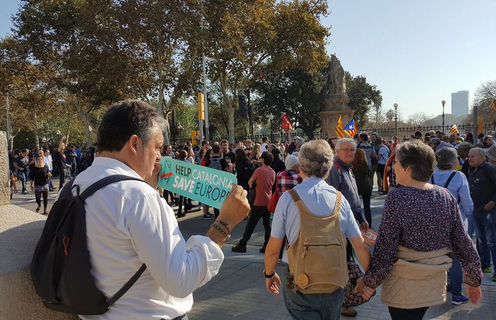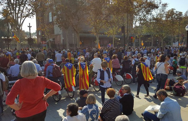Sjálfstæðisbarátta Katalóníu Tengdar fréttir Spánarþing samþykkir að afturkalla sjálfstjórn Katalóníu Meirihluti þingmanna öldungadeildar Spánaðarþings hefur samþykkt tillögu ríkisstjórnar landsins að afturkalla sjálfstjórn Katalóníuhéraðs. 27. október 2017 14:20 Sjálfstæðisyfirlýsing Katalóníu breytir engu fyrir ESB Forseti leiðtogaráðs ESB segir að sambandið muni áfram einungis skipta við spænsk stjórnvöld í Madríd. 27. október 2017 14:56 Katalónska þingið samþykkir að lýsa yfir sjálfstæði Í leynilegri kosningu á katalónska þinginu greiddu sjötíu þingmenn með tillögunni, tíu gegn og tveir skiluðu auðu. Sambandssinnar á katalónska þinginu sniðgengu atkvæðagreiðsluna. 27. október 2017 13:37 Mest lesið Veðurvaktin: Snjókoman rétt að byrja og víða erfið færð Veður Ungur Miðflokksmaður gengst við rasisma og segir af sér Innlent Snjókoman rétt að byrja Innlent Flugmaðurinn sem fórst millilenti oft í Reykjavík Innlent Bílar út af veginum á Reykjanesbraut Innlent Eldur í blokk við Ljósheima Innlent Ráðgjafinn ráðinn í tímabundið starf eftir dýra skreppitúra Innlent Skvísur geti virkað sem hálfgerðir þroskaþjófar Innlent Fjölmargir farþegar fastir í flugvélum á Keflavíkurflugvelli Innlent Játar að hafa myrt Shinzo Abe Erlent Fleiri fréttir Sakar Evrópu um stríðsæsingu Musk í samkeppni við Wikipedia Búast við hamförum vegna Melissu Van de Velde bannað að ferðast til Ástralíu til að keppa á heimsmeistaramótinu Segja Rússa elta almenna borgara með drónum Játar að hafa myrt Shinzo Abe Undirrituðu samkomulag um fágæta málma Hljóp út í örvæntingu „með lífið í poka“ Réttað yfir tíu sem segja frönsku forsetafrúna vera karlmann Réttað yfir konu sem sagðist vera Madeleine McCann Áfjáður í að bjóða sig fram aftur í trássi við stjórnarskrá Hafa fundið Cessna-vélina Elsti forseti heims endurkjörinn í skugga mótmæla Jamaíka býr sig undir öflugasta fellibyl sem þangað hefur ratað Friður forsenda þess að erlent lið verði sent til Gasa Milei vann stórsigur í Argentínu Matarbankar segjast ekki munu anna eftirspurninni Aftökur á meintum smyglurum „ekki morð“ heldur „vörn við eitri“ Leit að flugvélinni horfnu engan árangur borið Ráðist að fjölmiðlafólki með ofbeldi og fúkyrðum Hundruðum gert að rýma vegna grjóthruns í Ósló Newsom íhugar forsetaframboð Allt undir hjá forsetanum hárprúða Óttast blóðbað við fall síðasta vígis stjórnarhersins í Darfur Bankaerfingi greiðir laun hermanna meðan ríkisstofnanir eru lokaðar Gómuðu aftur manninn sem þeir slepptu fyrir mistök Tveir handteknir vegna Louvre ránsins Leita Cessnu sem hvarf nærri Nuuk Segja „fljúgandi Chernobyl“ hafa flogið í fimmtán klukkustundir Hækkar tolla á kanadískar vörur vegna sjónvarpsauglýsingar Sjá meira