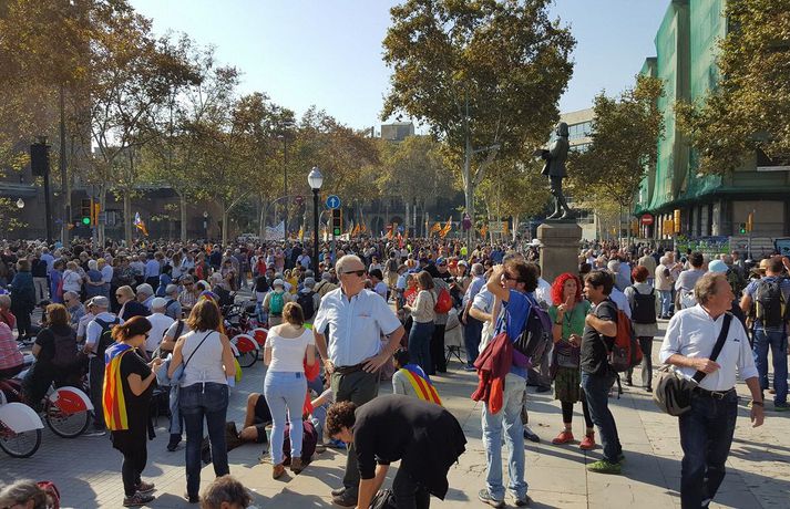 Saksóknarar á Spáni ætla sér að ákæra leiðtoga Katalóníu fyrir uppreisn. Carles Puigdemont, forseti héraðsstjórnar Katalóníu, er einn þeirra en verið er að skoða að ákæra fleiri aðskilnaðarsinna. Þing Katalóníu samþykkti í dag að lýsa yfir sjálfstæði í leynilegri kosningu. Á sama tíma var öldungadeild þings Spánar að ákveða að fella niður sjálfstjórn Katalóníu og taka yfir stjórn héraðsins. Líklegt þykir að stjórnlagadómstóll Spánar muni dæma atkvæðagreiðslu katalónska þingsins ólöglega.Yfirlit yfir nokkur héraði á Spáni sem hafa leitað eftir sjálfstæði.Vísir/GraphicNewsMikil spenna hefur verið í samskiptum héraðsstjórnar Katalóníu og Spánarstjórnar í Madrid eftir þjóðaratkvæðagreiðsluna í upphafi mánaðar þar sem mikill meirihluti þeirra sem þátt tóku greiddu atkvæði með því að lýsa yfir sjálfstæði. Kosningaþátttakan var 43 prósent. Stjórnlagadómstóll Spánar hafi dæmt atkvæðagreiðsluna ógilda. Bretland, Bandaríkin, Þýskaland og Frakkland hafa lýst yfir stuðningi við yfirvöld í Madrid og Atlantshafsbandalagið og Evrópusambandið segja að um innanríkismál Spánar sé að ræða. Yfirvöld í Madrid ætla sér meðal annars að leysa upp þing Katalóníu og taka yfir stjórn lögreglu héraðsins.Art.2 CE: La Constitución se fundamenta en la indisoluble unidad de la Nación española, patria común e indivisible de todos los españoles pic.twitter.com/VKiX0u1mVl — Ministerio Interior (@interiorgob) October 27, 2017Other European territories have declared independence before, but Catalonia is the first since the EU was created https://t.co/pNwd5TjgW0pic.twitter.com/FADl6nVEuC — AFP news agency (@AFP) October 27, 2017 Hér má sjá myndir sem starfsmaður 365 tók í Barcelona í dag. Hægt er að fletta í gegnum myndirnar.