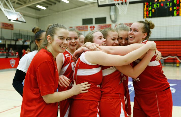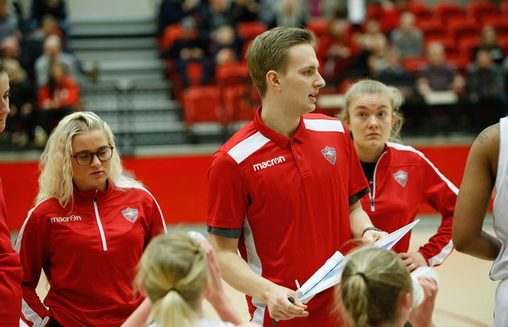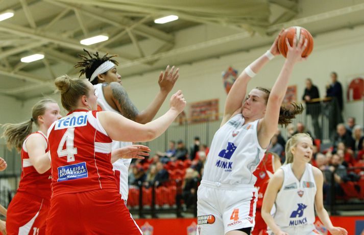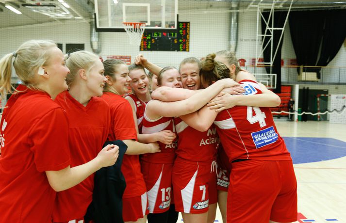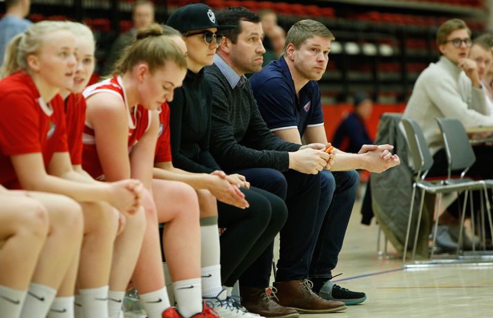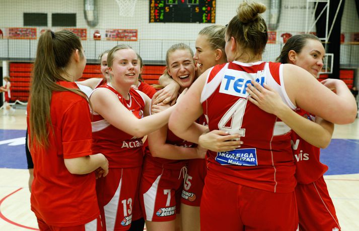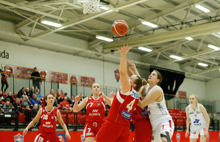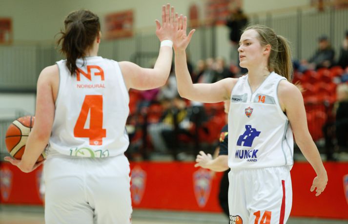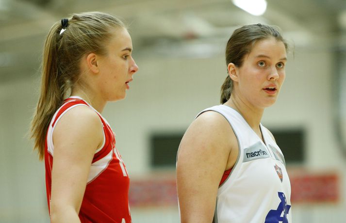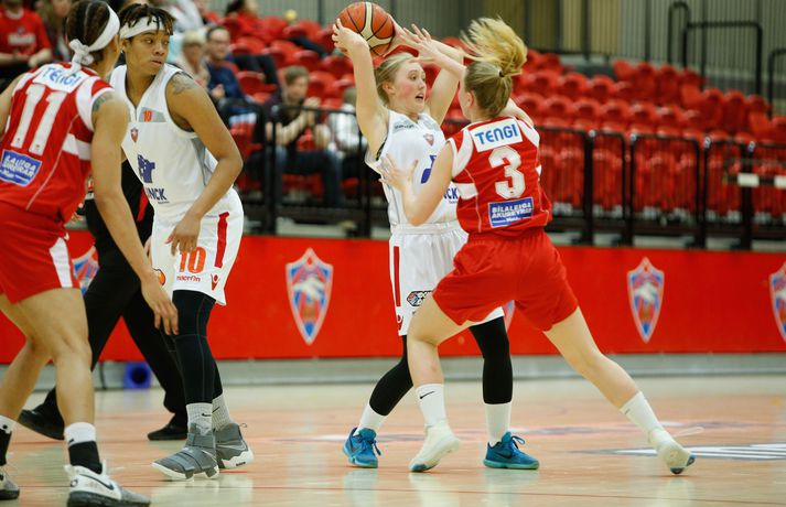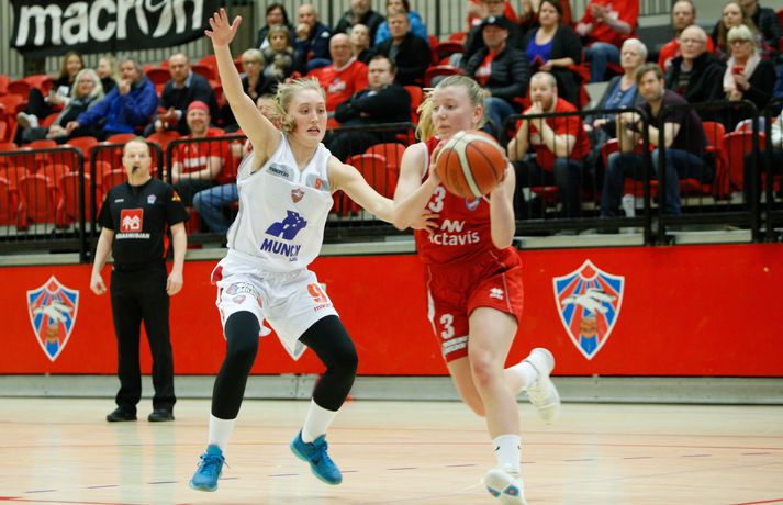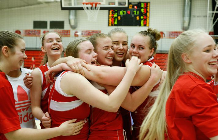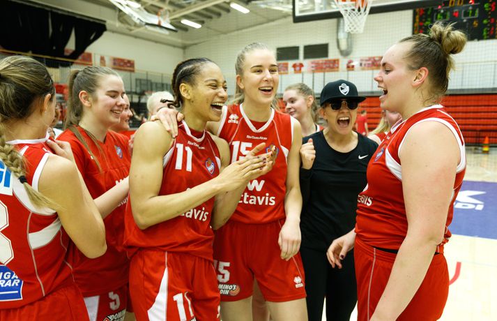 Umfjöllun, viðtöl og myndir: Valur - Haukar 67-71 | Haukar eru deildarmeistarar Ástrós Ýr Eggertsdóttir skrifar 13. mars 2018 22:15 Haukar fagna í leikslok vísir/Andri Marinó Haukar eru deildarmeistarar í körfubolta kvenna eftir sigur á Val í Domino’s deildinni í Valsheimilinu í kvöld. Enn eru þrjár umferðir eftir af deildarkeppninni en Haukar eru með sex stiga forskot á Val og hafa betur í innbyrðis viðureignum. Hafnfirðingarnir hafa ekki tapað í síðustu 14 deildarleikjum sínum og hafa því unnið öll liðin í deildinni tvisvar í röð og eru eins og staðan er líklegasta liðið til þess að hampa stóra titlinum í vor. Haukar byrjuðu leikinn í kvöld á að skora fyrstu tvær körfurnar og voru í raun alltaf með forystuna. Í fyrri hálfleik, og þá fyrsta leikhluta sérstaklega, voru Haukakonur að spila virkilega vel, boltinn flaut vel á milli leikmanna í sóknarleiknum og þær opnuðu Valsvörnina auðveldlega aftur og aftur. Annar leikhluti var mjög dapur framan af hjá báðum liðum og komu fjórar sóknir í röð þar sem liðin töpuðu boltanum á kjánalegum mistökum. Það kviknaði hins vegar aðeins í liðunum síðust tvær mínúturnar í fyrri hálfleik og stigaskorið komst upp fyrir tíu stigin hjá liðunum í öðrum leikhluta. Valskonur spiluðu frábæra vörn á lokasprettinum og lokuðu vel á Hauka. Munurinn var aðeins tvö stig þegar liðin gengu til búningsherbergja, 37-39. Þriðji leikhluti var álíkur öðrum. Það var mikil barátta og varnarvinna beggja liða nokkuð góð. Þá hjálpaði ekki til að bæði lið voru að hitta mjög illa í kvöld. Valur var ekki kominn yfir 50 stigin fyrir loka fjórðunginn sem setur sína mynd á hvernig leikurinn var. Í loka fjórðungnum var skorað mun meira, eins og við var að búast þegar svo mikið var undir. Loka mínúturnar voru æsi spennandi og voru Valskonur aðeins hársbreidd frá því að jafna leikinn þegar örfáar sekúndur voru eftir, en þriggja stiga skot Aalyah White fór ekki ofan í og Haukar fóru með 67-71 sigur.Afhverju unnu Haukar? Gestirnir voru með forystuna allan leikinn og voru sterkari aðilinn. Þær voru að spila virkilega flottan sóknarbolta til að byrja með og í gegnum allan leikinn hittu þær betur heldur en Valur, að undanskildum stuttum kafla í seinni hálfleik þegar ekkert gekk hjá þeim. Varnarleikur Hauka var oft á tíðum mjög góður, sama má reyndar segja um Valsliðið megnið af leiknum.Hverjar stóðu upp úr? Þóra Kristín Jónsdóttir átti virkilega stór skot á réttum augnablikum. Hún setti tvo þrista niður með stuttu millibili þegar jafnt var með liðunum og kom mjög sterk inn undir lokin. Þá var Helena Sverrisdóttir áberandi í Haukaliðinu að vanda. Hjá Val átti Bergþóra Holton Tómasdóttir virkilega flottan leik. Hún réð vel við Helenu í vörninni og átti fínar innkomur í sóknarleikinn á meðan aðrir leikmenn Vals áttu slæman dag.Hvað gekk illa? Bæði lið áttu í stökustu vandræðum með að koma boltanum ofan í körfuna á löngum köflum í leiknum, en sérstaklega þó heimakonur. Þær settu niður einn þrist í leiknum, úr 18 tilraunum. Þá voru Valskonur oft á tíðum ragar í sókninni og þorðu ekki að skjóta, sem þó var kannski skiljanlegt miðað við lélega nýtingu í leiknum, og keyrðu ekki nógu ákaft á körfuna. Þá var mikið um klaufalega tapaða bolta, sendingar sem voru ónákvæmar, beint út af eða mjög auðlesnar.Hvað gerist næst? 26. umferðin er leikin á laugardaginn. Þá fara Valskonur til Njarðvíkur en Haukar mæta Blikum að Ásvöllum og fá að öllum líkindum bikarmeistaratitilinn afhentan að leik loknum.Andri Marinó Karlsson, ljósmyndari Vísis, var í Valshöllinni í kvöld og tók myndirnar sem fylgja fréttinni.Vísir/andri marínóIngvar: Stór bæting frá síðustu leikjum „Mér líður mjög vel. Frábært að ná að klára þetta núna,“ sagði kátur Ingvar Þór Guðjónsson, þjálfari Hauka, eftir leikinn. Fyrir leikinn þá talaði Ingvar um að honum fyndist liðið hafa verið slakt í síðustu leikjum en hann var ánægður með sínar konur í dag. „Það var ekki sami doði yfir okkur eins og hefur verið, enda hefði það verið frekar dapurt í svona stórum leik að mæta ekki tilbúnar. Þetta var stór bæting frá því sem að hefur verið í síðustu leikjum.“ Leikurinn var ekki sá besti fyrir áhorfandann, mikil barátta í leiknum og lítið um dýrðir. „Mér fannst þetta lengi vel í fyrri hálfleik betra. Í seinni hálfleik komu taugarnar kannski inn í þegar það varð ljóst hvað var undir. Mikil barátta og góð vörn en ekki bratt á sóknarleiknum hjá báðum liðum.“ „Við erum full sjálfstraust, annars væri okkur ekki búið að ganga svona vel, en nú þarf bara að byggja ofan á þetta og nýta okkur til góða,“ sagði Ingvar Þór Guðjónsson.Vísir/andri marínóDarri: Óeðlilegt að vera með 5 prósent skotnýtingu „Þetta var leikur hinna sterku varna,“ sagði Darri Freyr Atlason, þjálfari Vals eftir leikinn. „Skotnýtingin var ekkert til að hrópa húrra fyrir, fyrir utan í fyrsta leikhlutanum. Þetta var svona „grind it out,“ leikur, smá úrslitakeppnislykt af þessu sem er bara skemmtilegt.“ „Við hefðum getað búið okkur til betri tækifæri til þess að skora. Mér finnst óeðlilegt að við skjótum á 5 prósenti fyrir utan þriggja stiga línuna, og kannski má gera ráð fyrir því að það skáni, en vörnin var frábær.“ Verður skotæfing hjá Valsliðinu á morgun? „Það verður hugræn atferlismeðferð.“ Fyrir leikinn virtist Darri ekki leggja of mikla áherslu á þennan leik sem einhvern úrslitaleik í rimmunni um deildarmeistaratitilinn, hann var nokkuð ánægður með að sæti í úrslitakeppninni sjálfri væri tryggt. „Við sýndum nokkrar ansi bjar